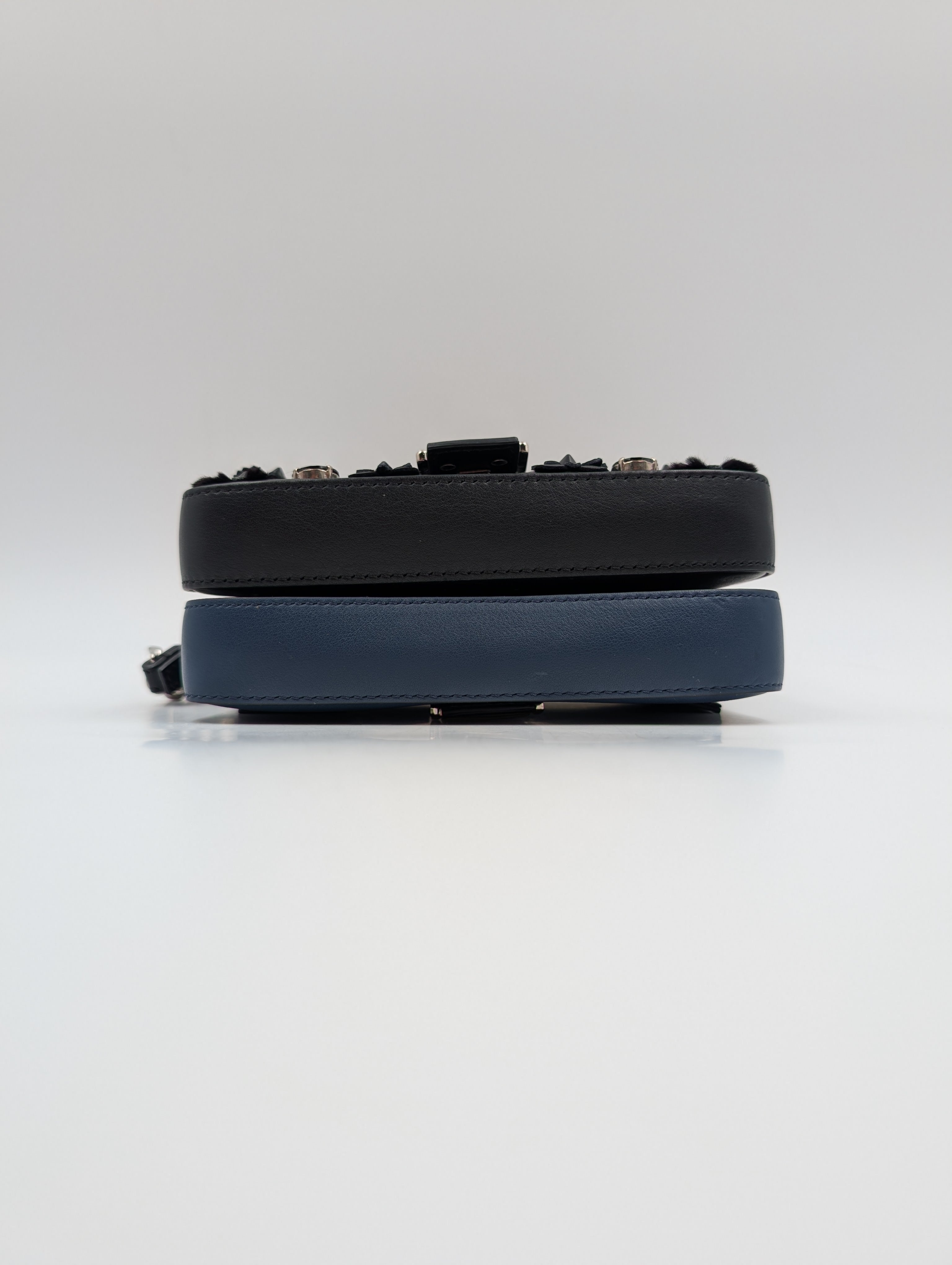 Fendi Black And Blue Baguette Double Micro Crossbody Bag