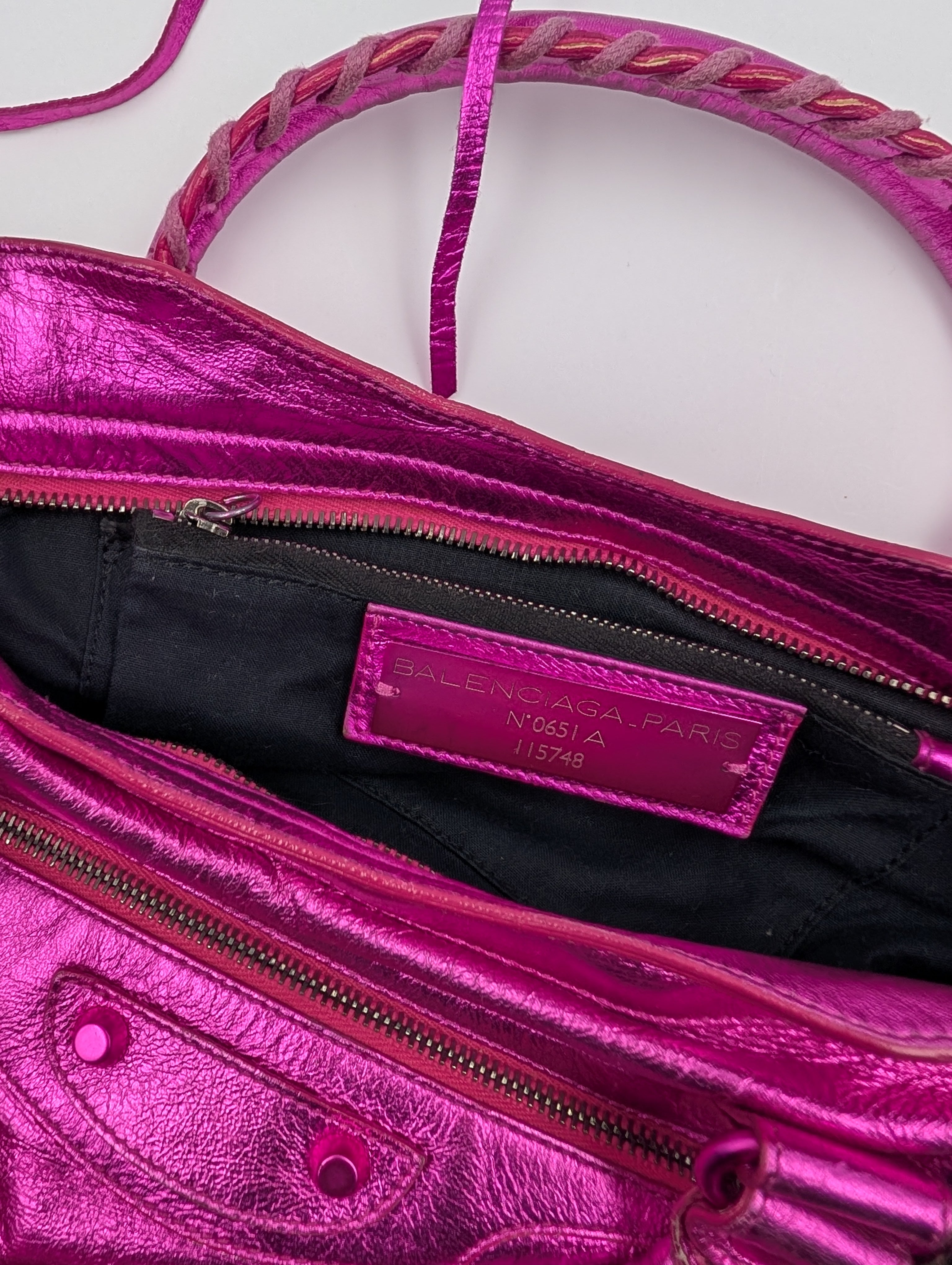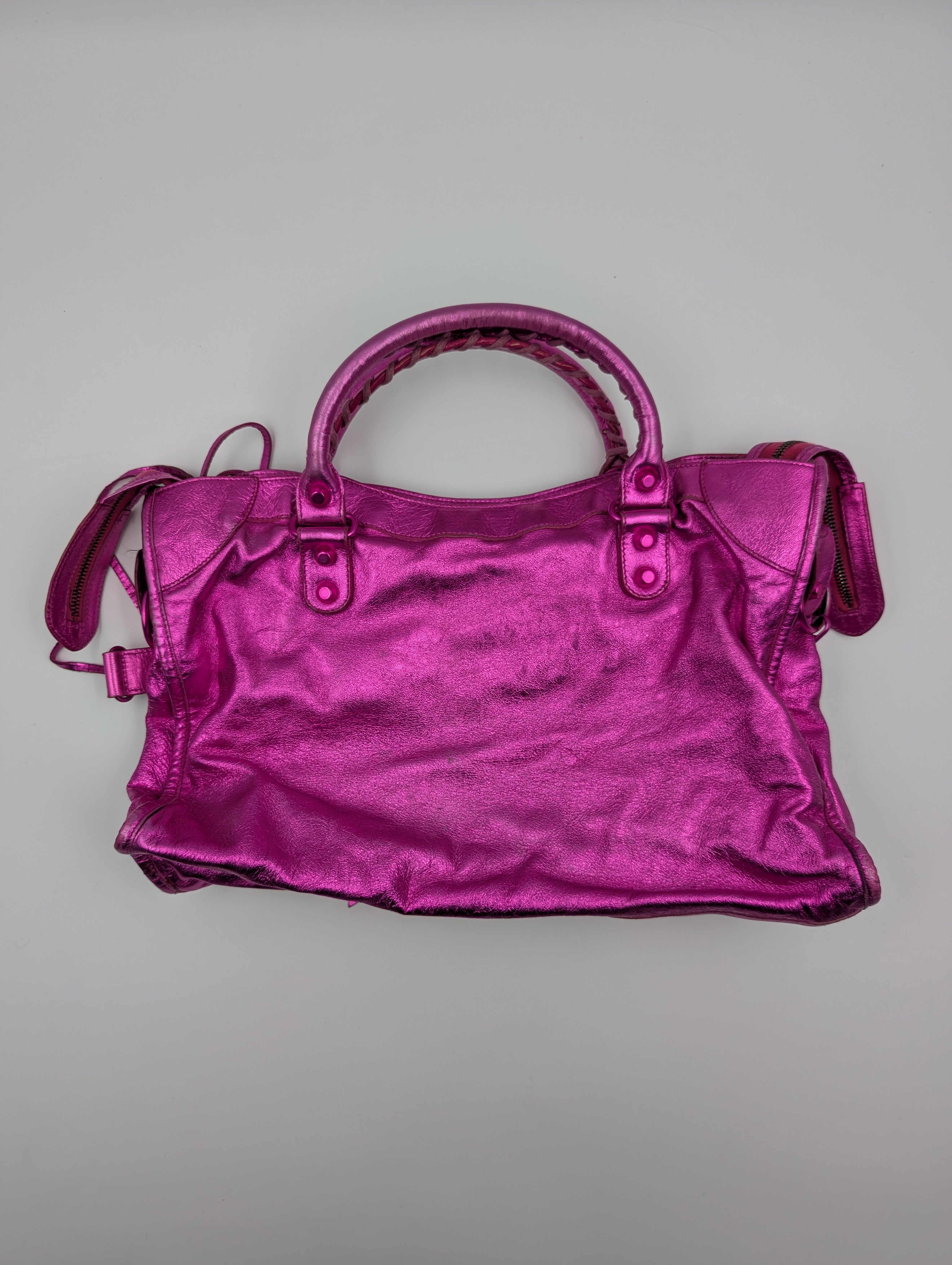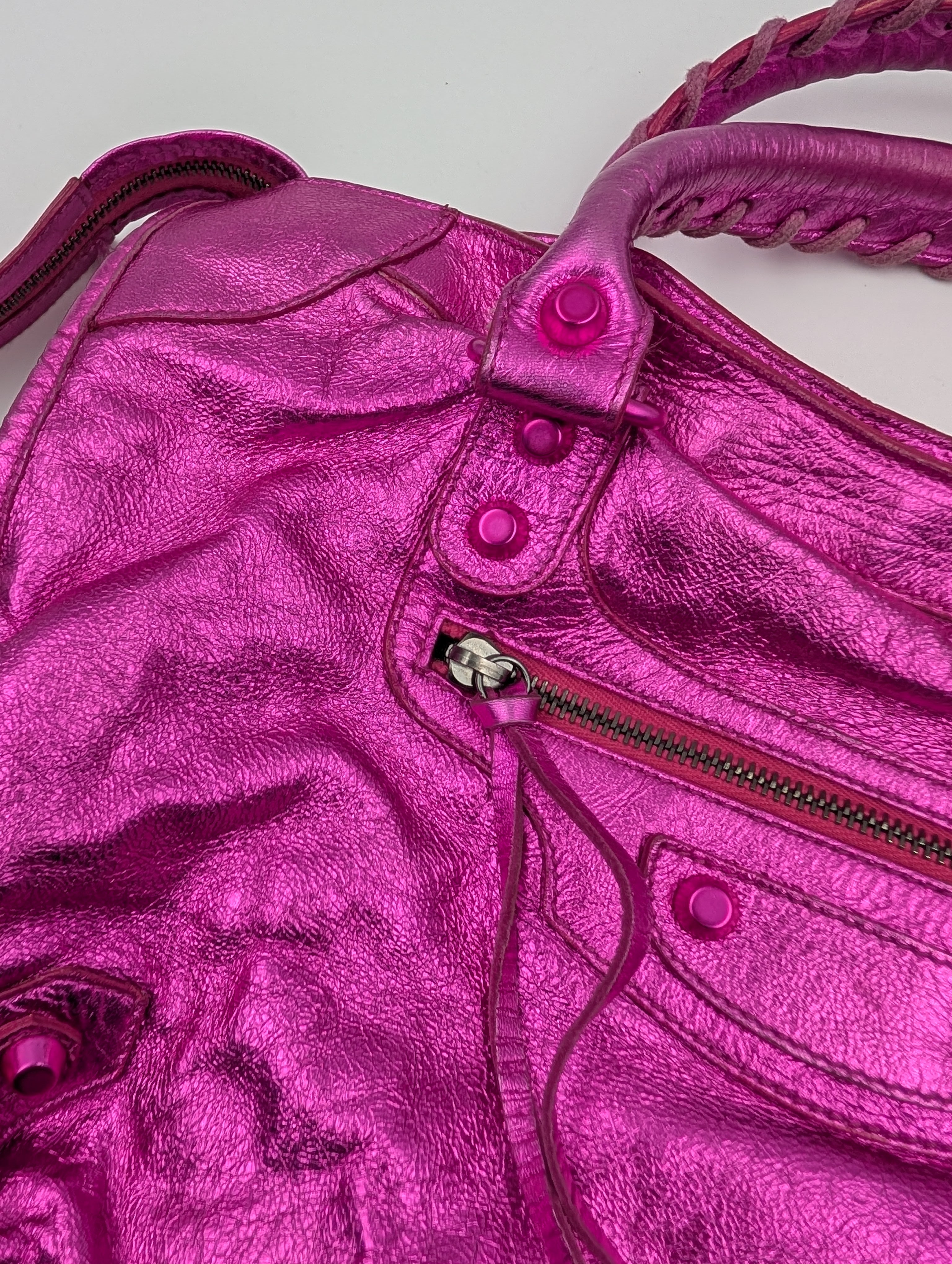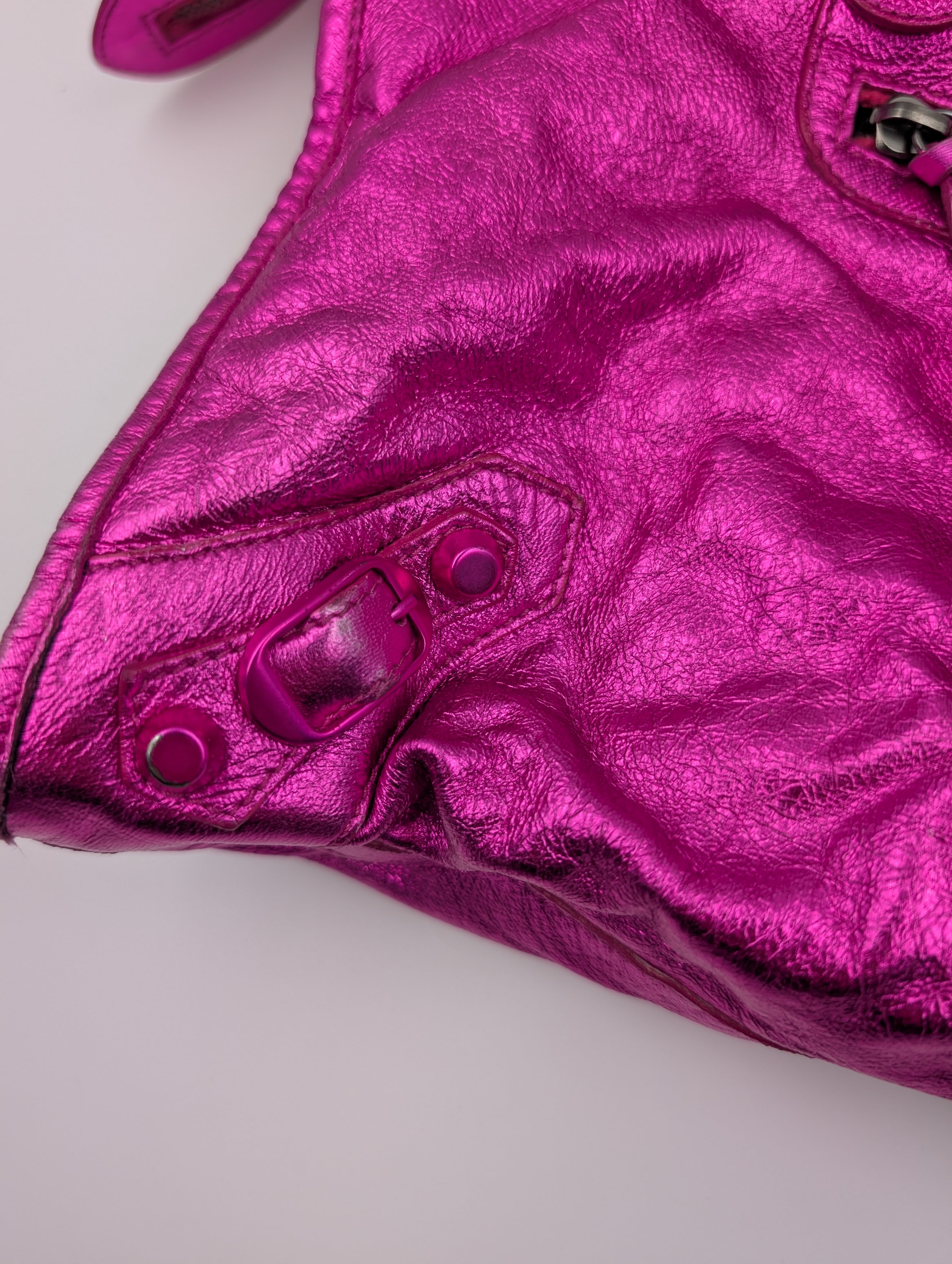 Balenciaga Magenta Metallic Leather Motorcycle First Bag