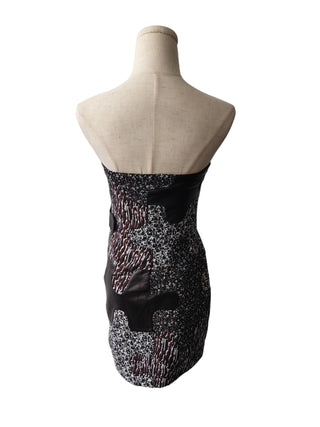 Brown And Grey Tone Patterned Tube Dress With Leather Patching