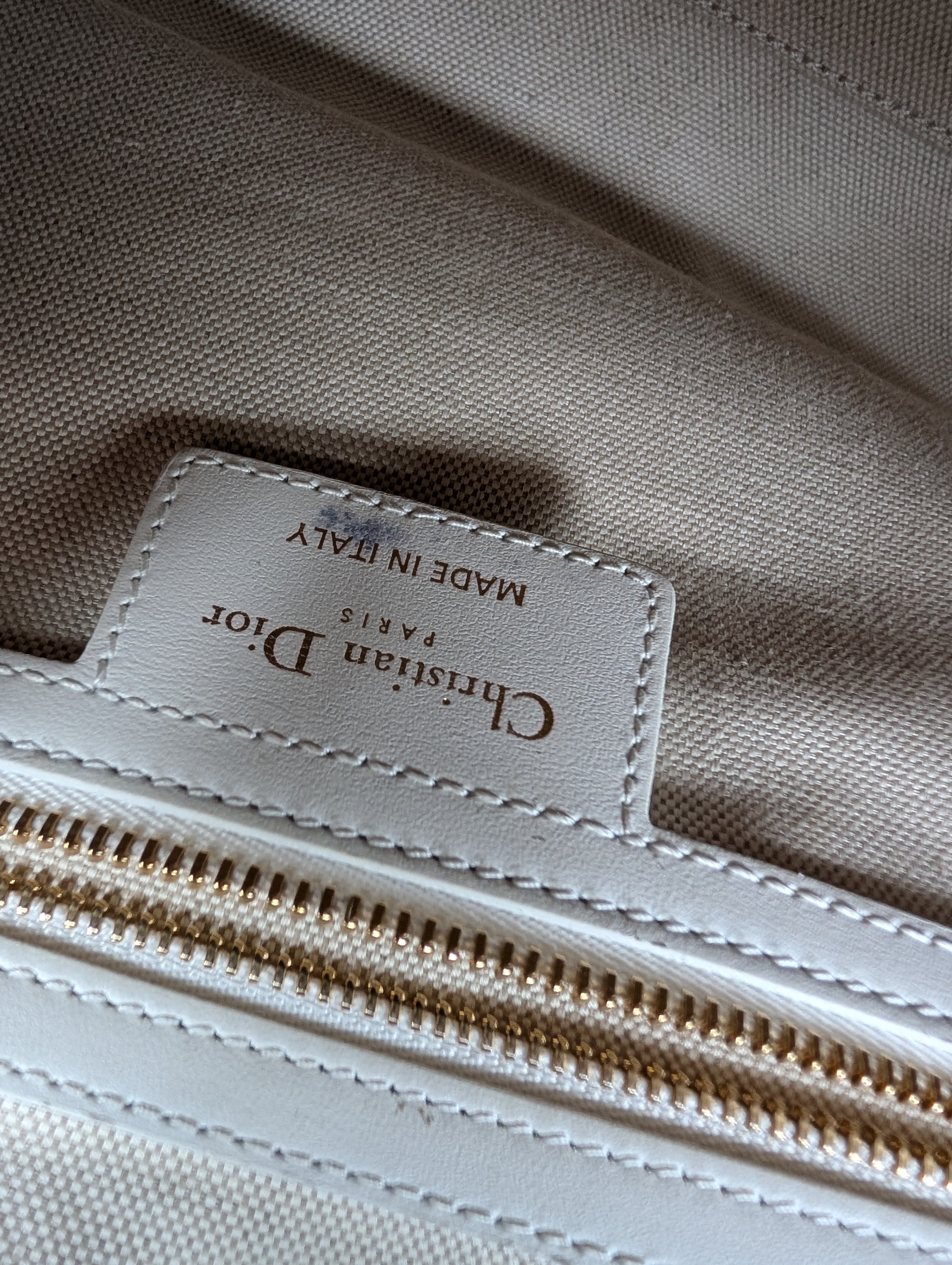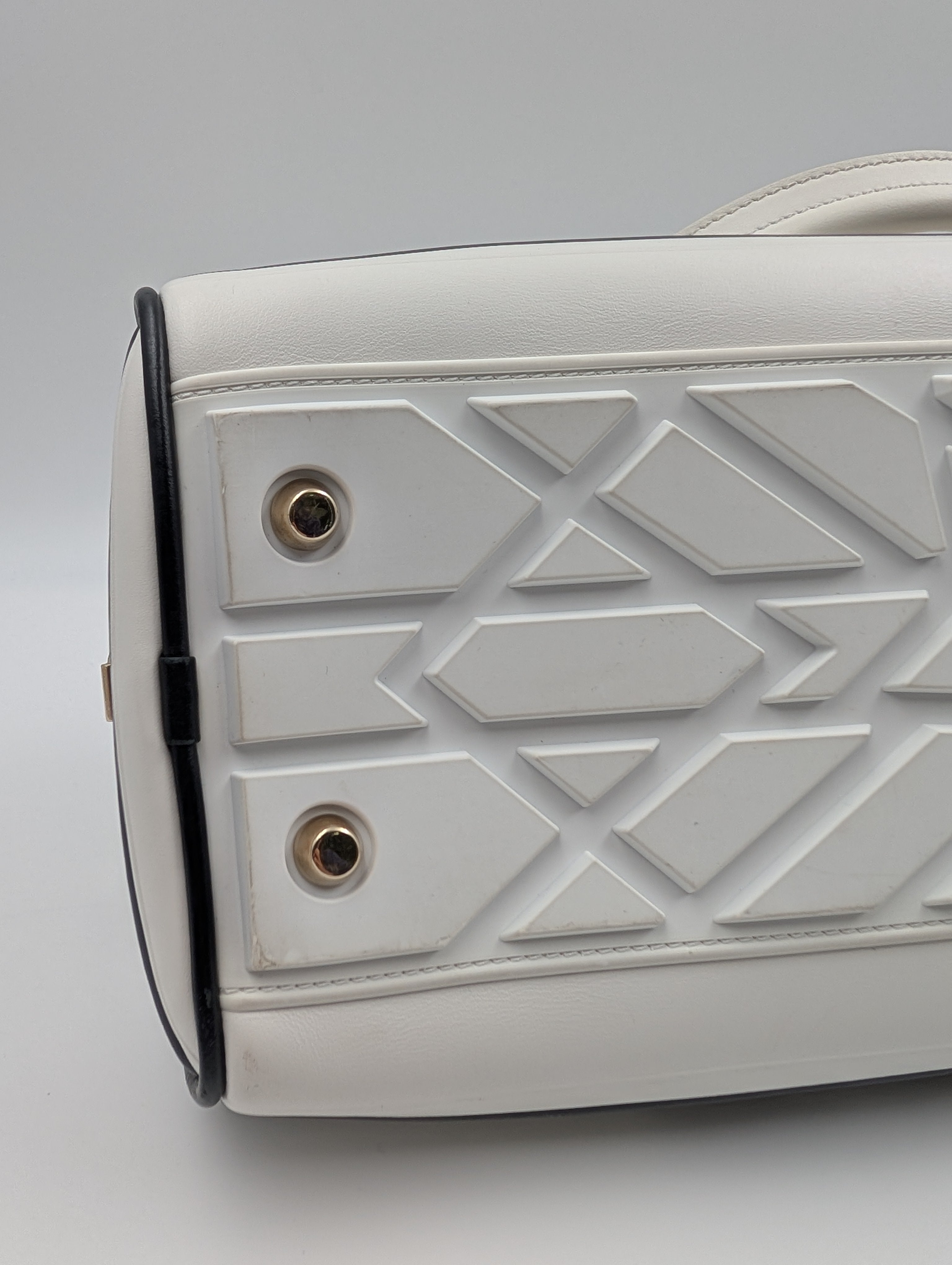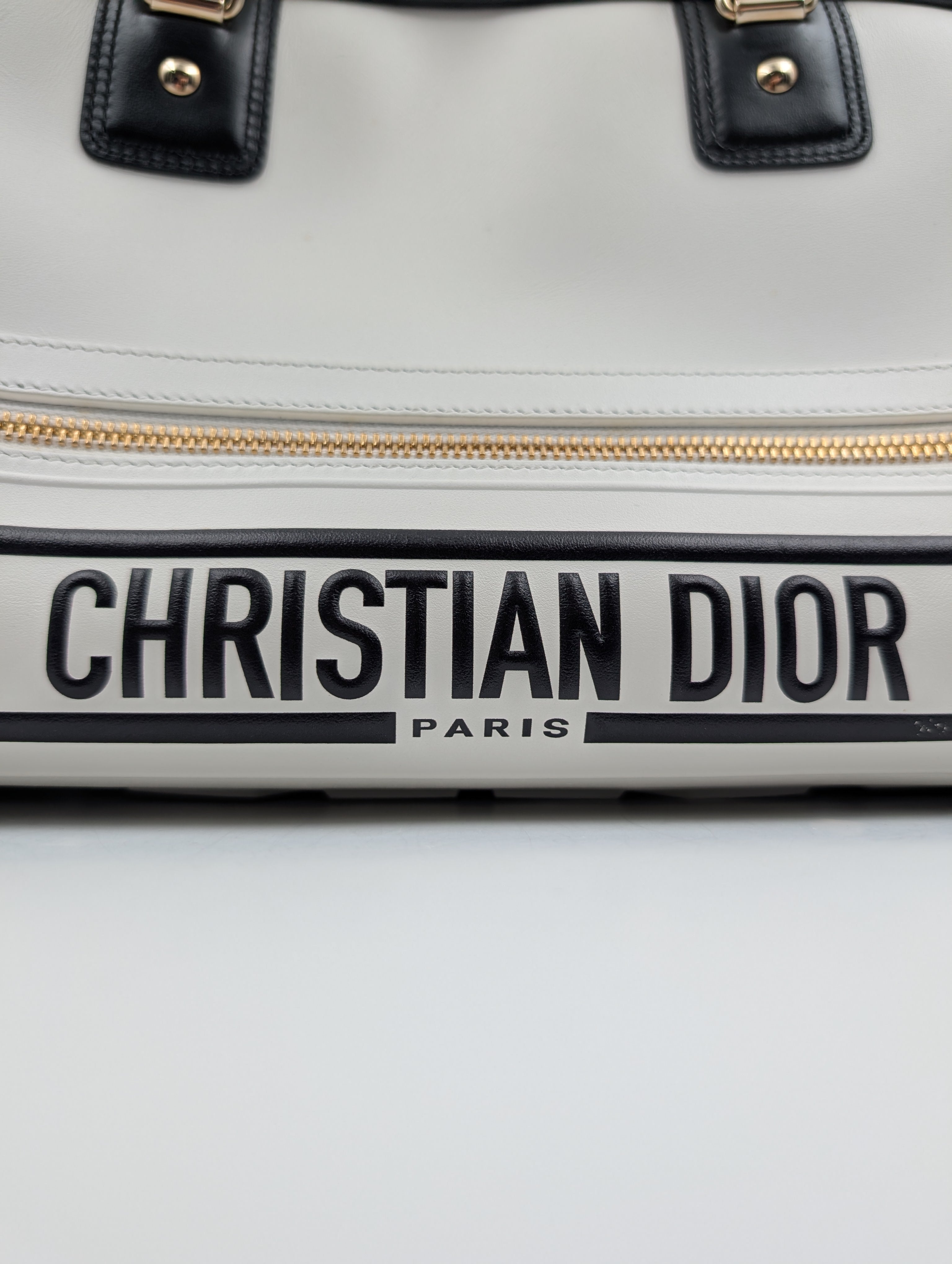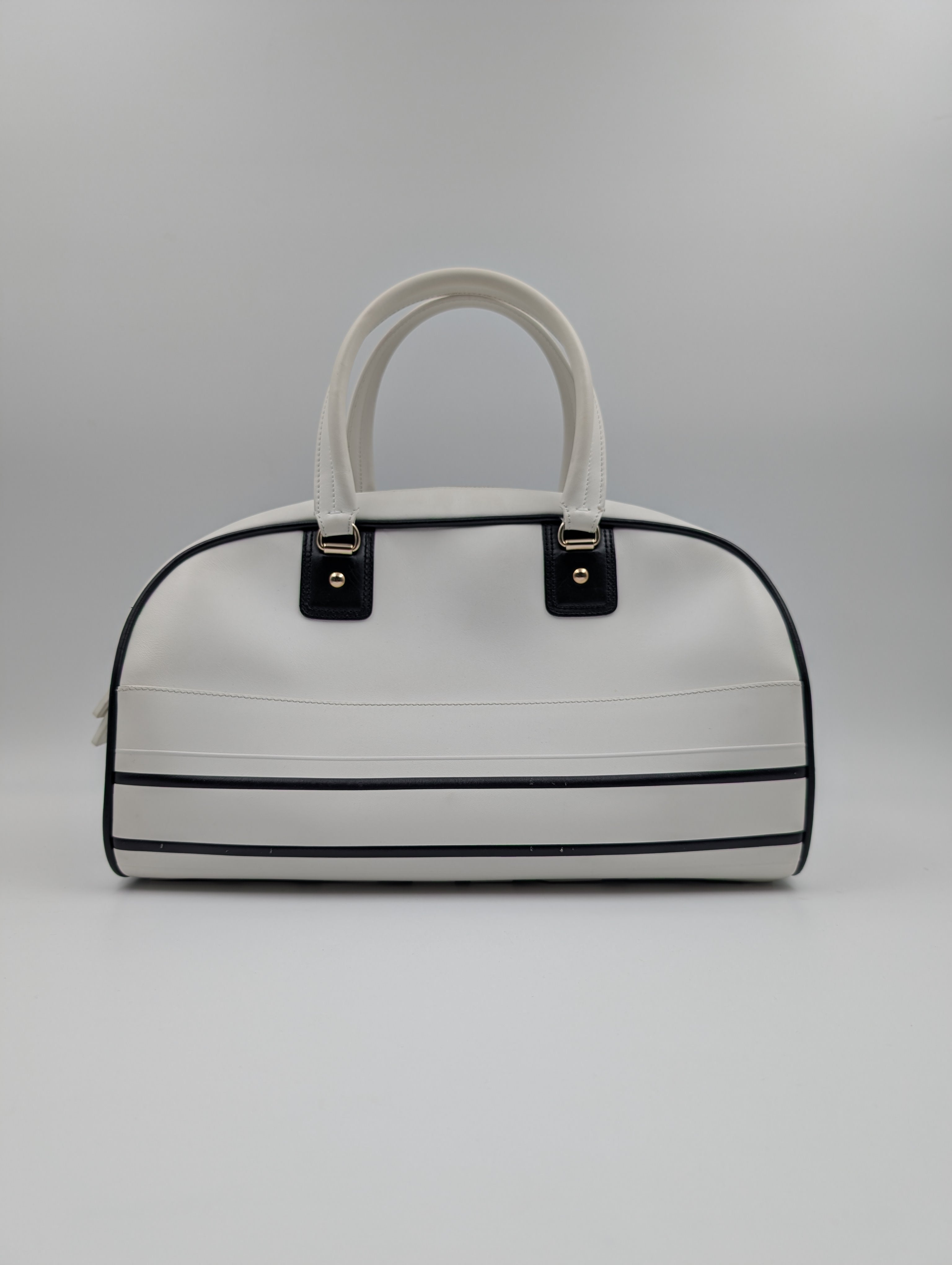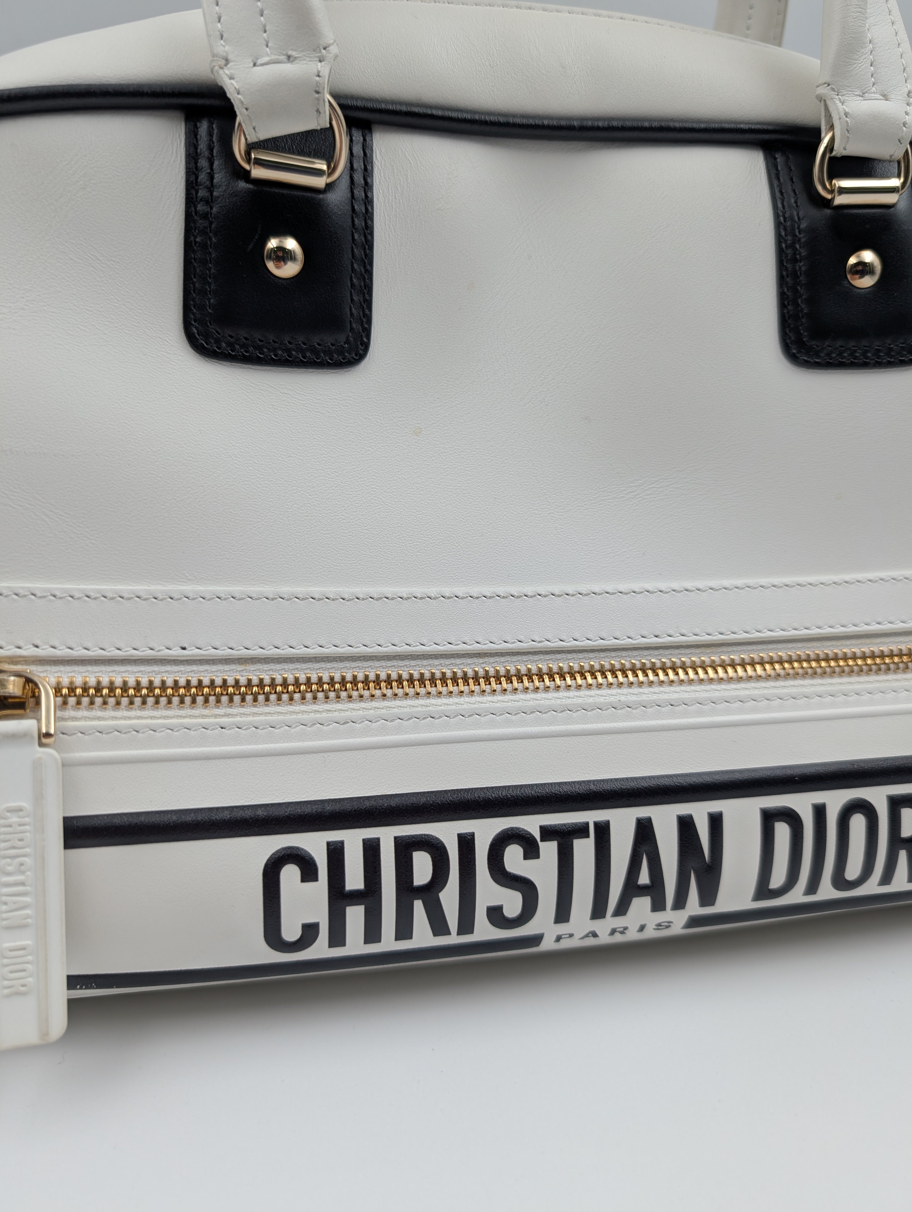 Christian Dior white shoulder bowling bag — in good pre-owned condition with honest character.
