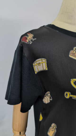 Black Silk And Cotton Dress With Iconic Neck Chain And Logo Graphics