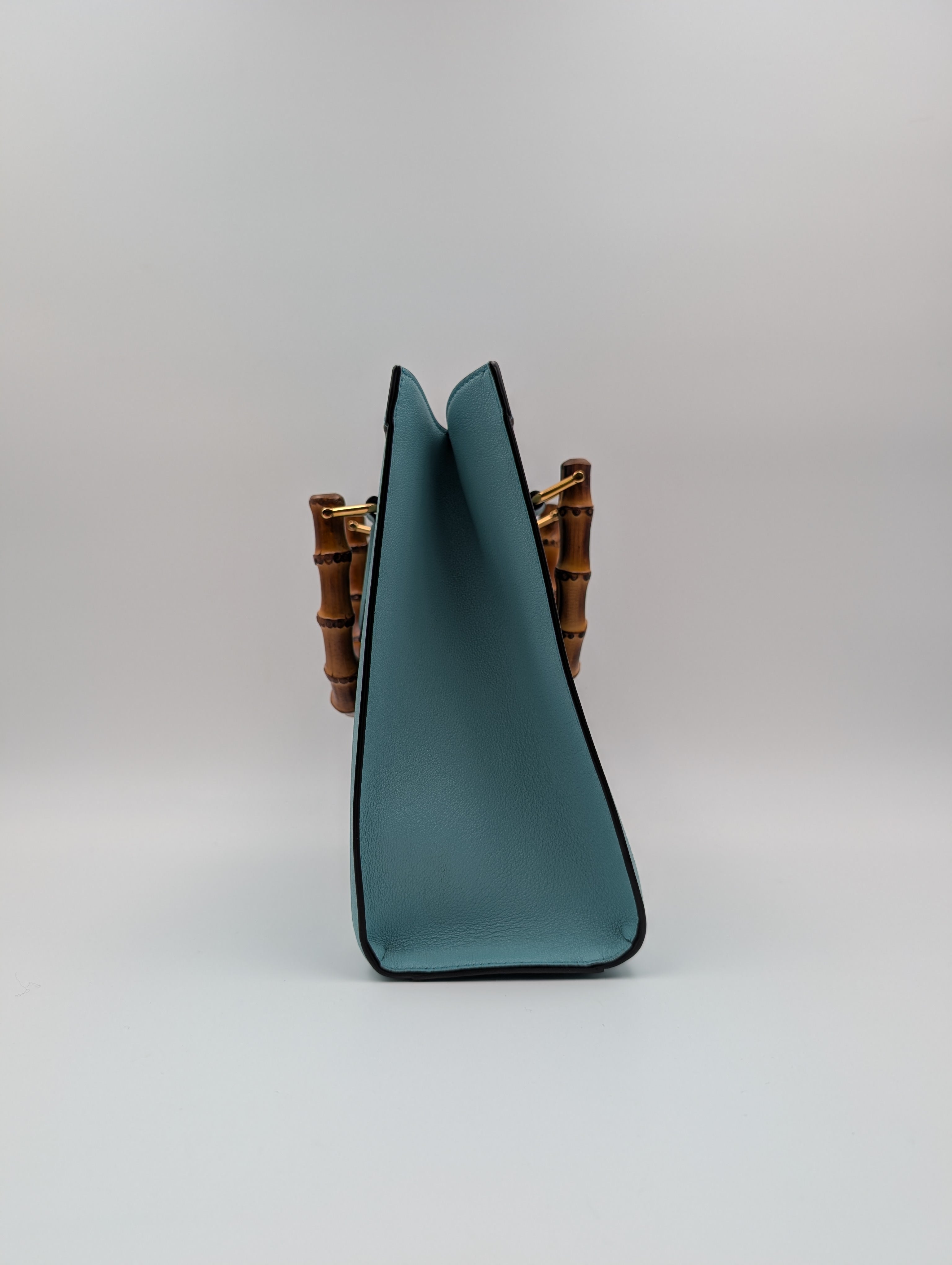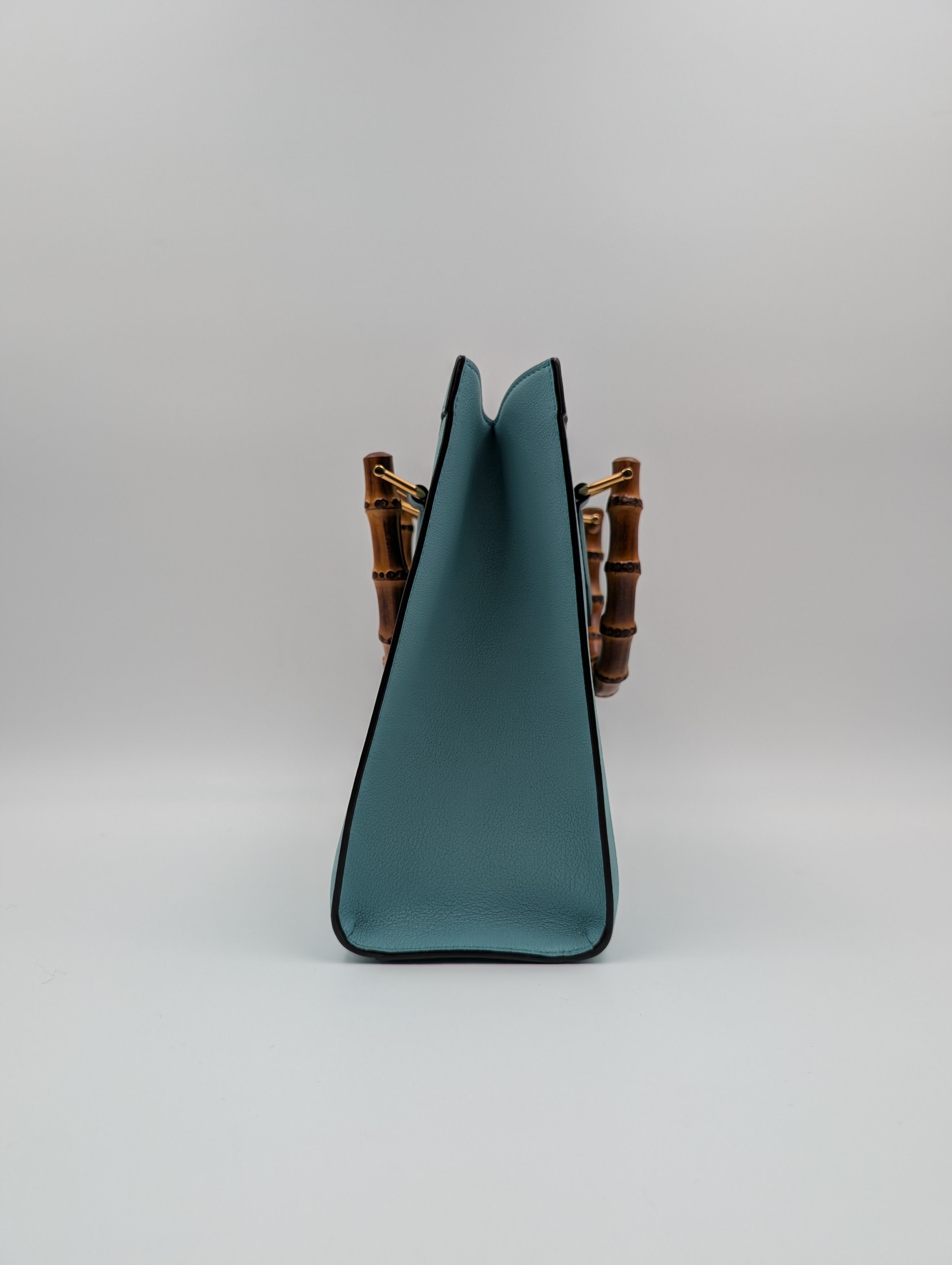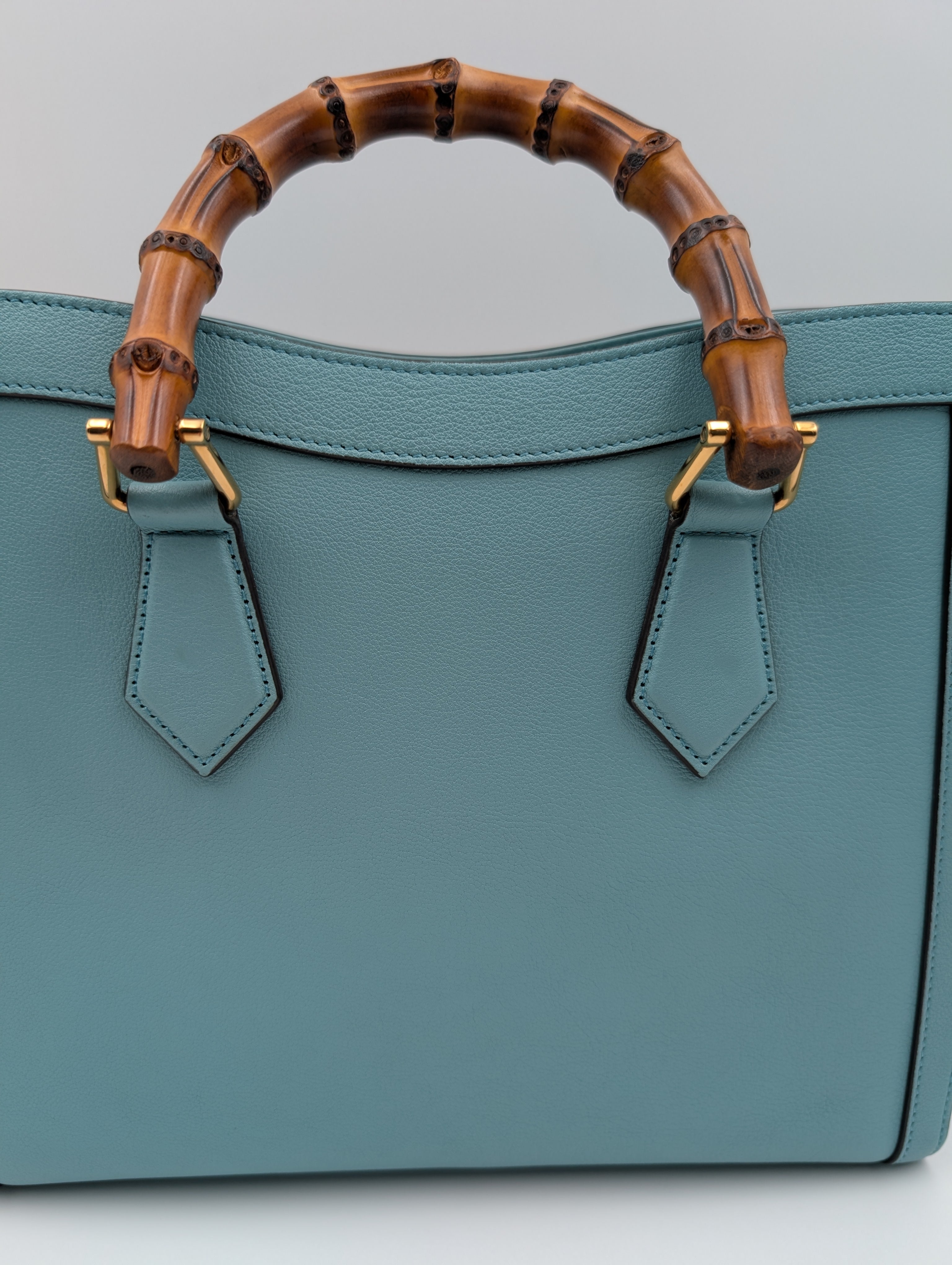 Gucci Teal Diana Tote Bag With Bamboo Handle