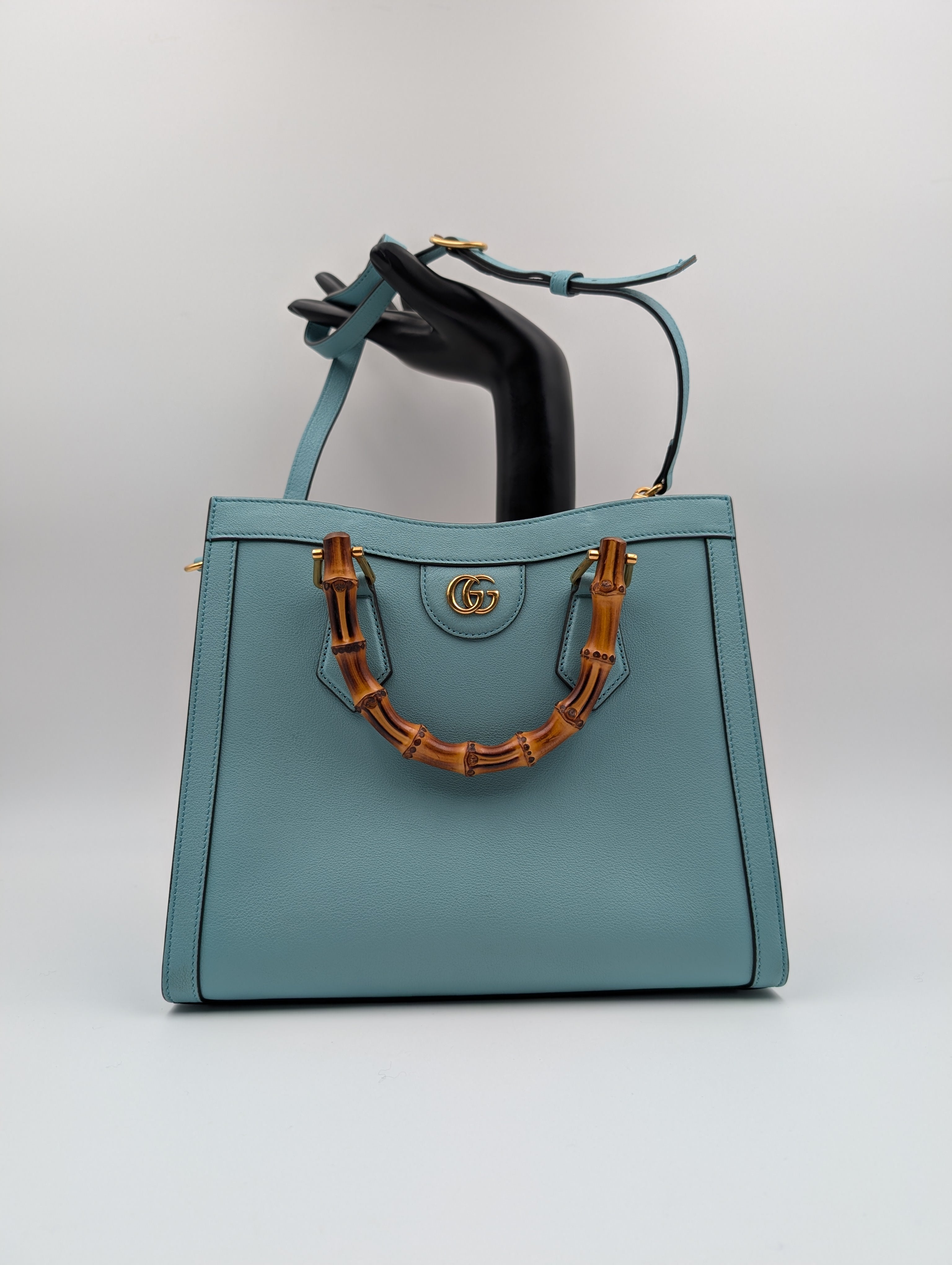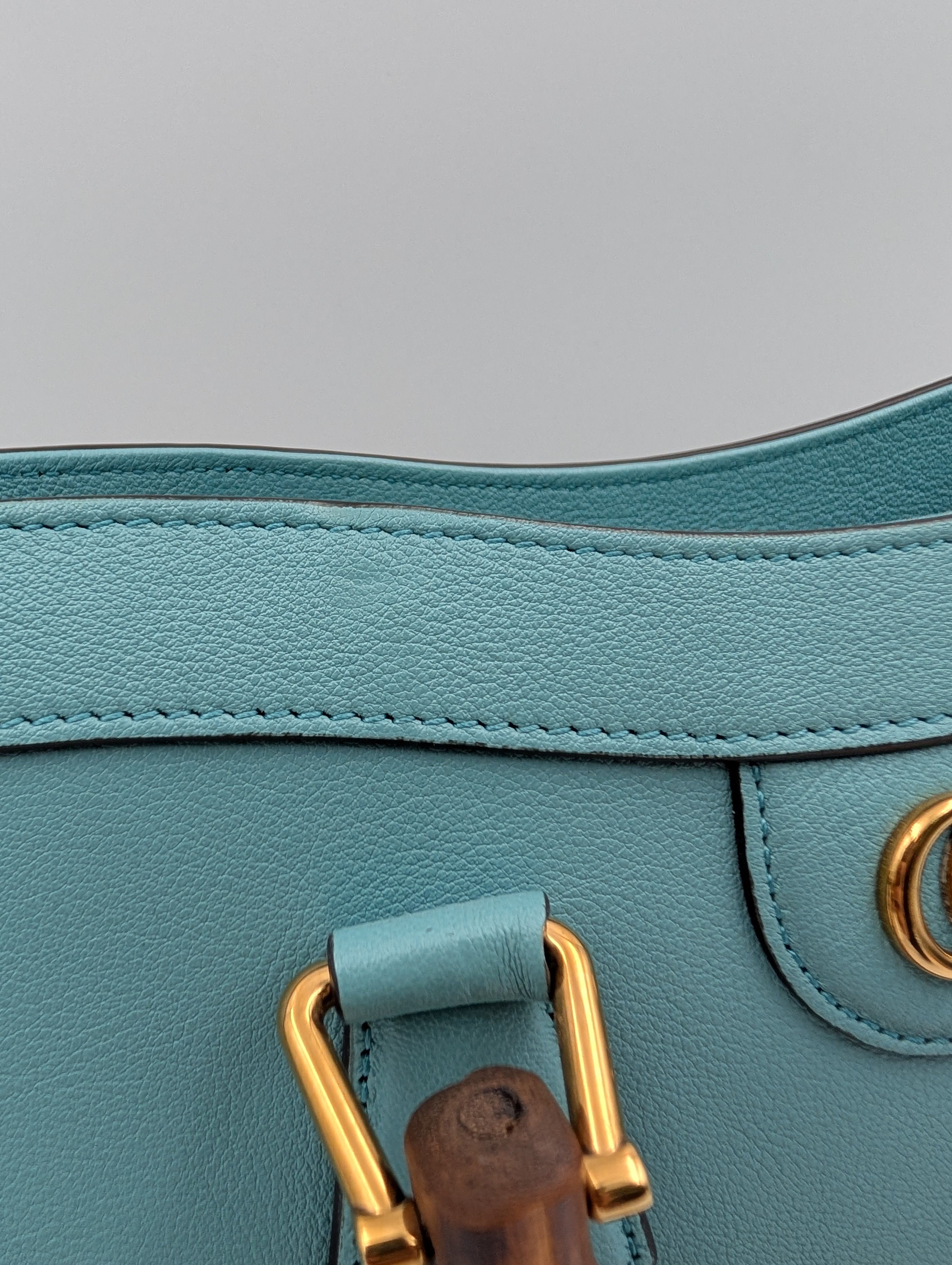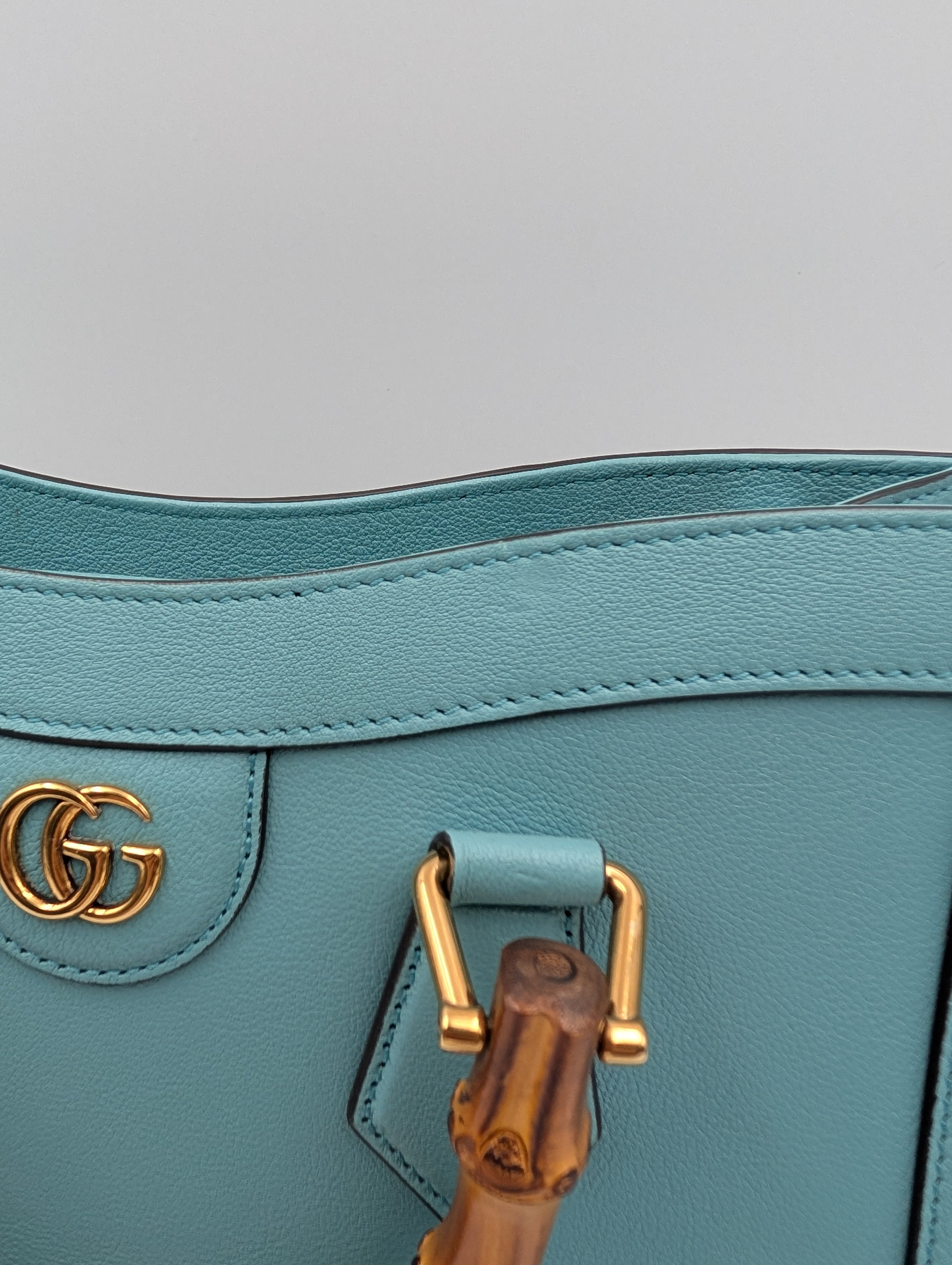 Gucci Teal Diana Tote Bag With Bamboo Handle