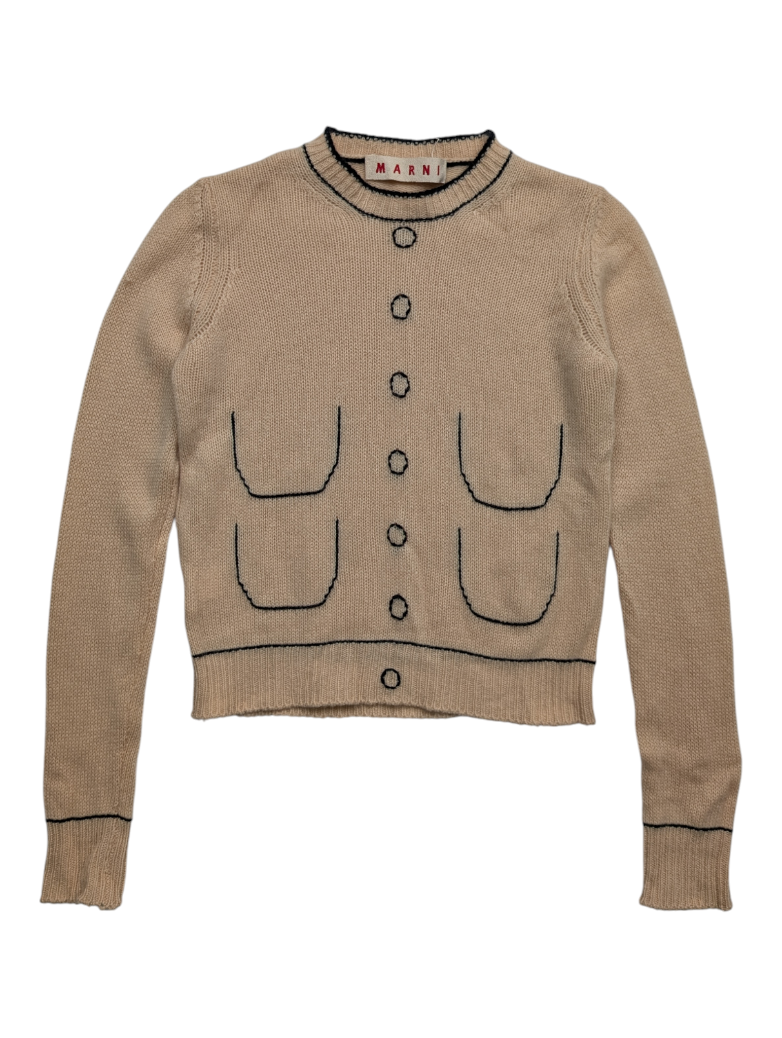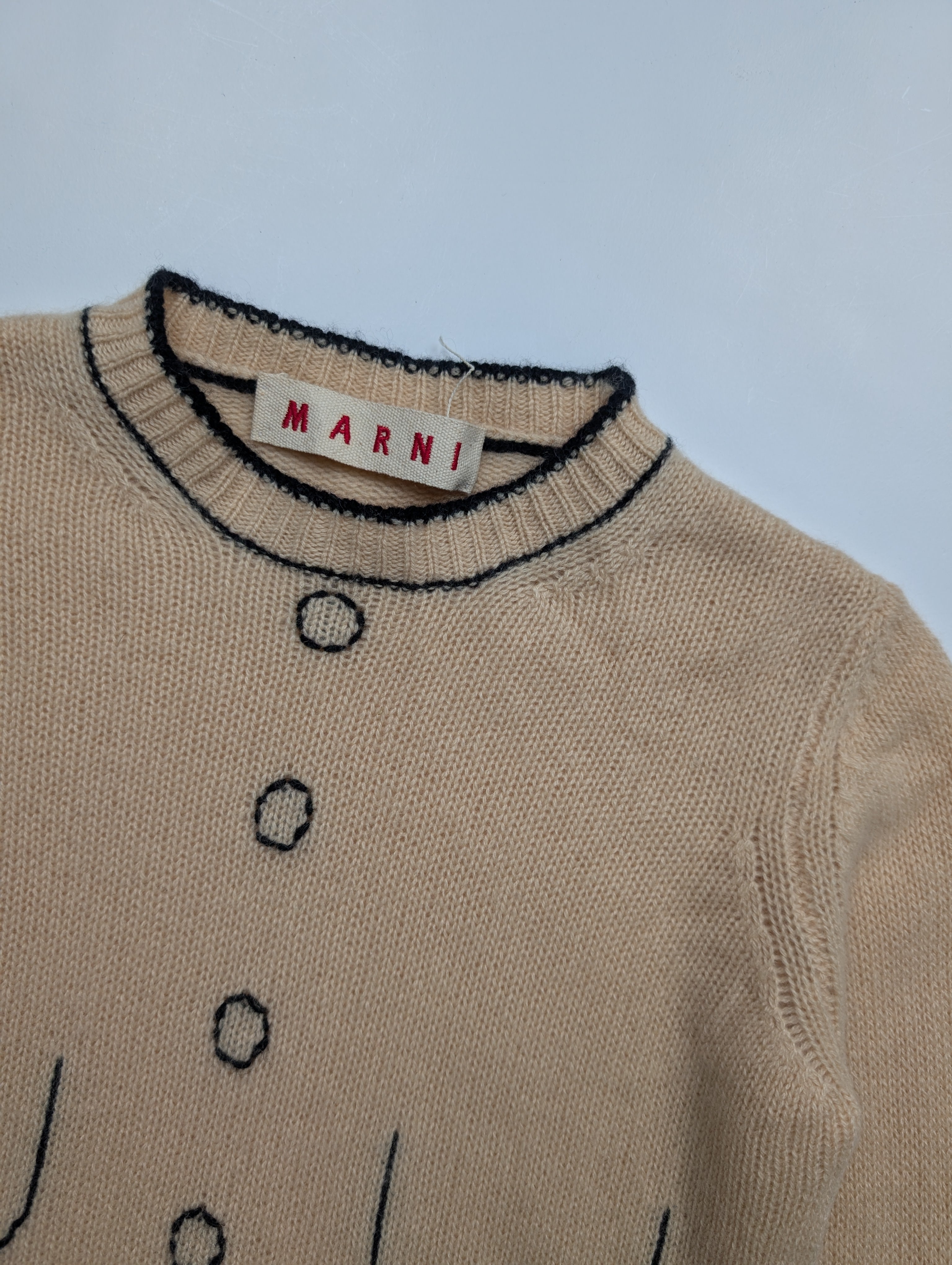 Marni Beige Cashmere Pullover With Fake Button Print