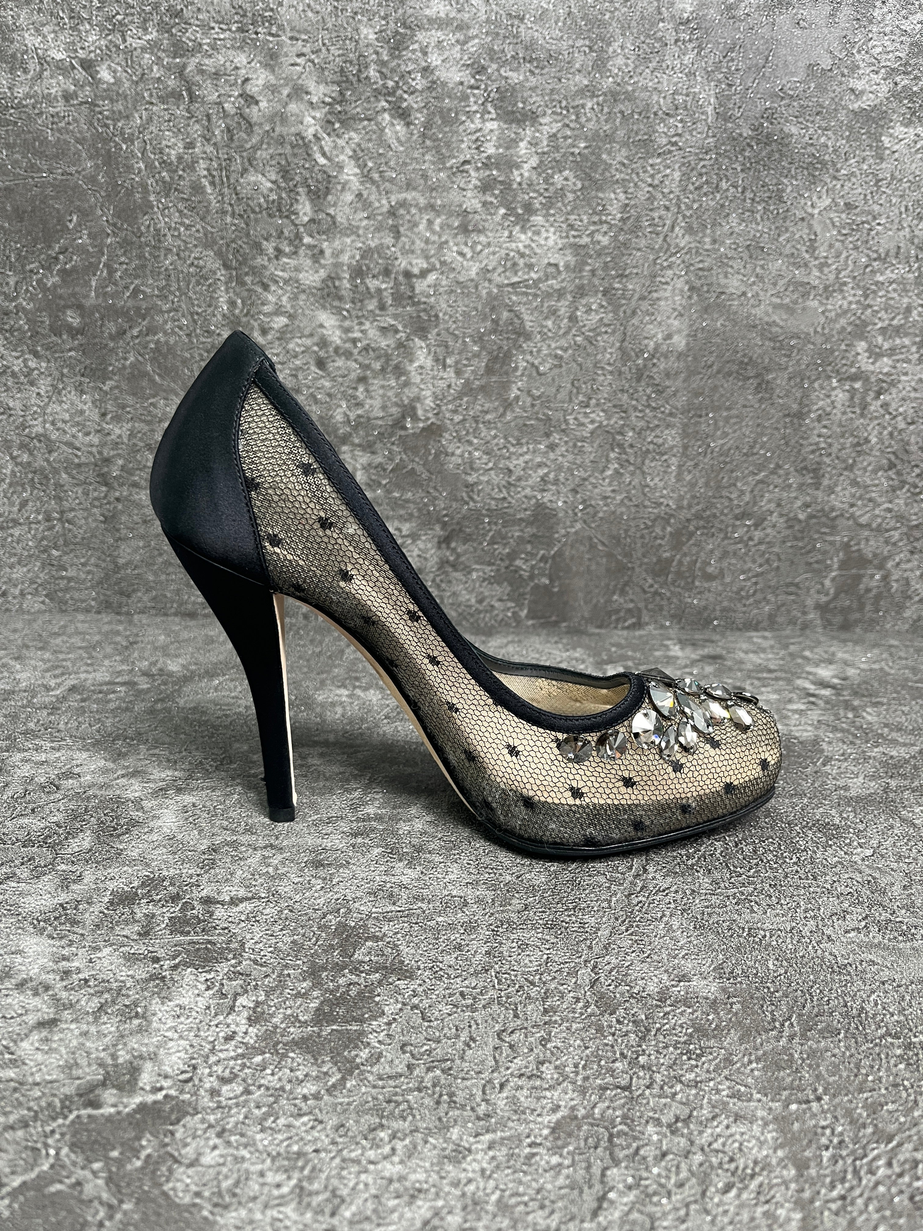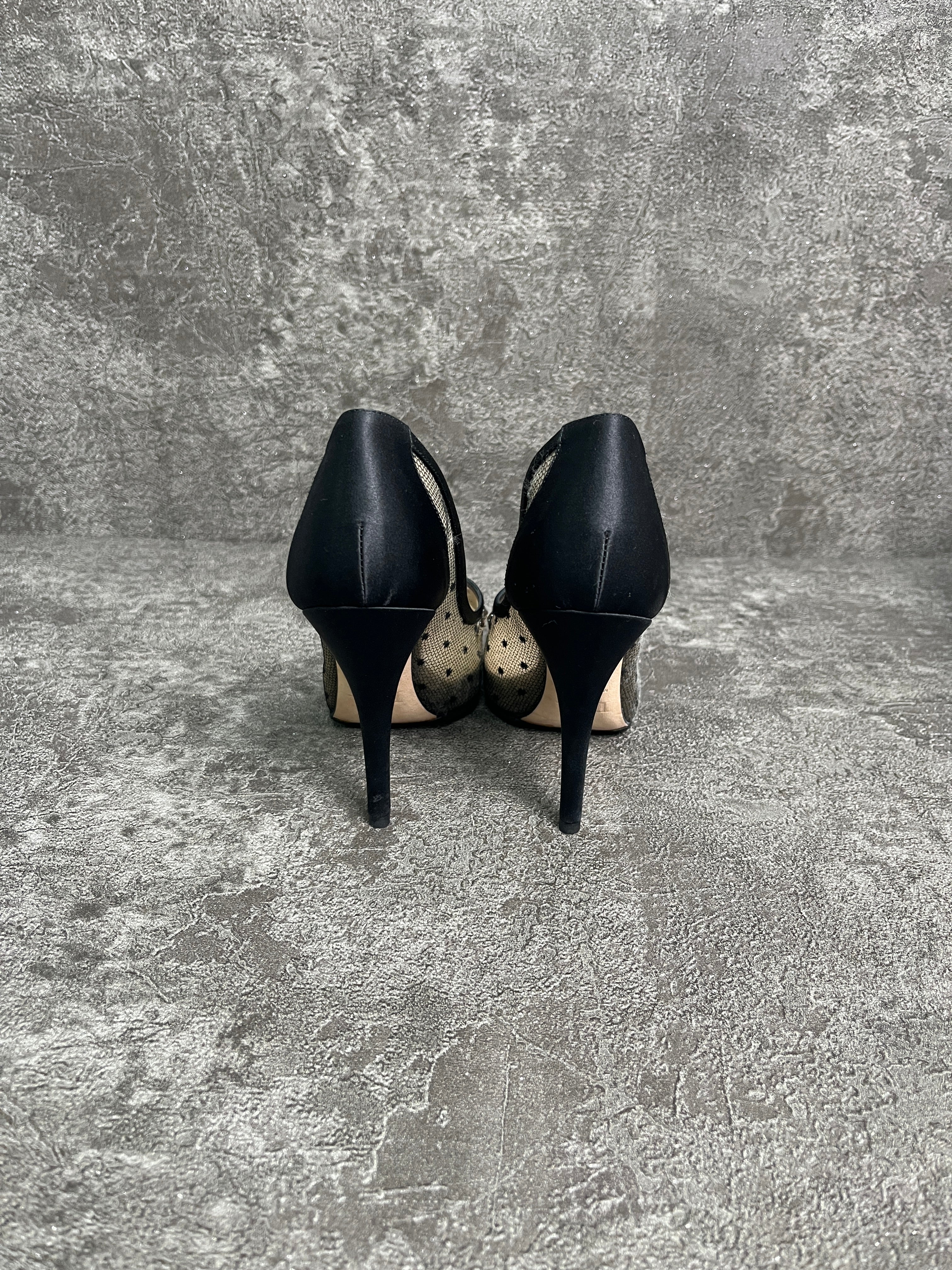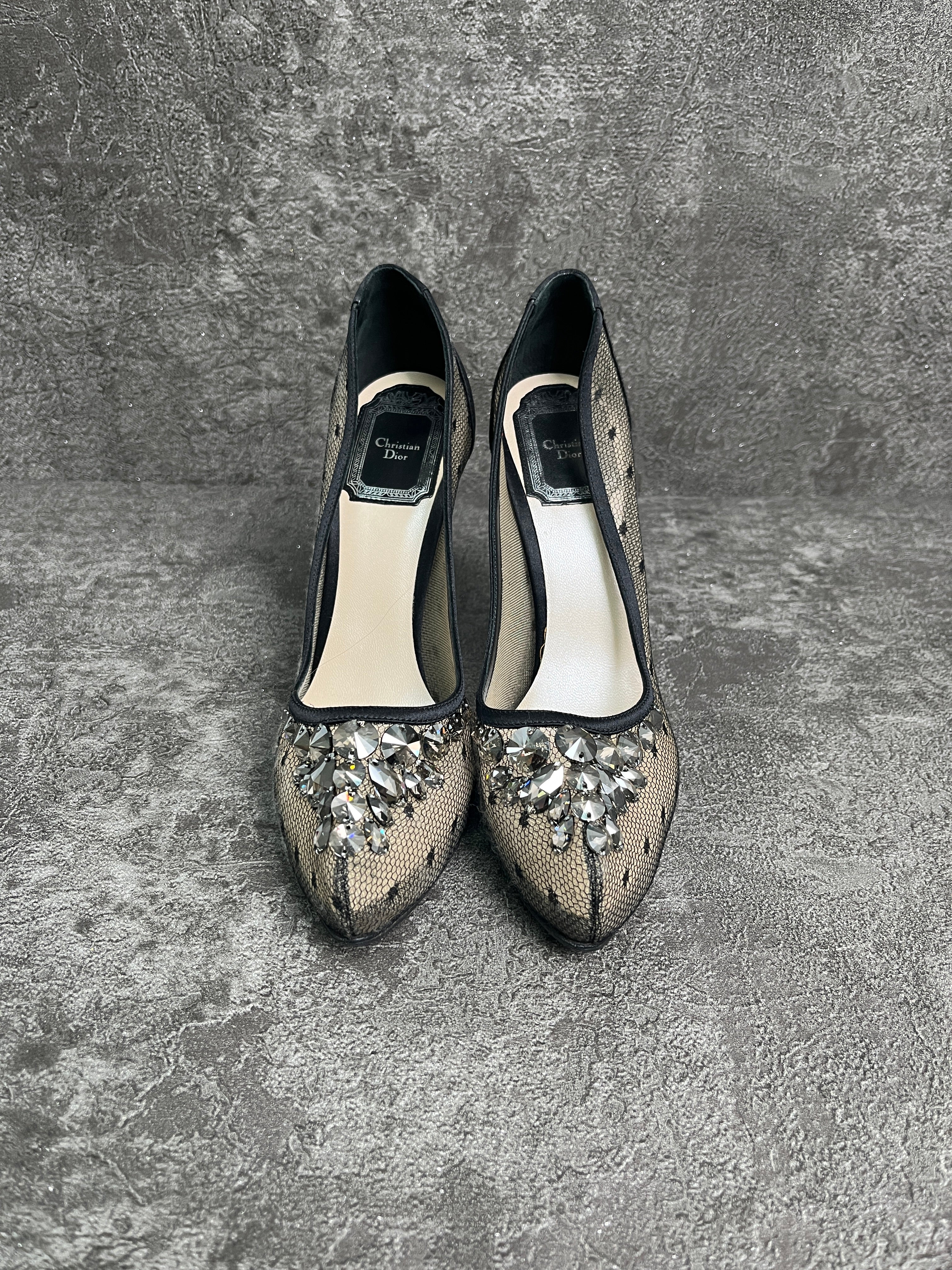 Christian Dior Black 110mm Satin Pumps With Crystal Embellishment