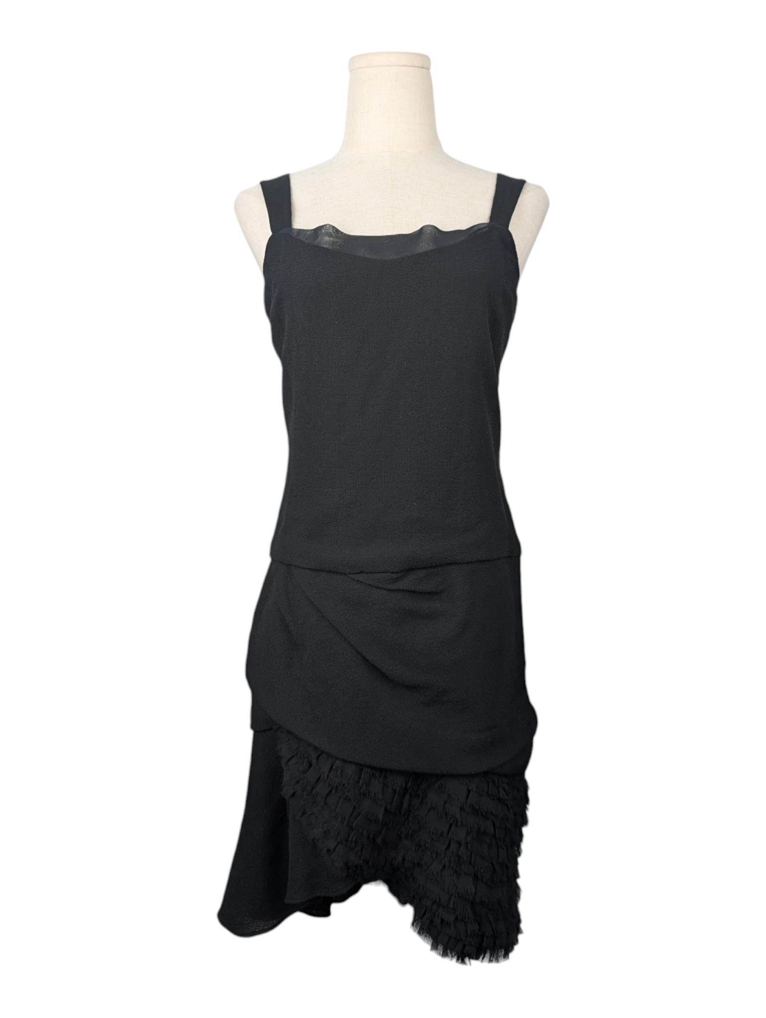 Gemma Kahng Black Strap Dress With Chiffon Mesh