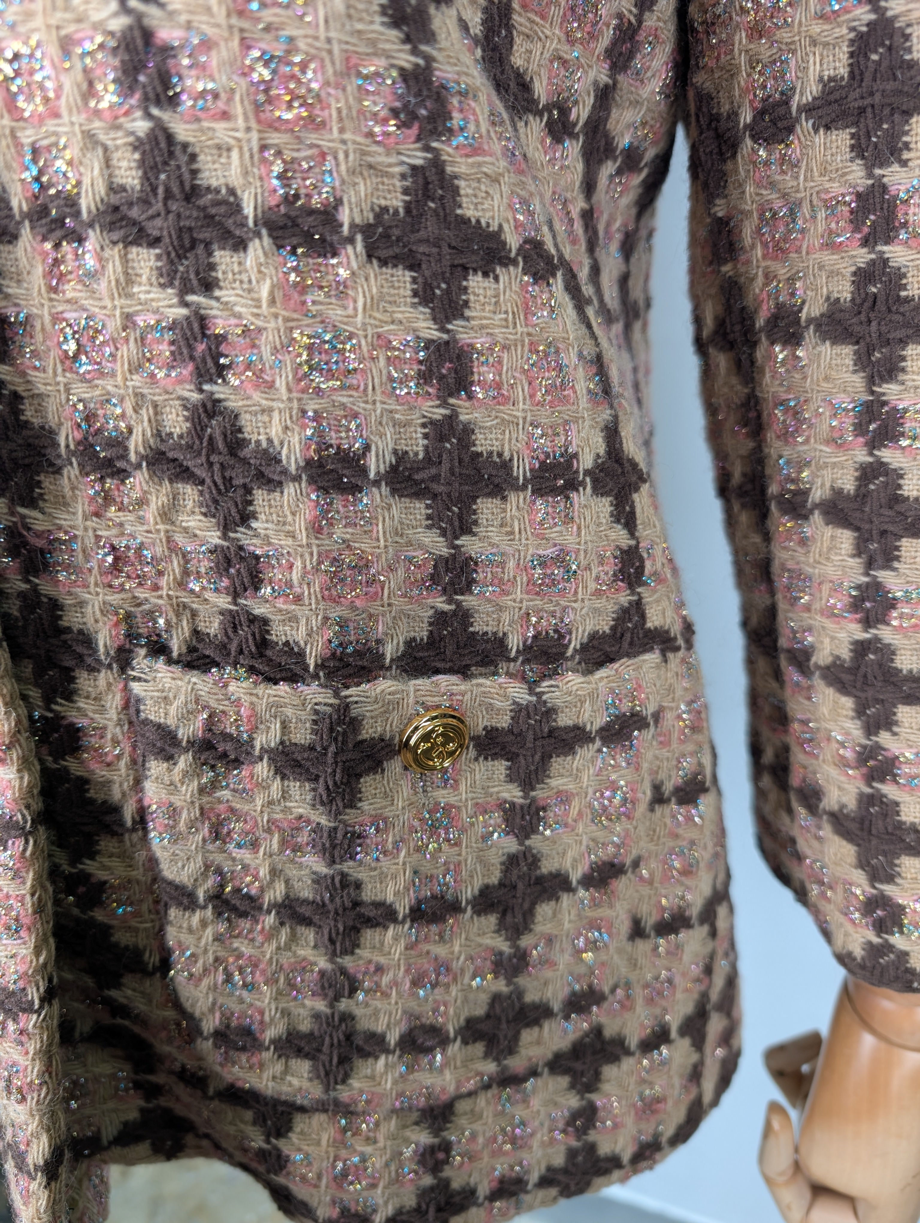 Gucci Brown And Pink Checker Tweed Jacket