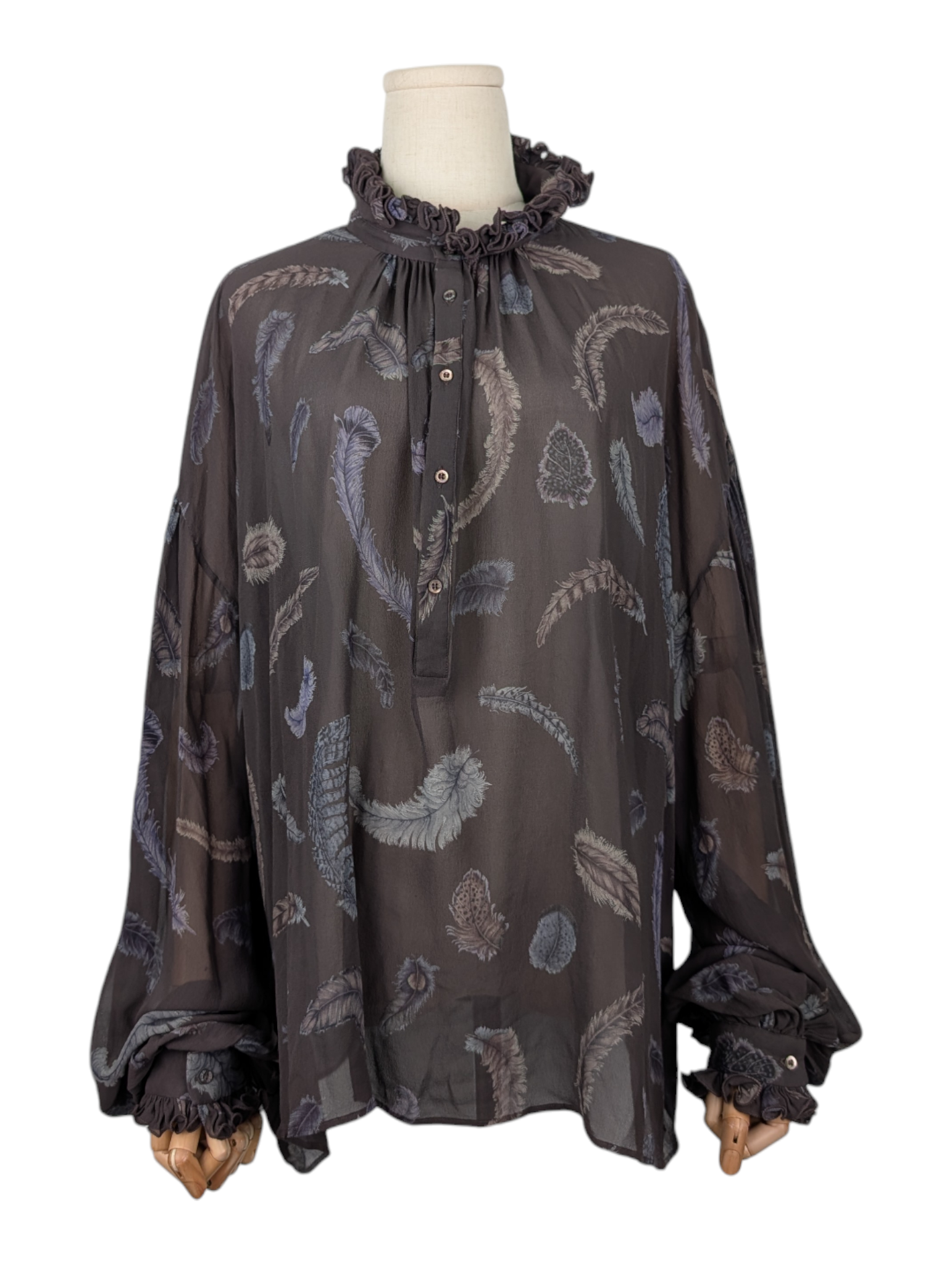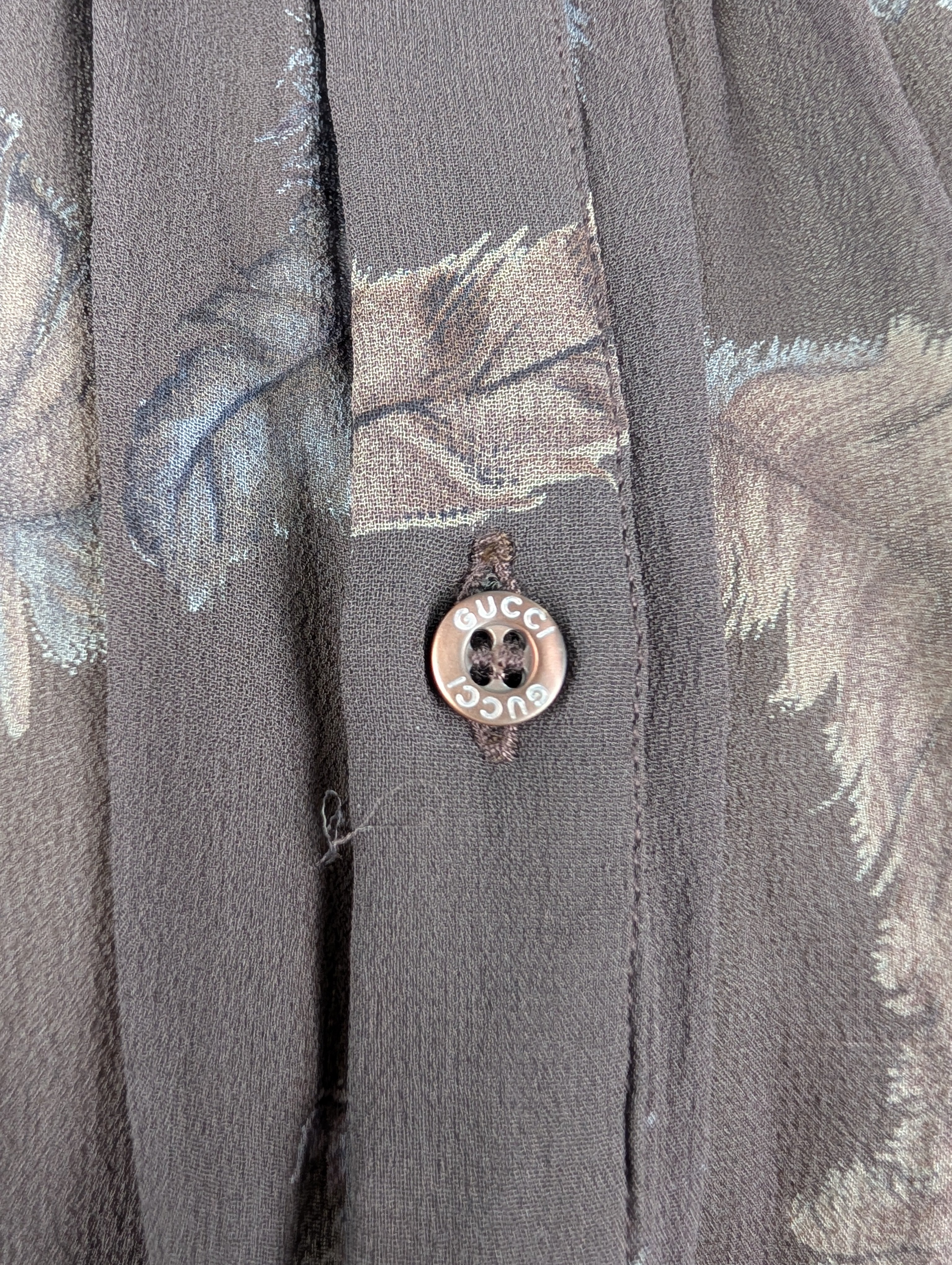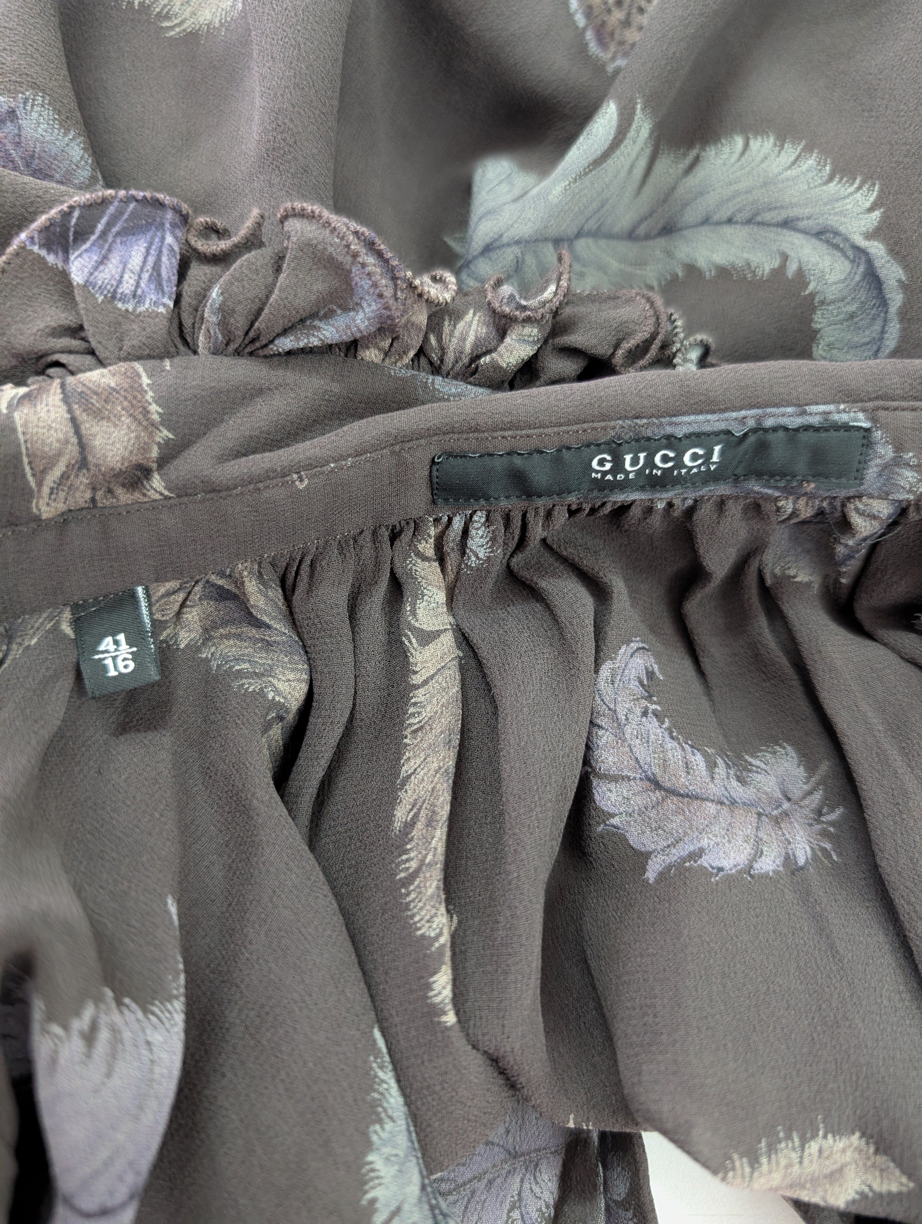 Gucci Brown Feather Pattern Long Sleeve Blouse