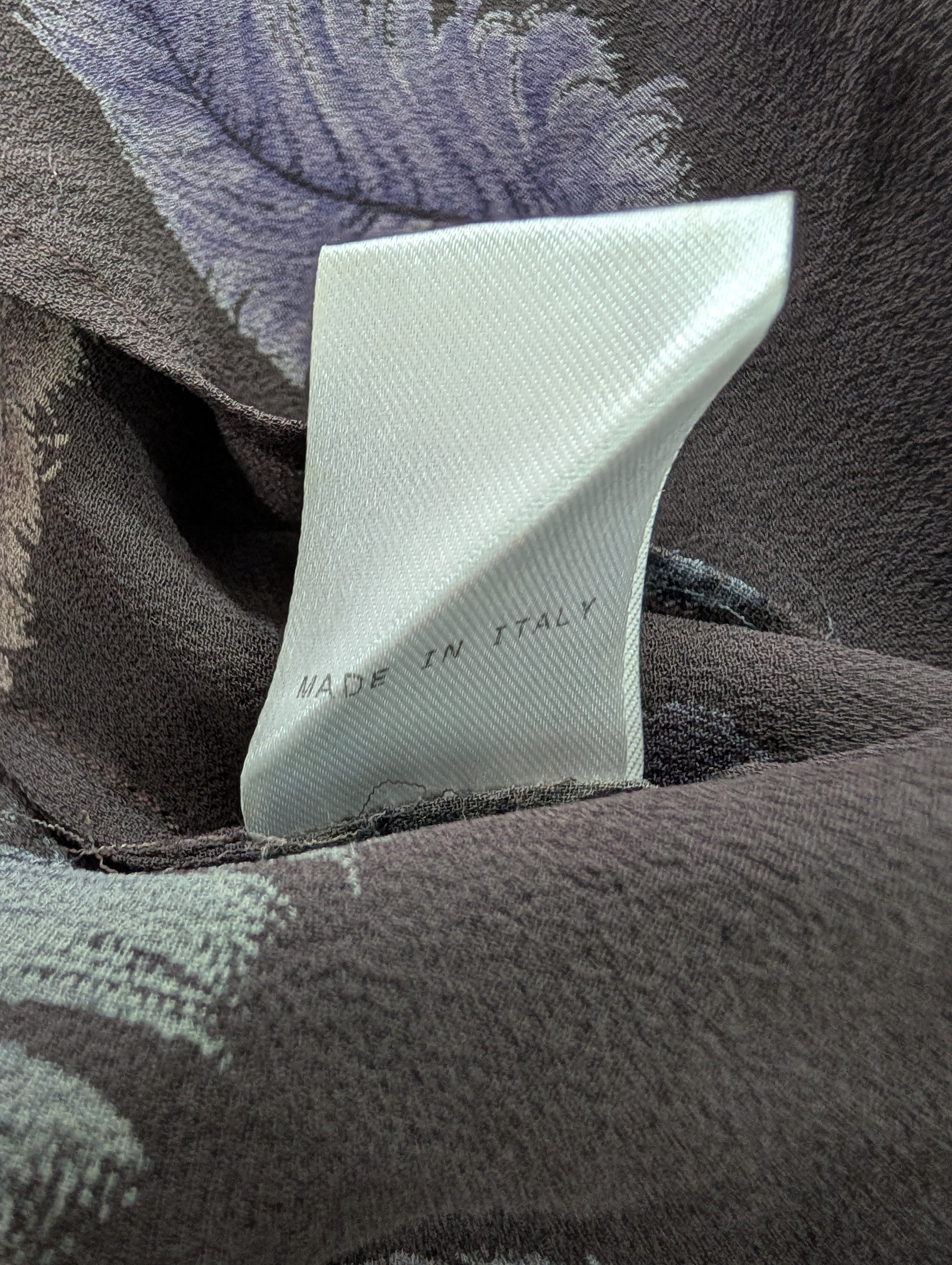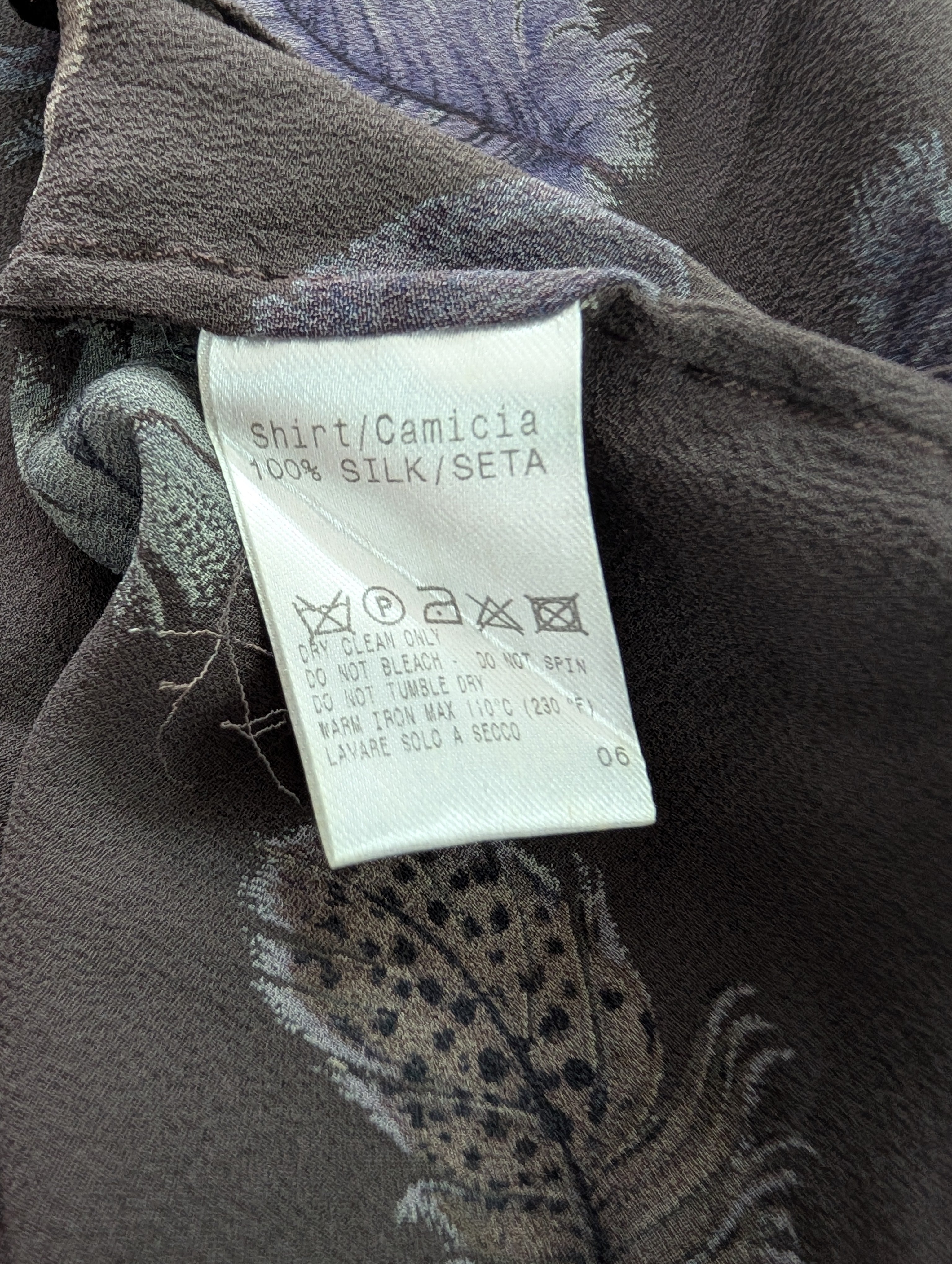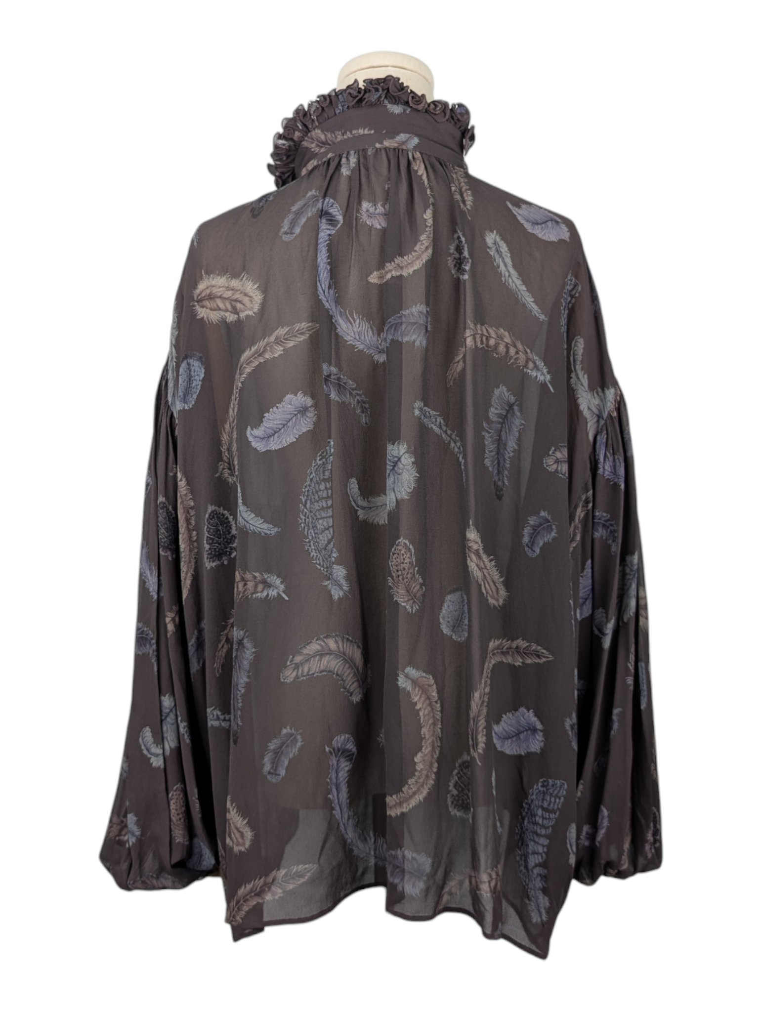 Gucci Brown Feather Pattern Long Sleeve Blouse