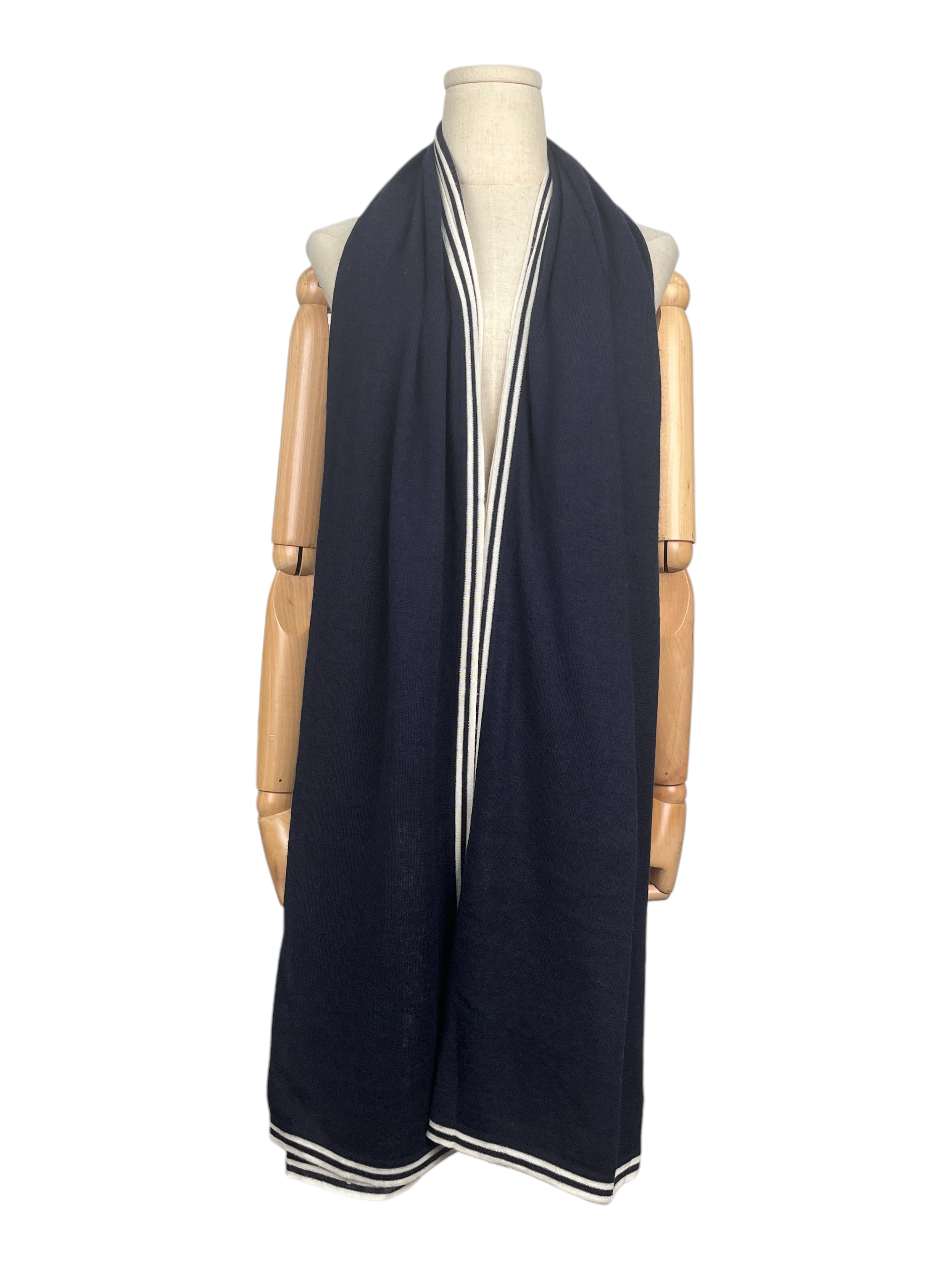 Chanel Navy Blue Overall Logo Printed Silk Scarf