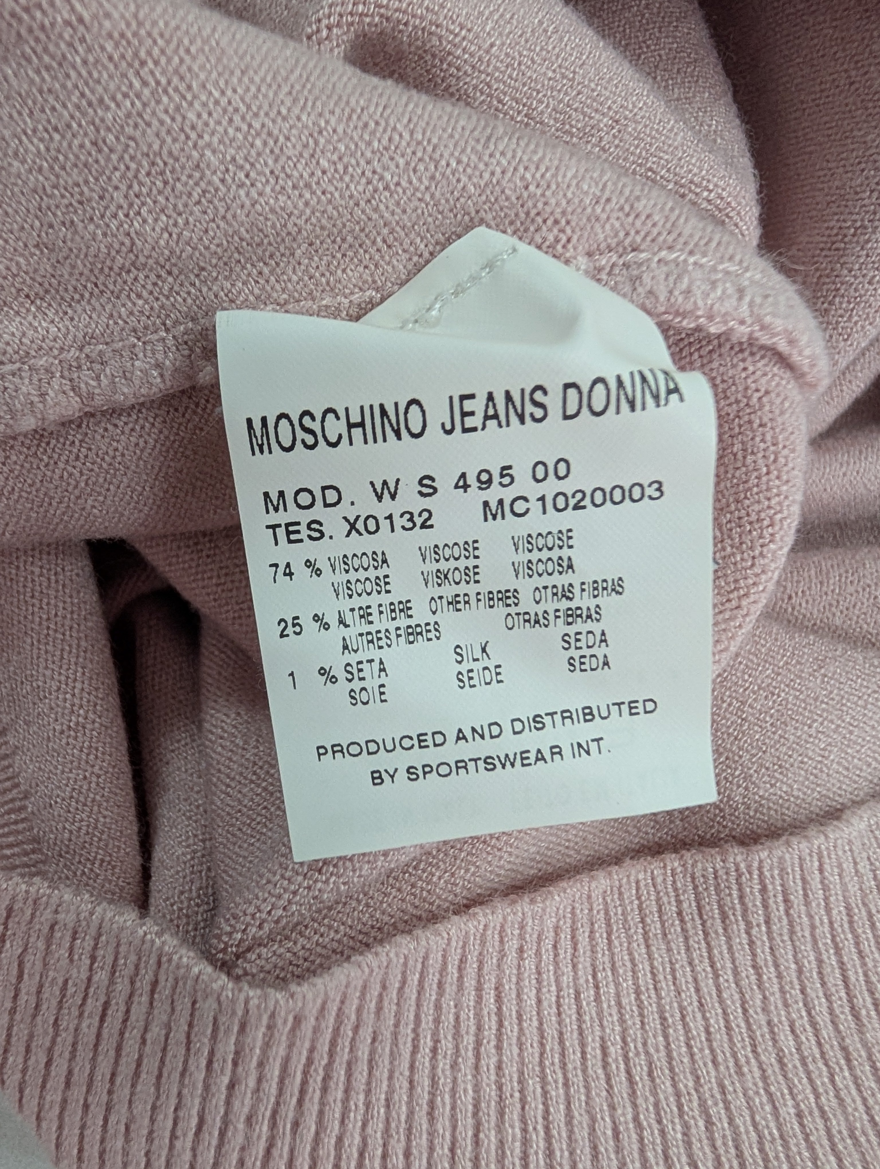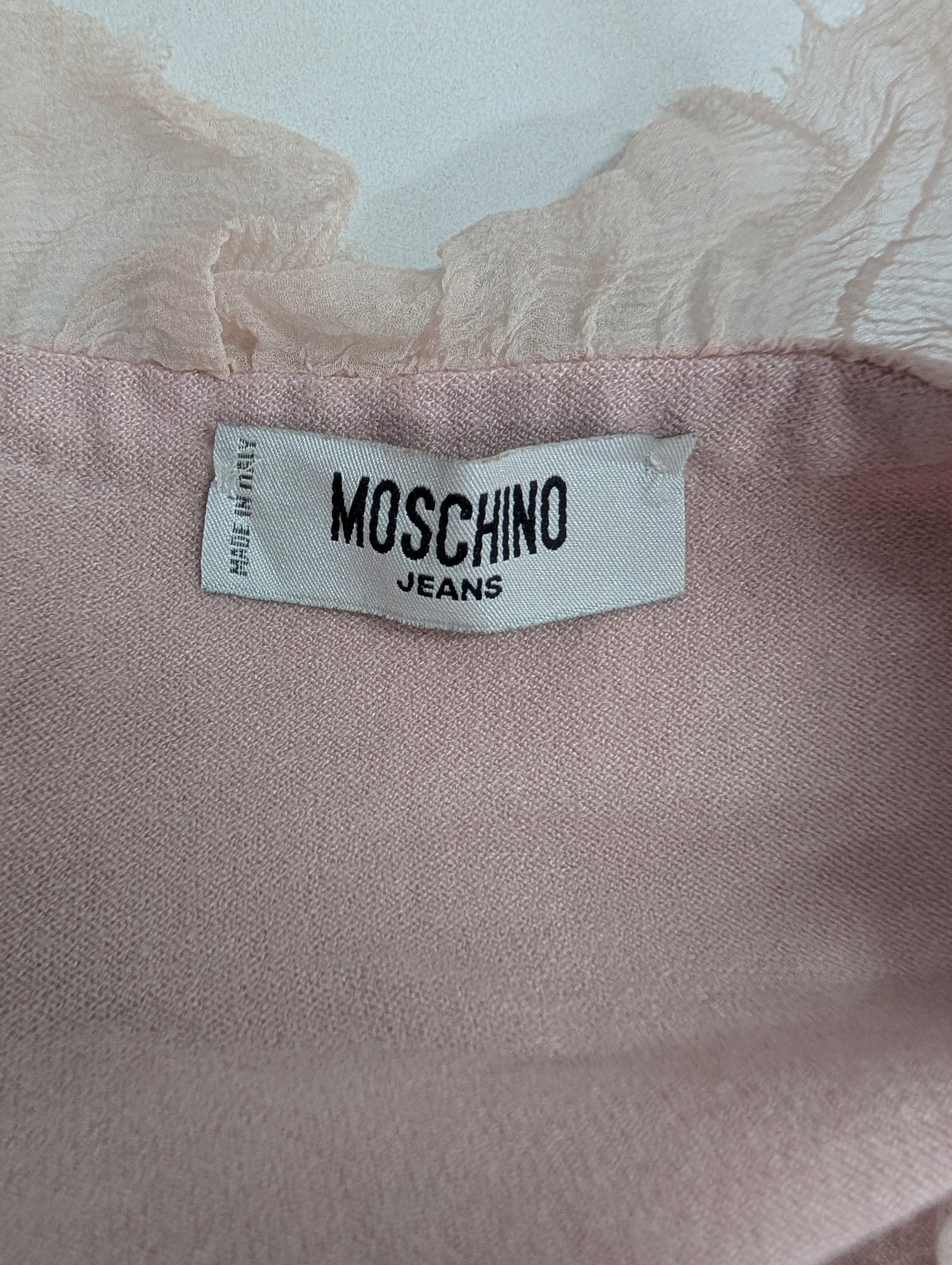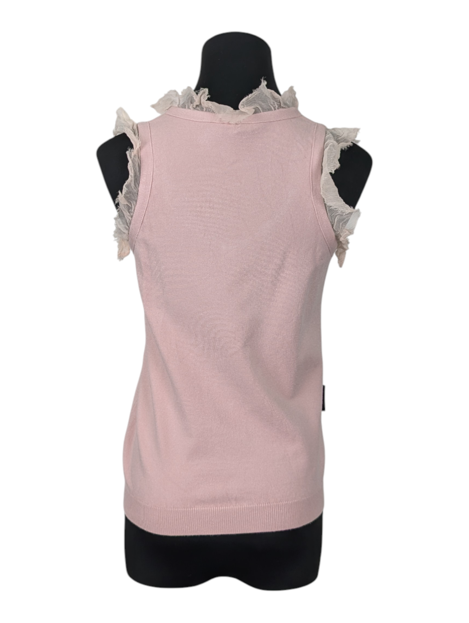 Moschino Jeans Pink Buttoned Sleeveless Top With Ruffle Collar
