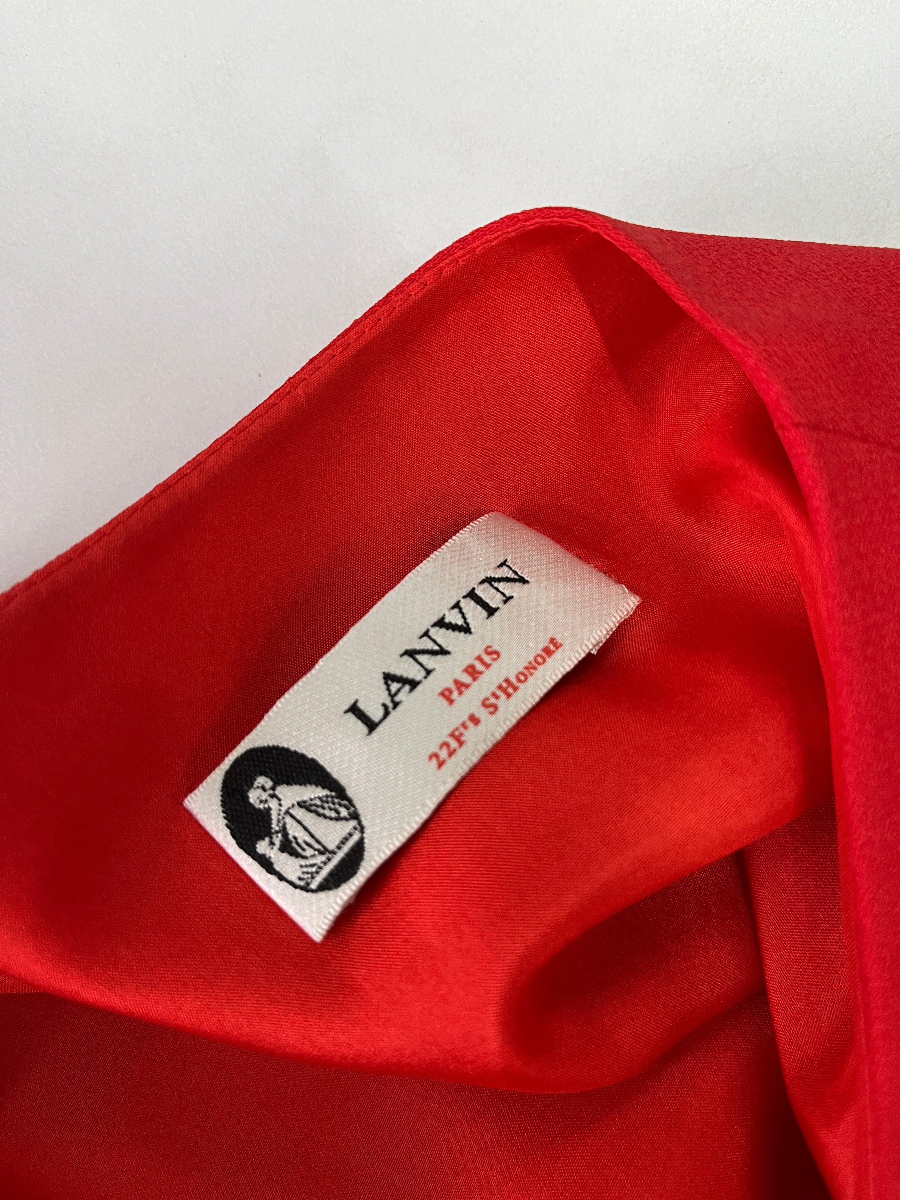 Lanvin Red Sheer And Open Long Sleeves Draped Long Dress