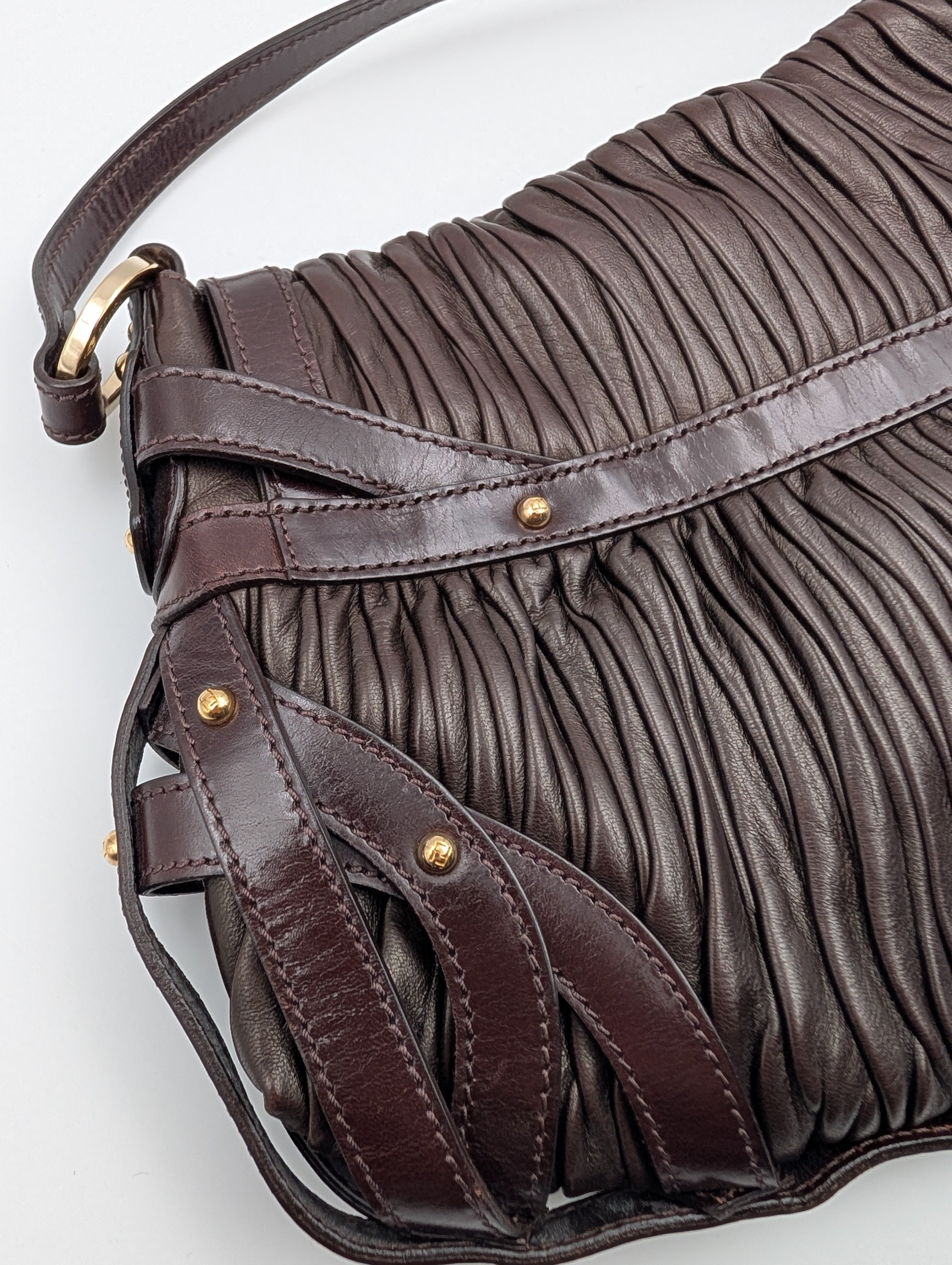 Fendi Dark Brown Plisse Chef Handbag