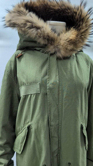 Green Hooded Parka With Multi-Color Full Fur Lining