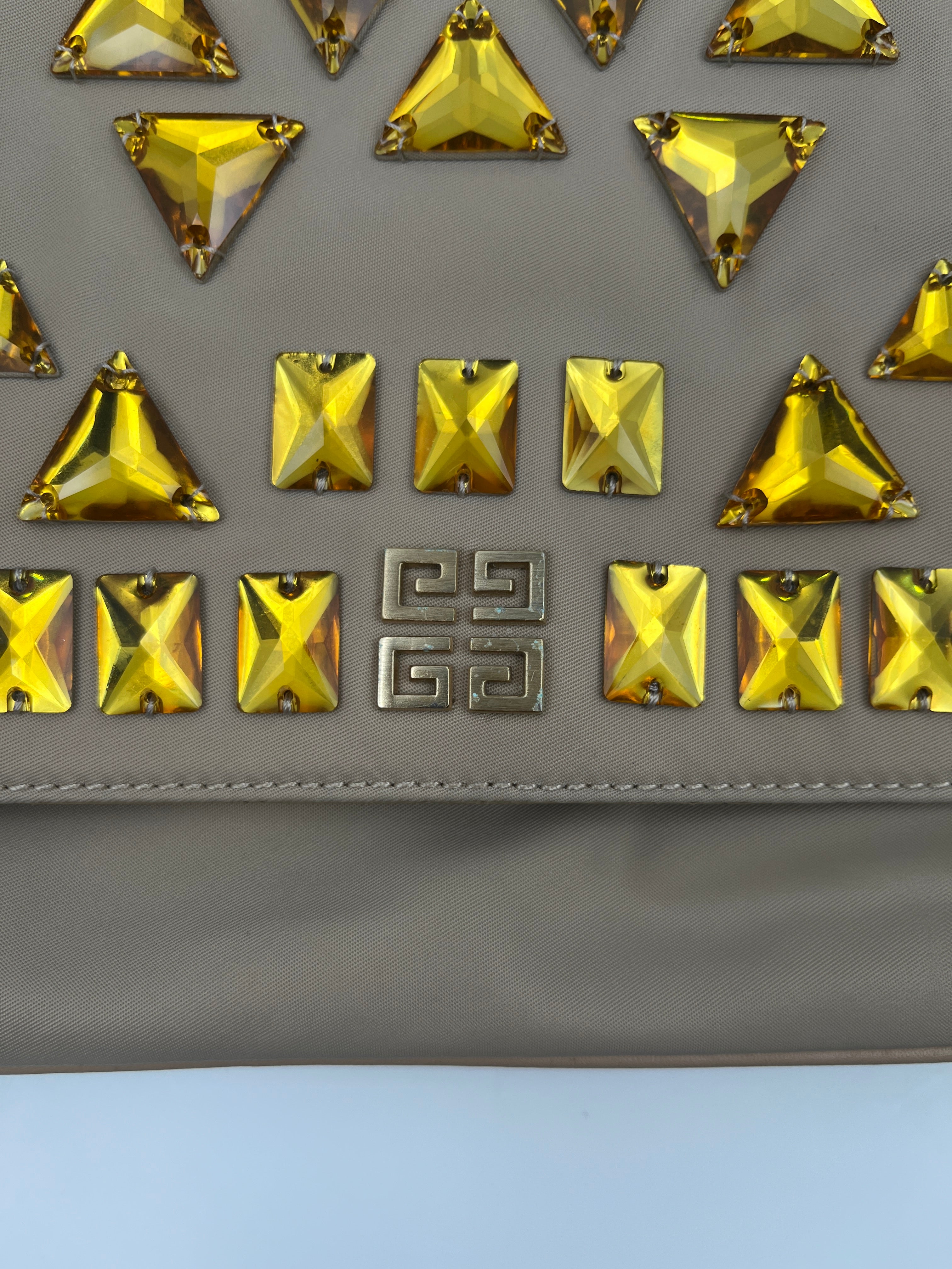 Givenchy Beige Nylon Clutch Embellished With Yellow Crystal
