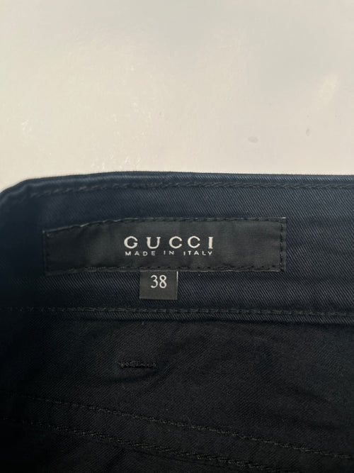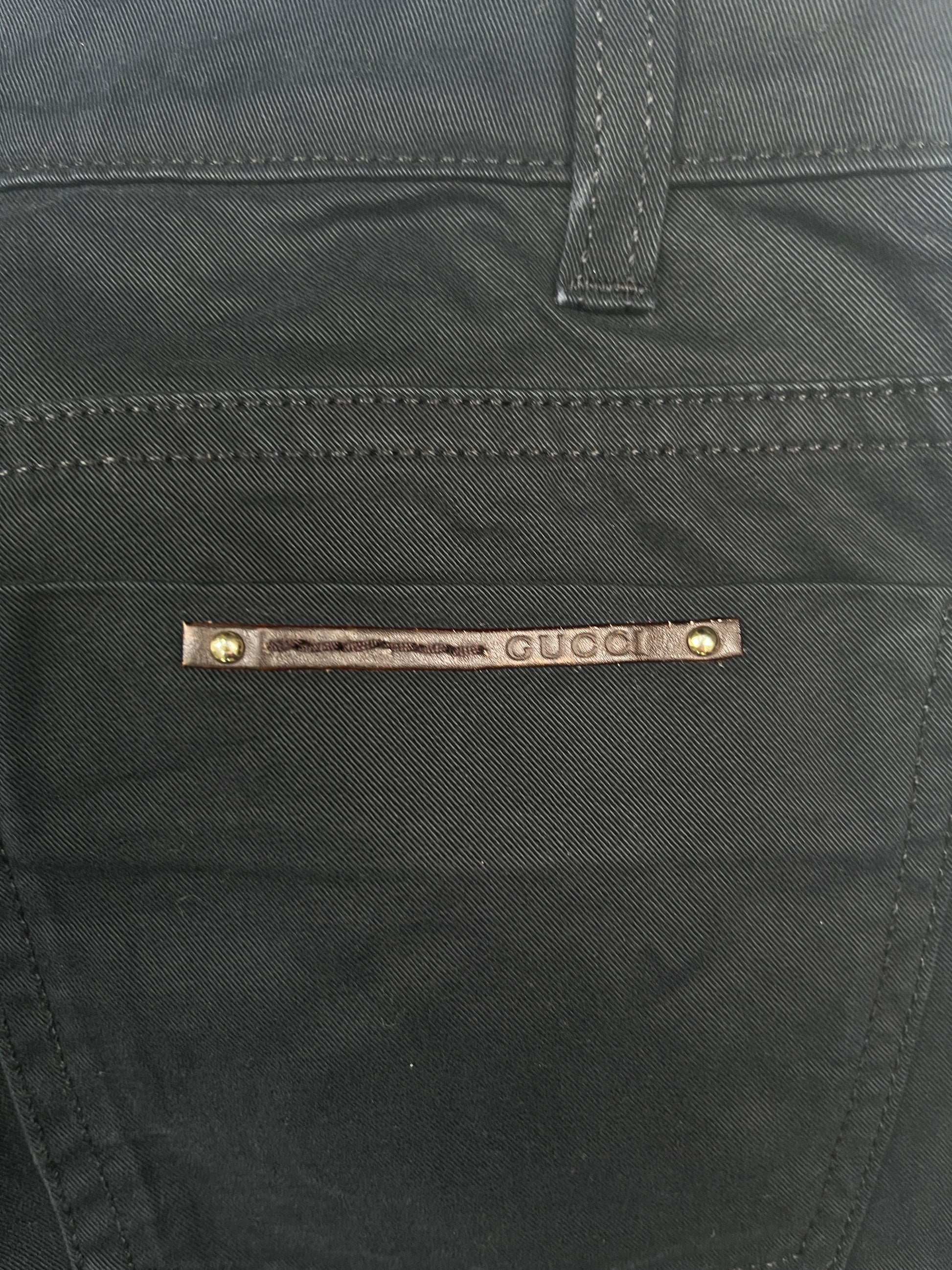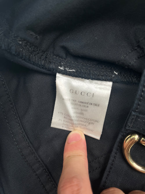 Gucci Black Pants With 2 Golden Horsebits And GG Button