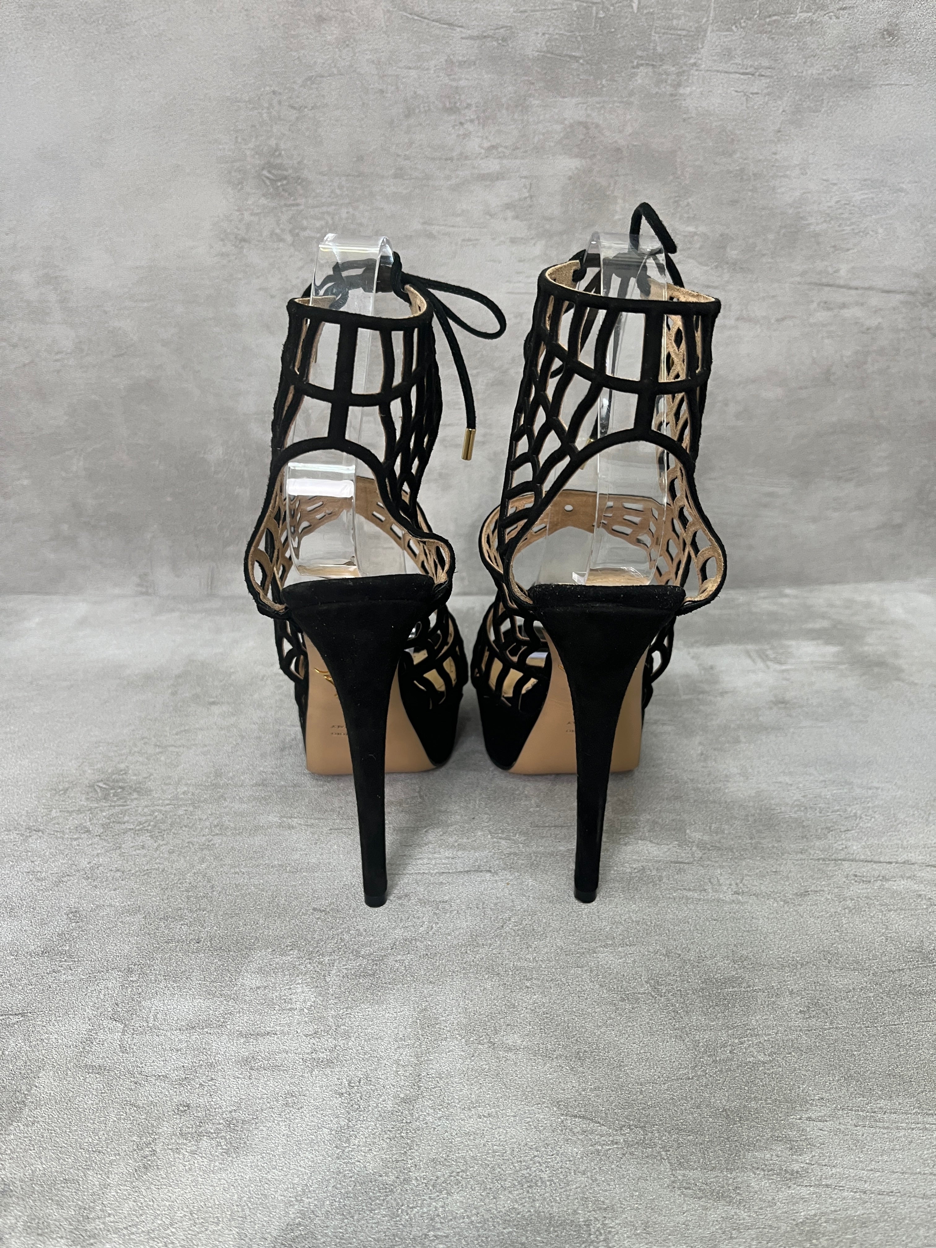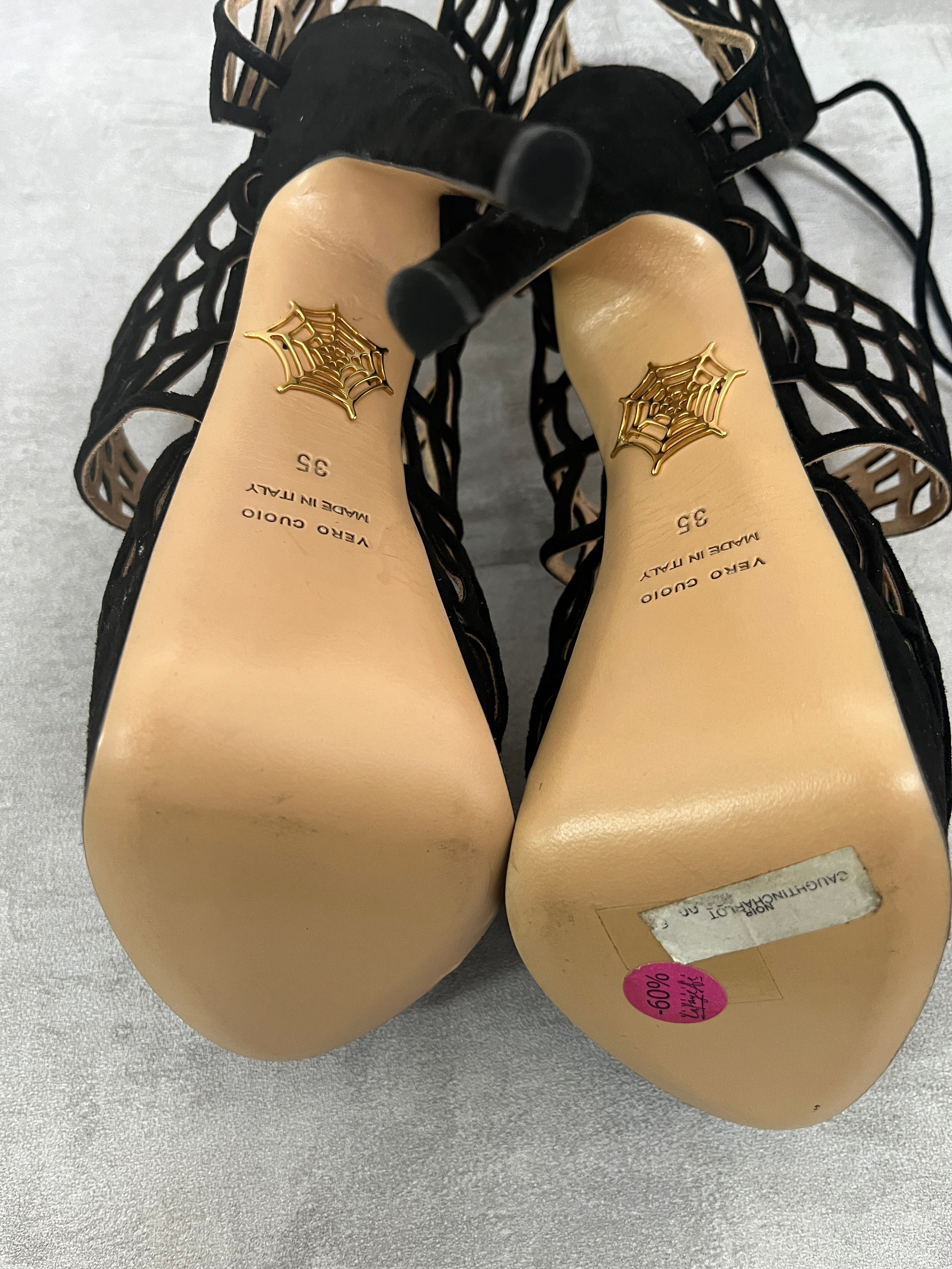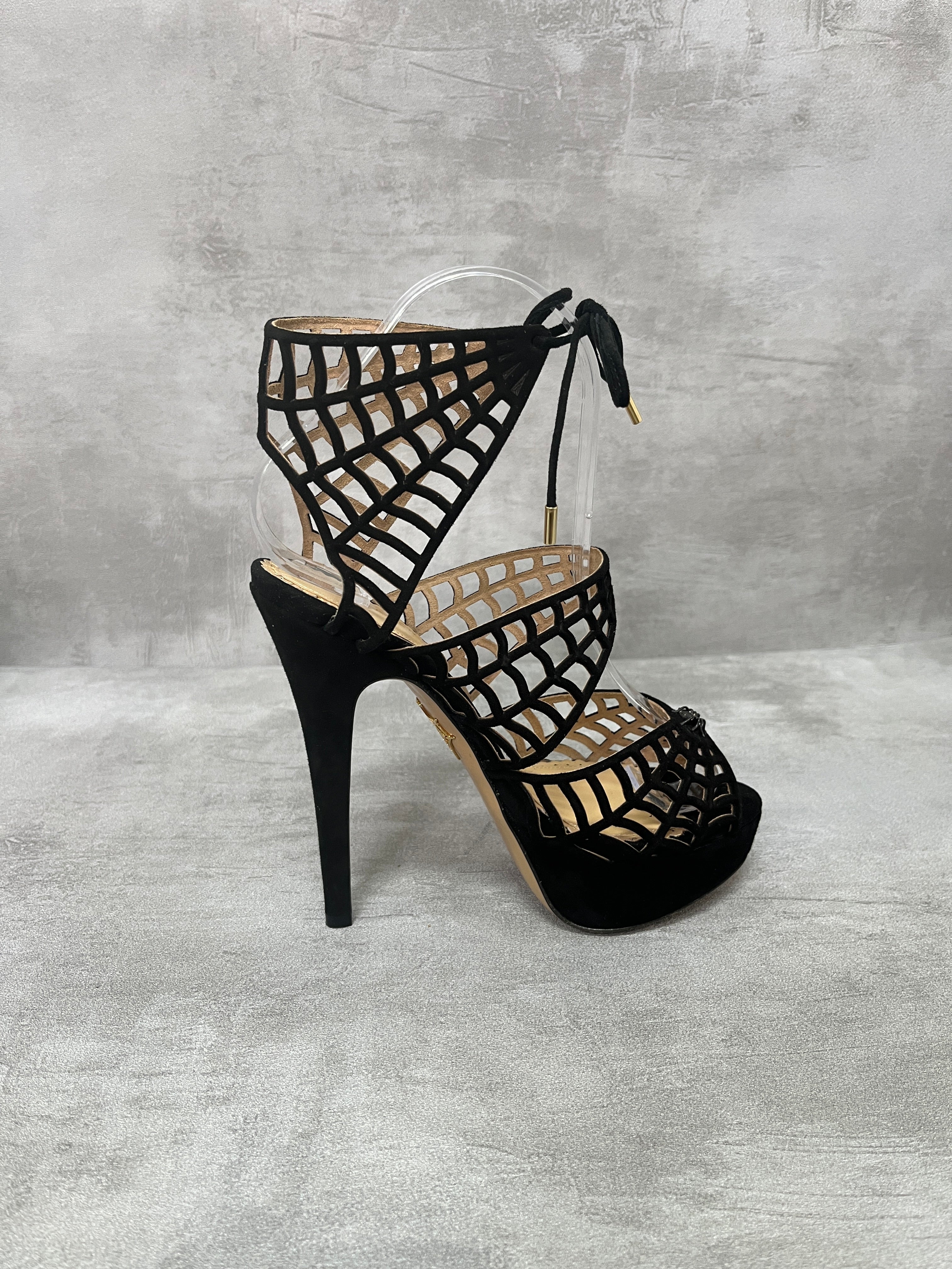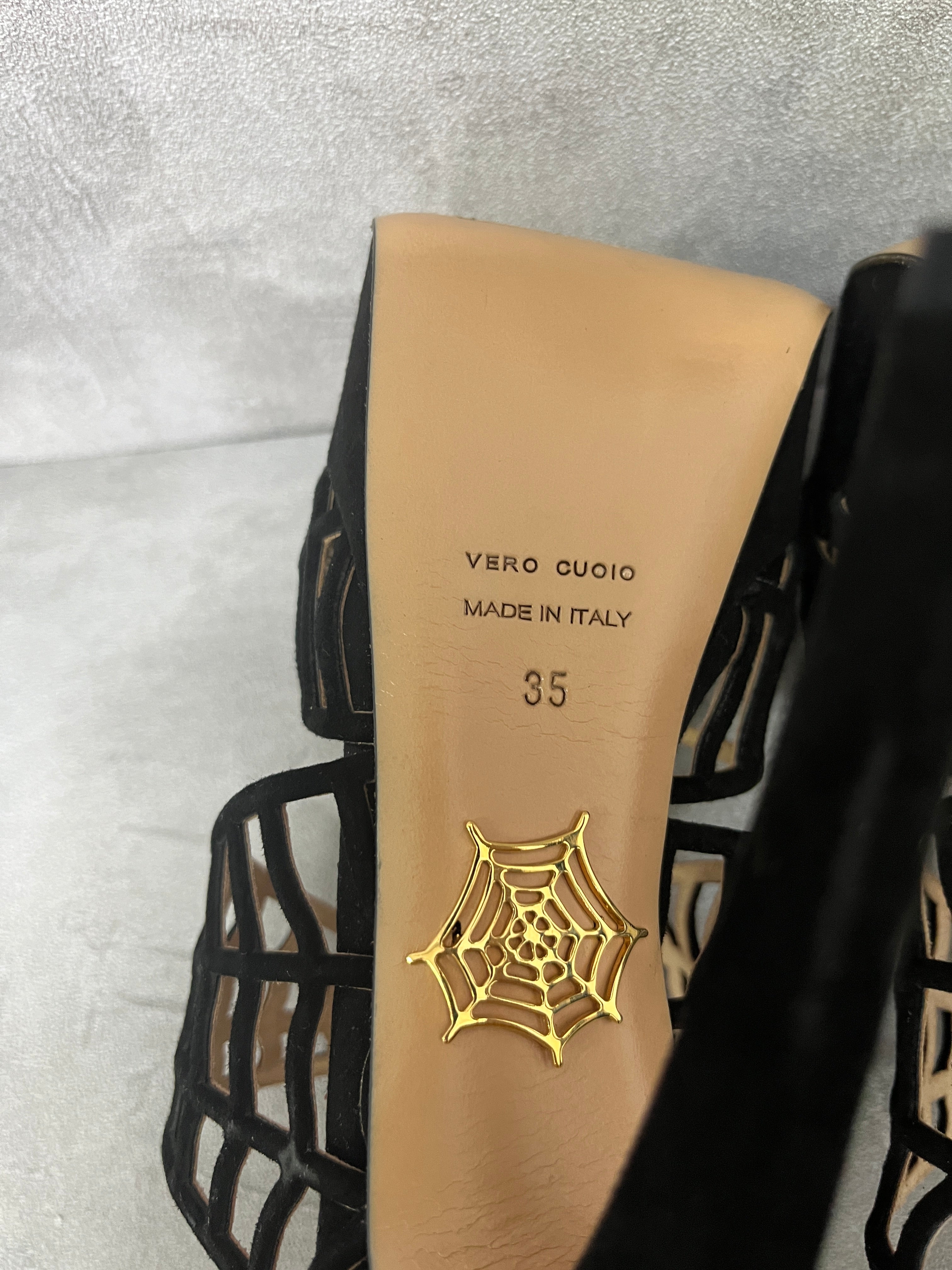 Charlotte Olympia Black Suede Spider-Web Platform Heels