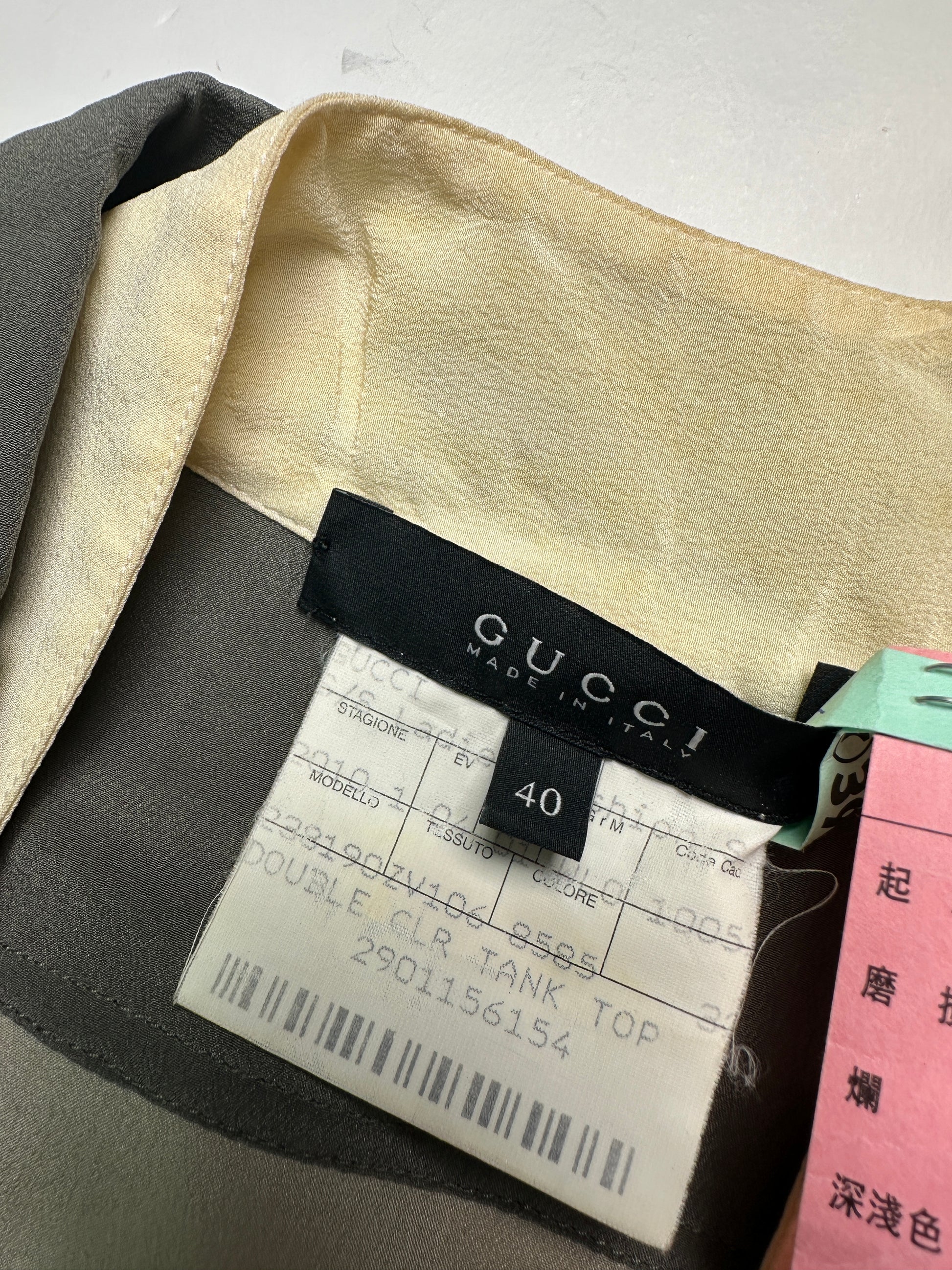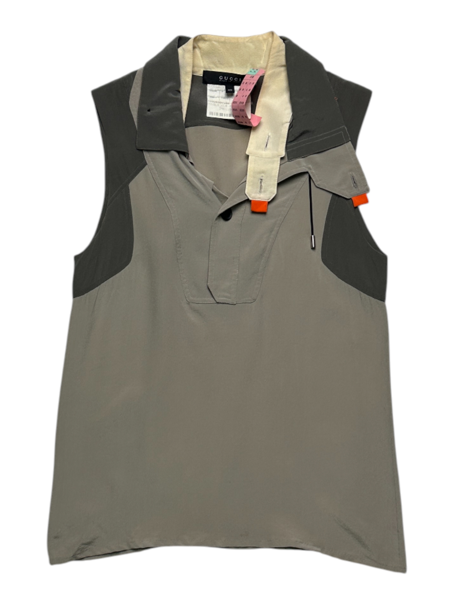 Gucci Grey Sleeveless Top With Drawstring Collar Design