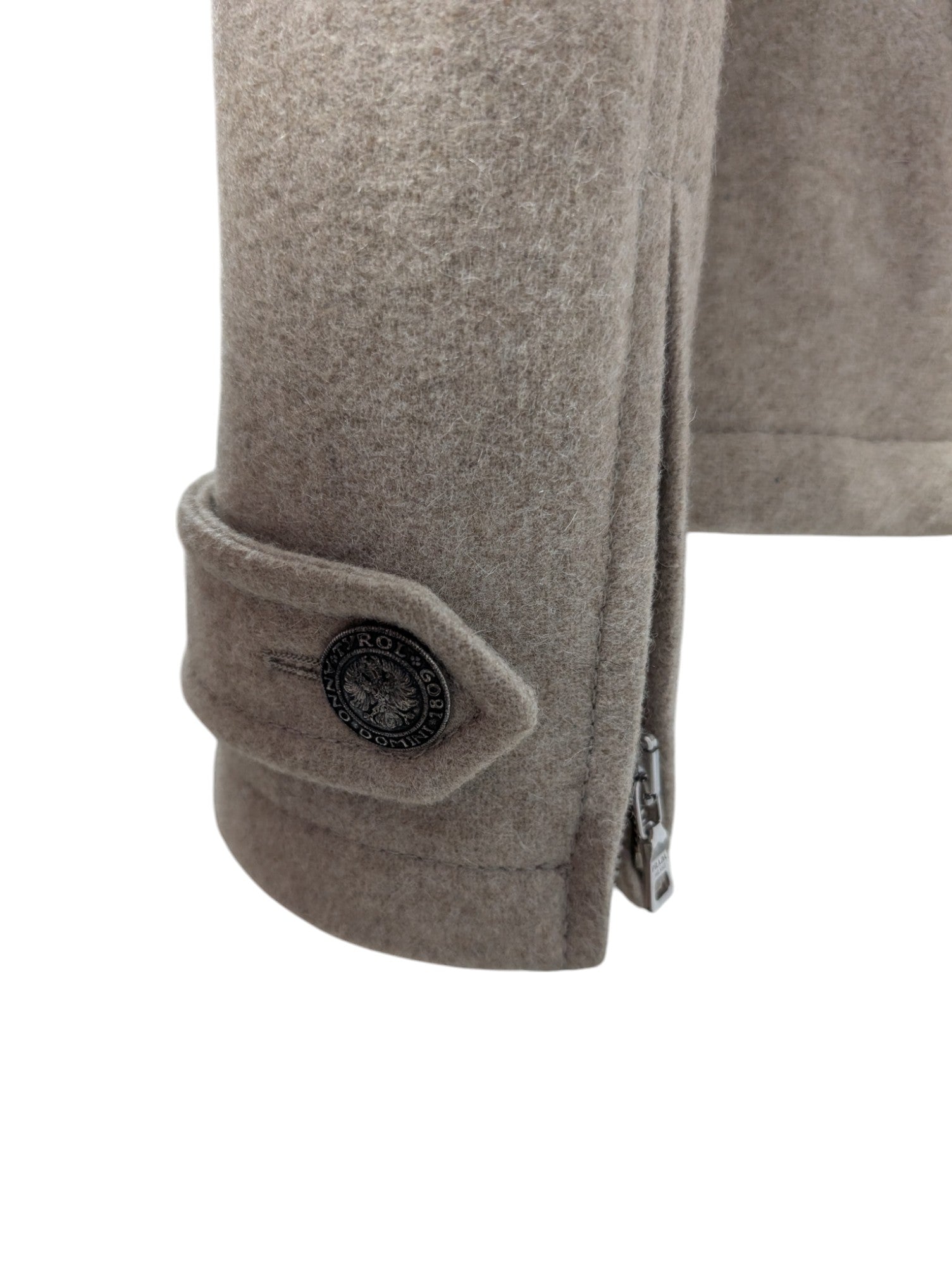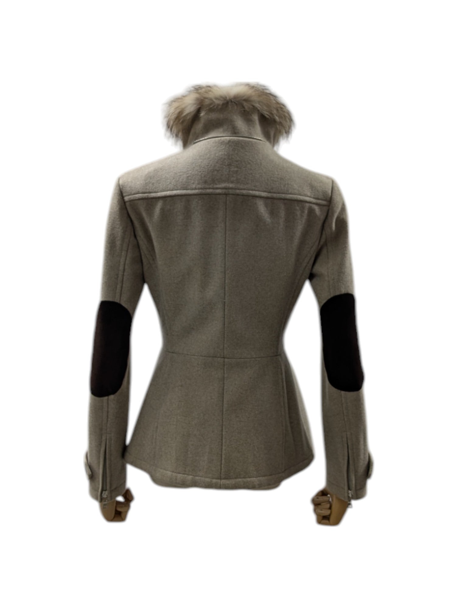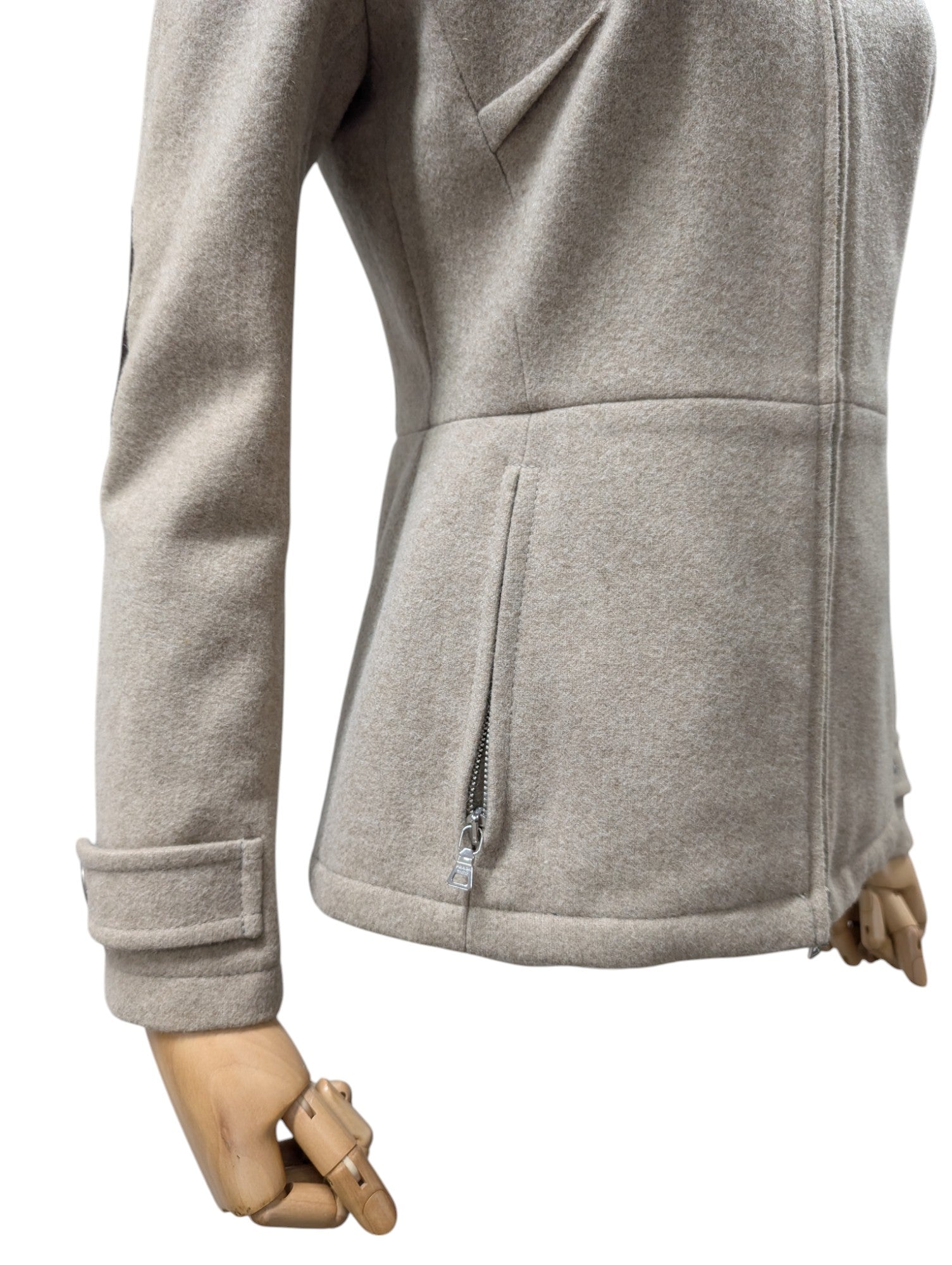 Light Brown Zip Up Wool Jacket With Leather Elbow Padded