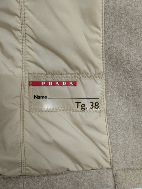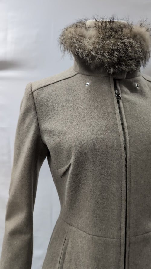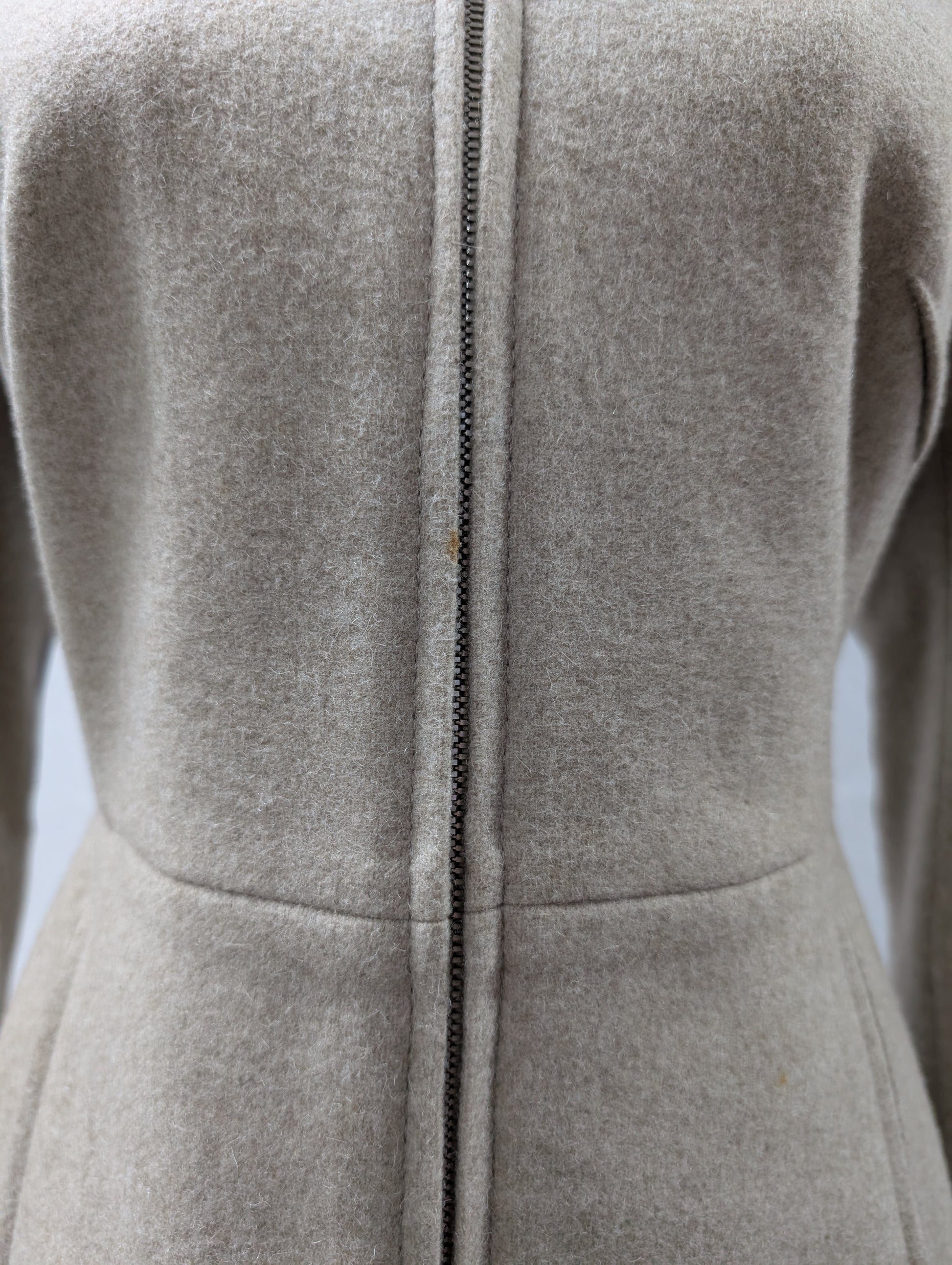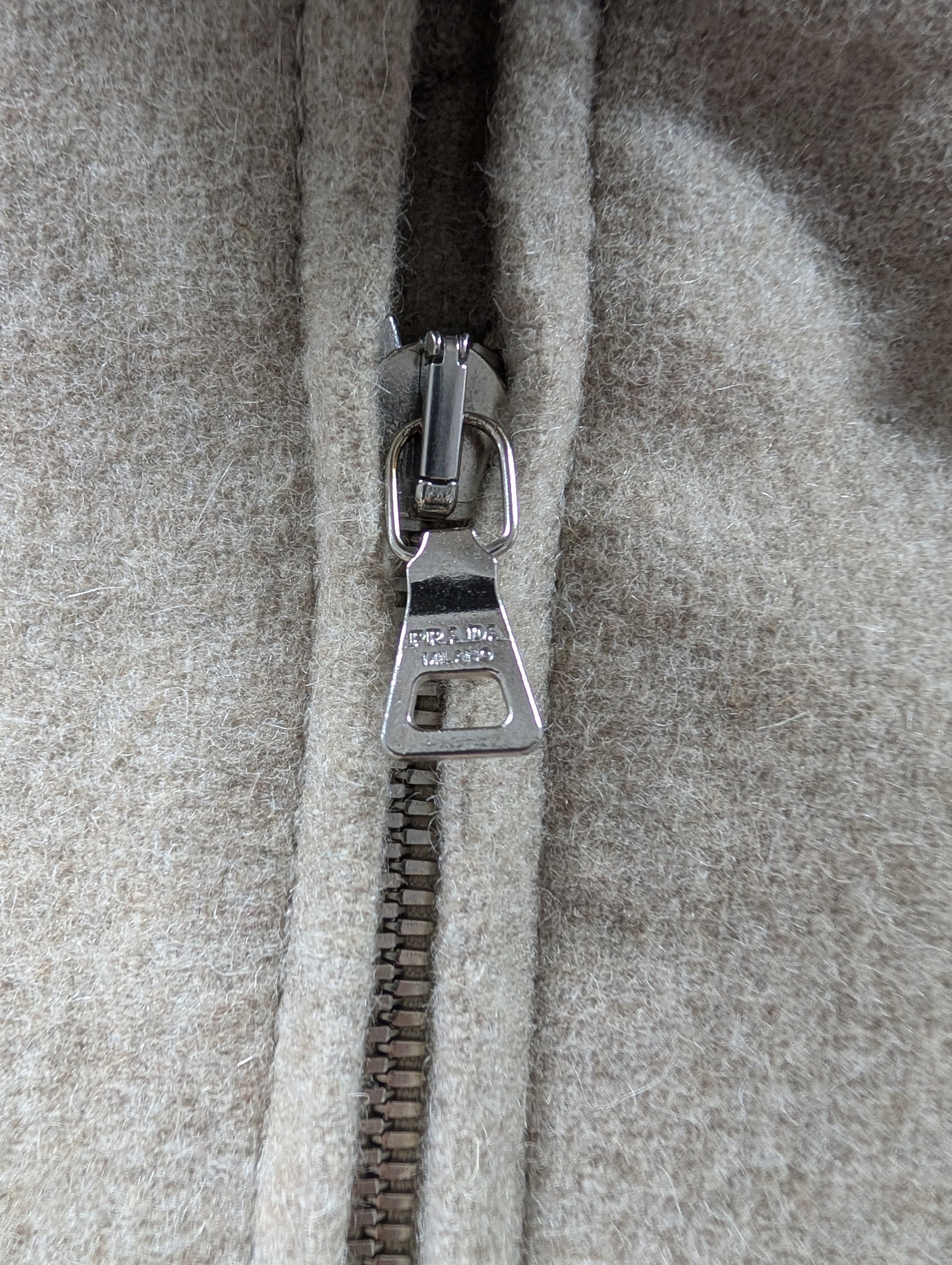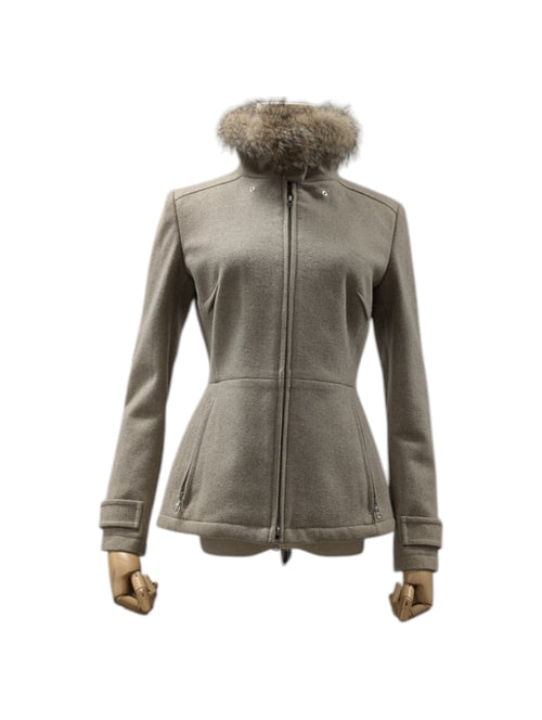 Light Brown Zip Up Wool Jacket With Leather Elbow Padded