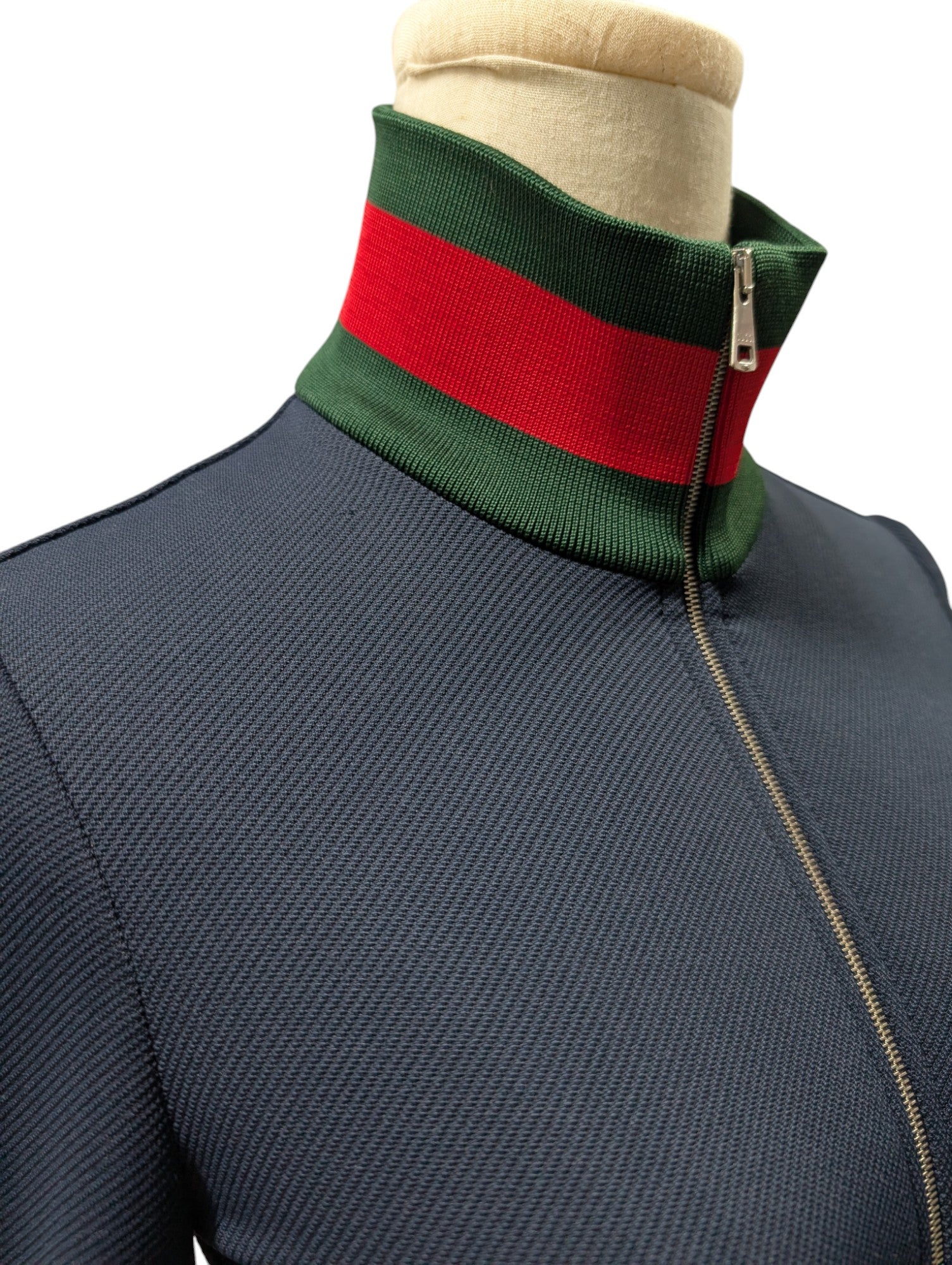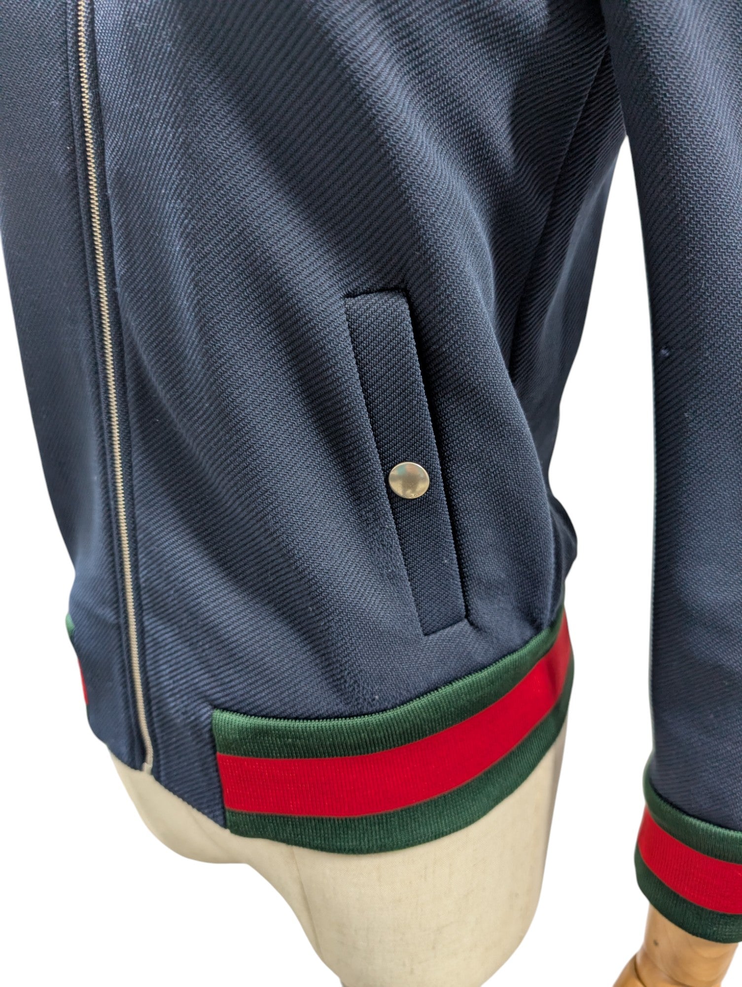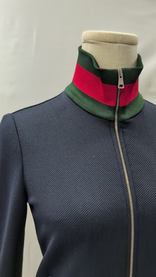 Navy Blue Zip Up Jacket With Signature Gucci Color Trims