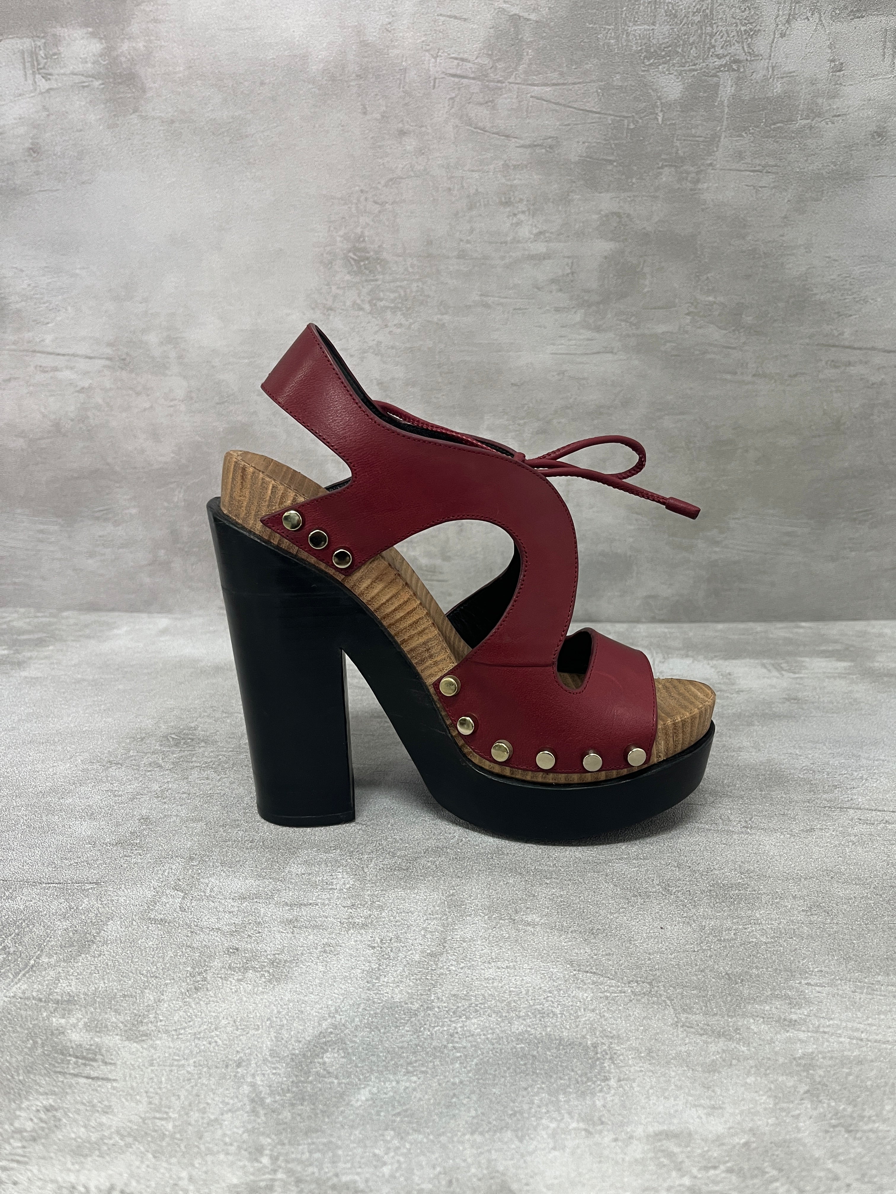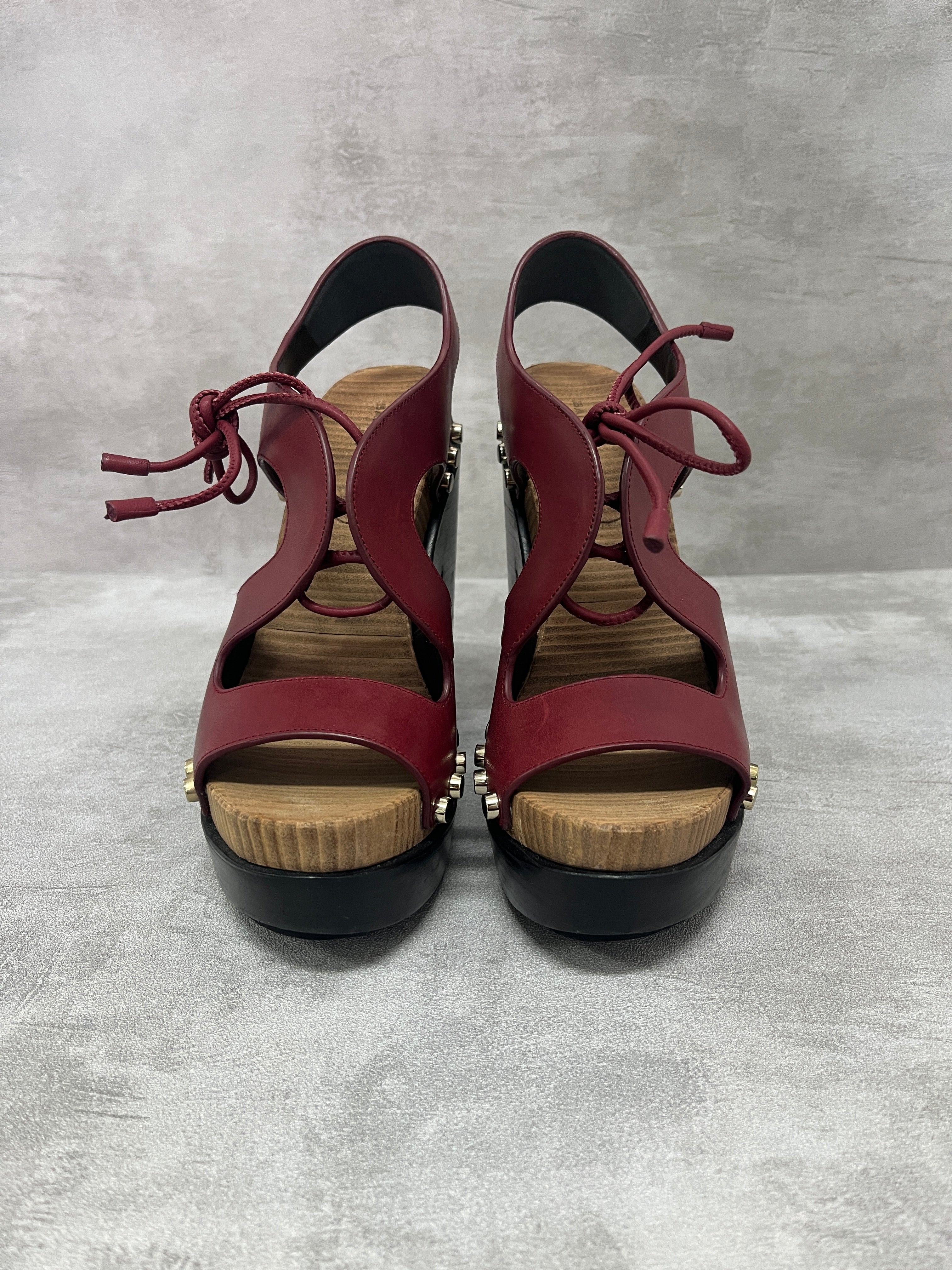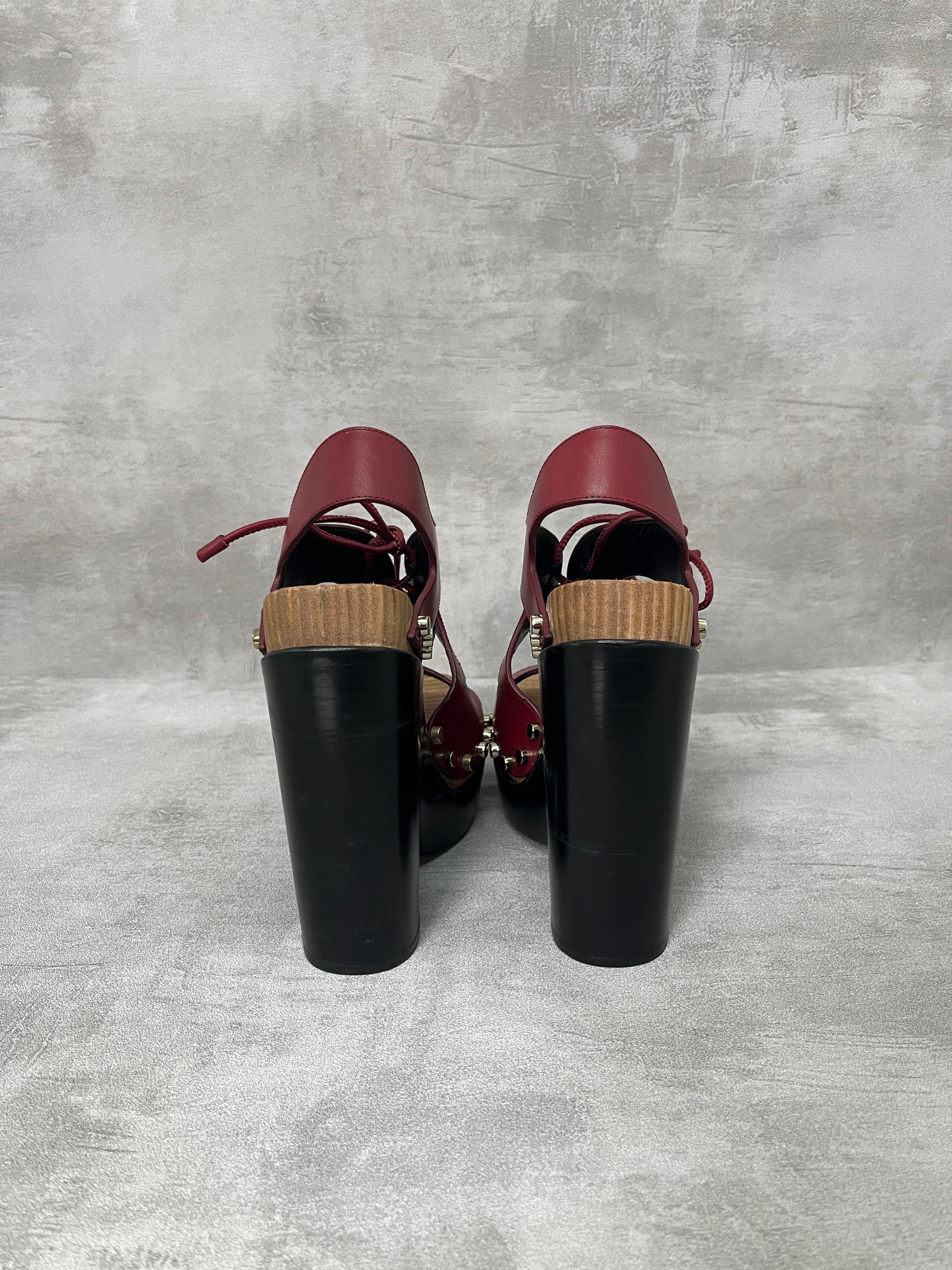 Balenciaga Rusty Burgundy Lace Up Wooden Platform