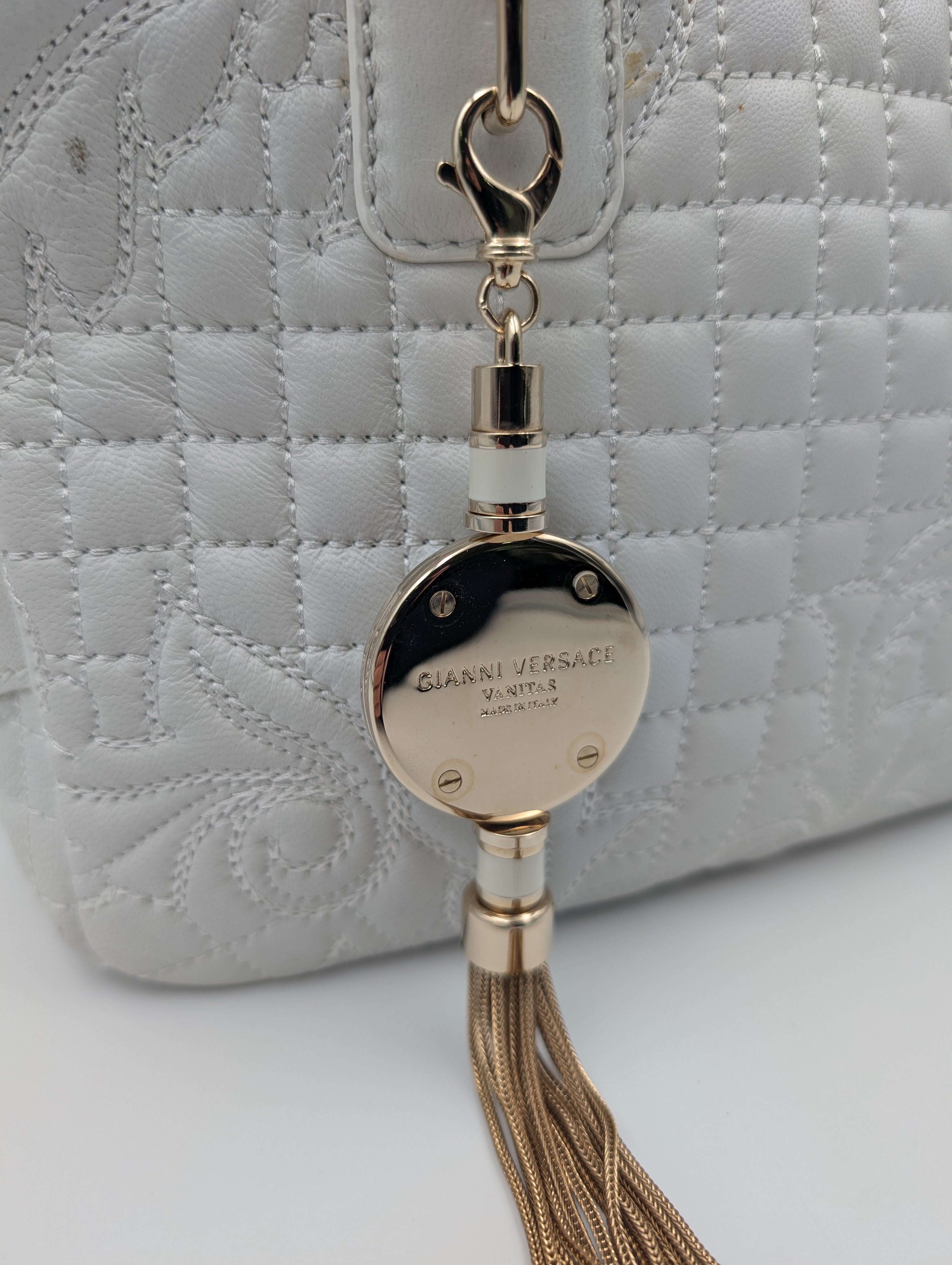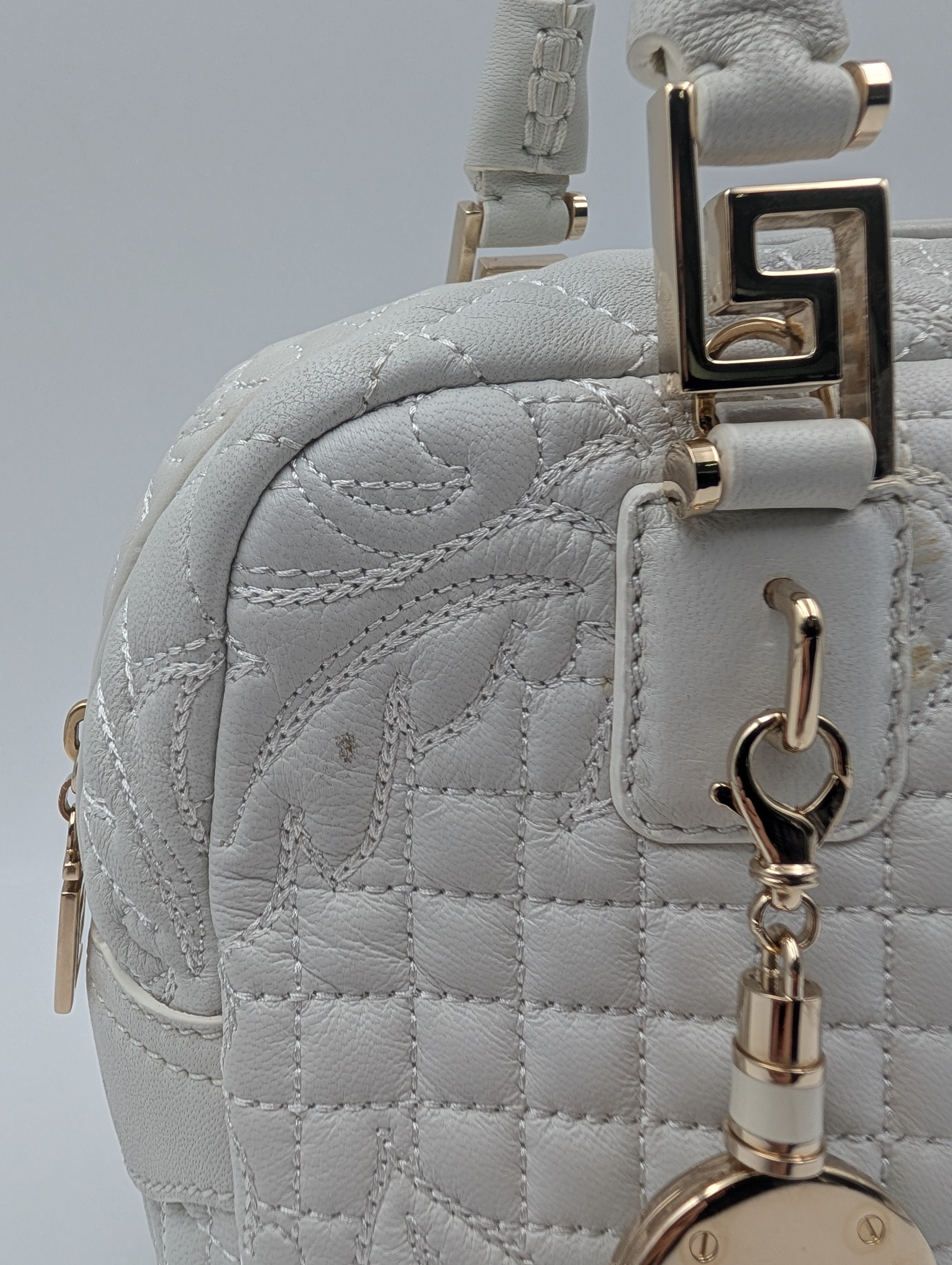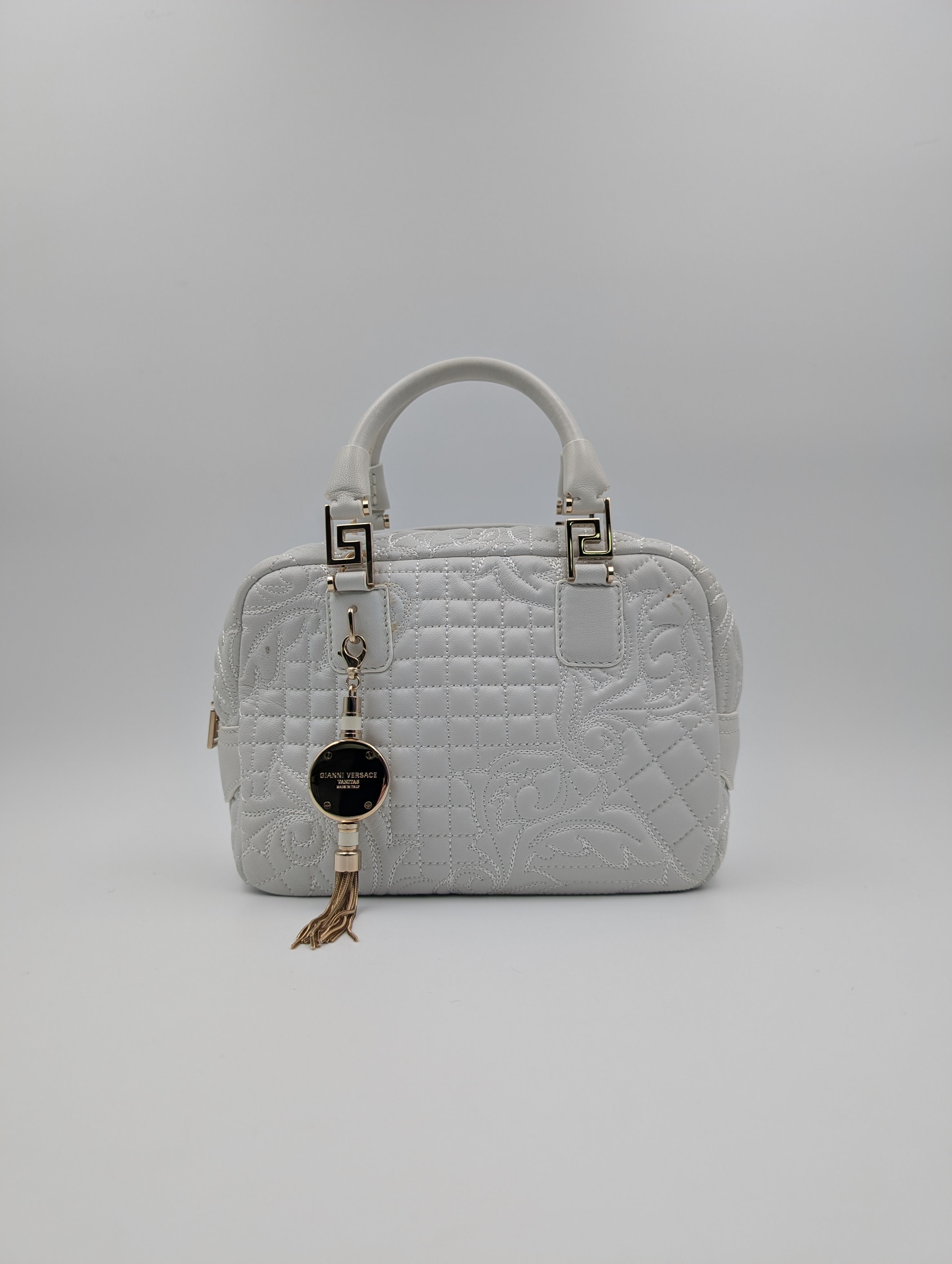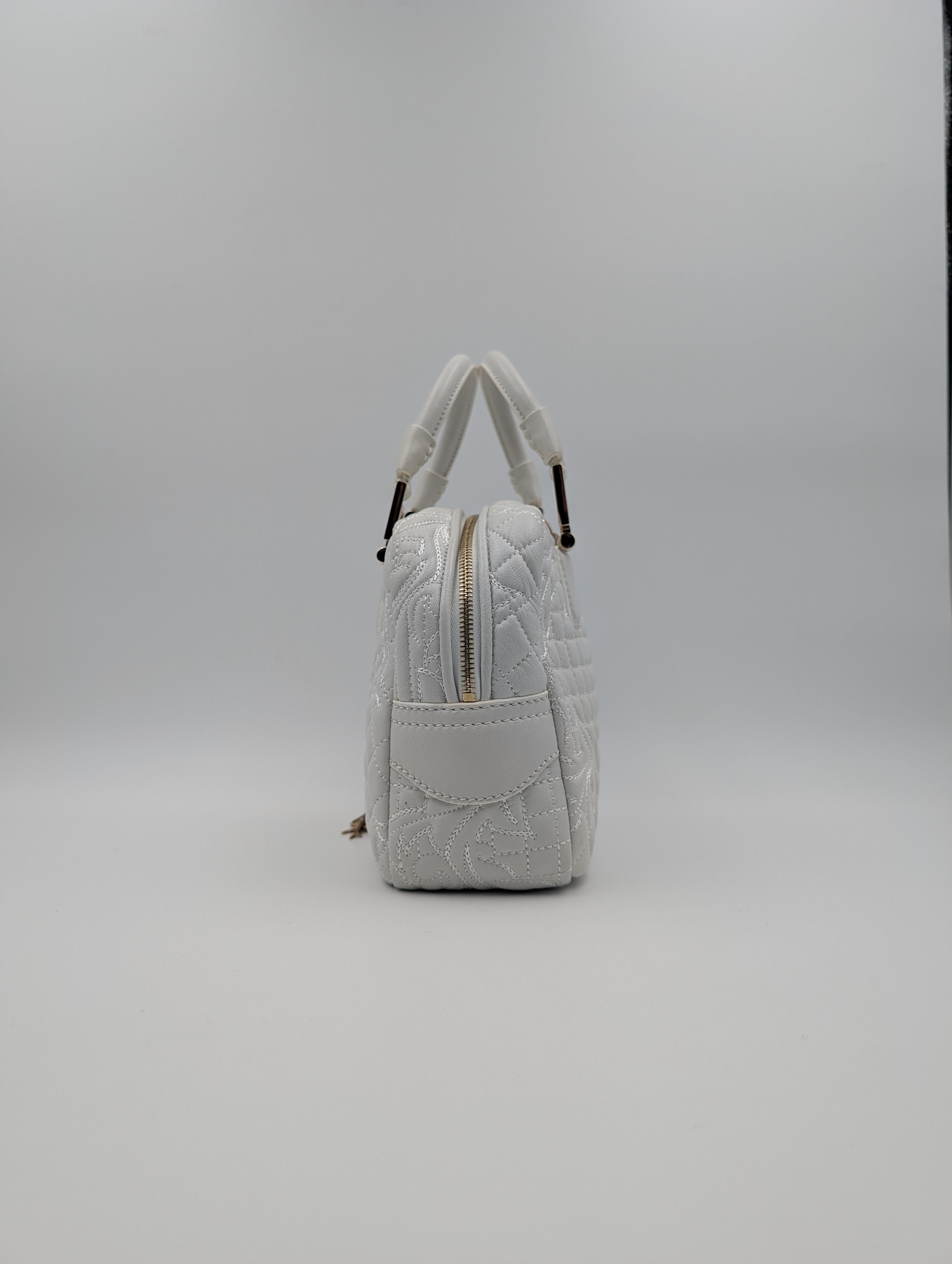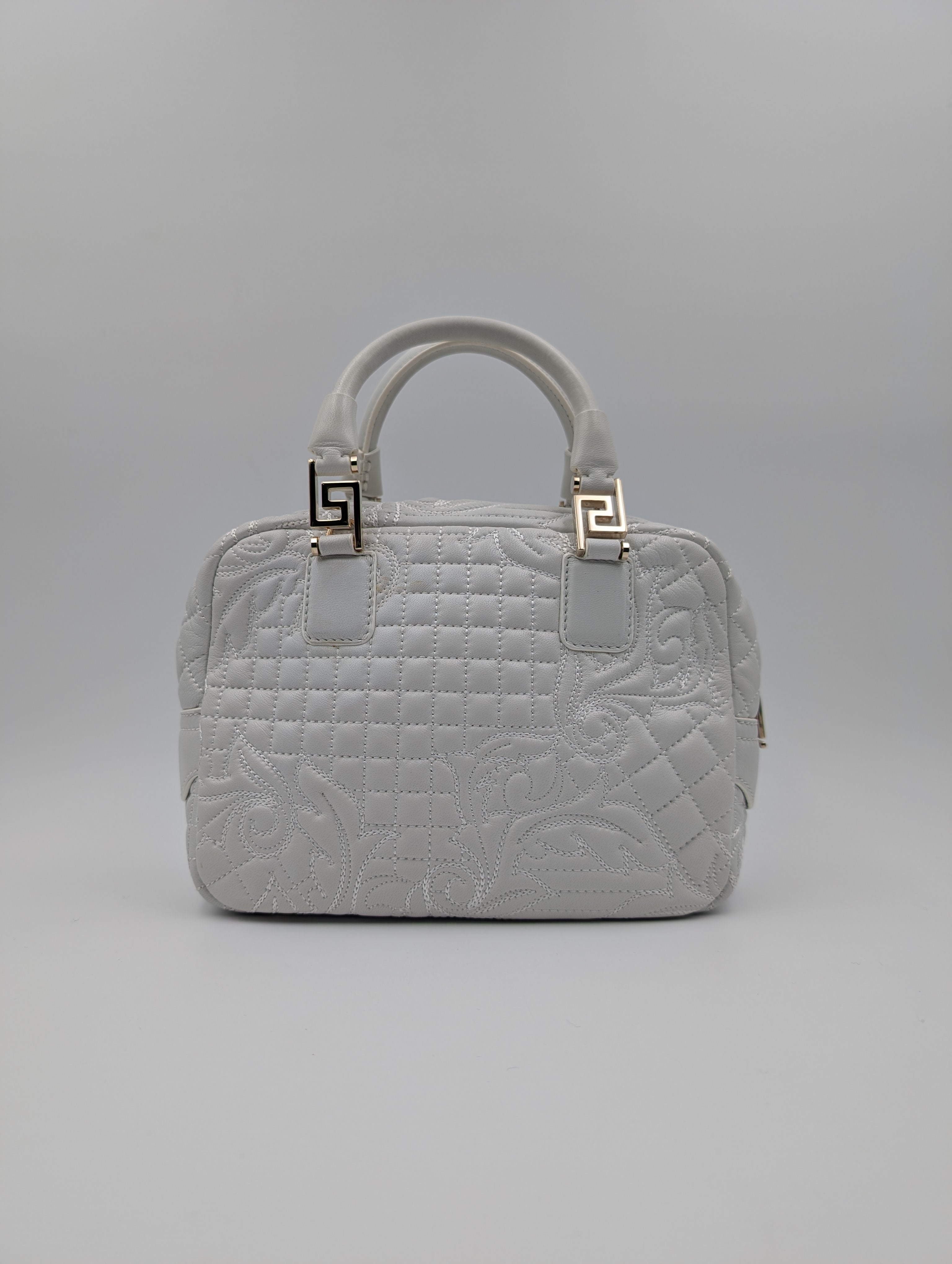 Versace White Demetra Vanitas Top Handle Bag In Quilted Leather