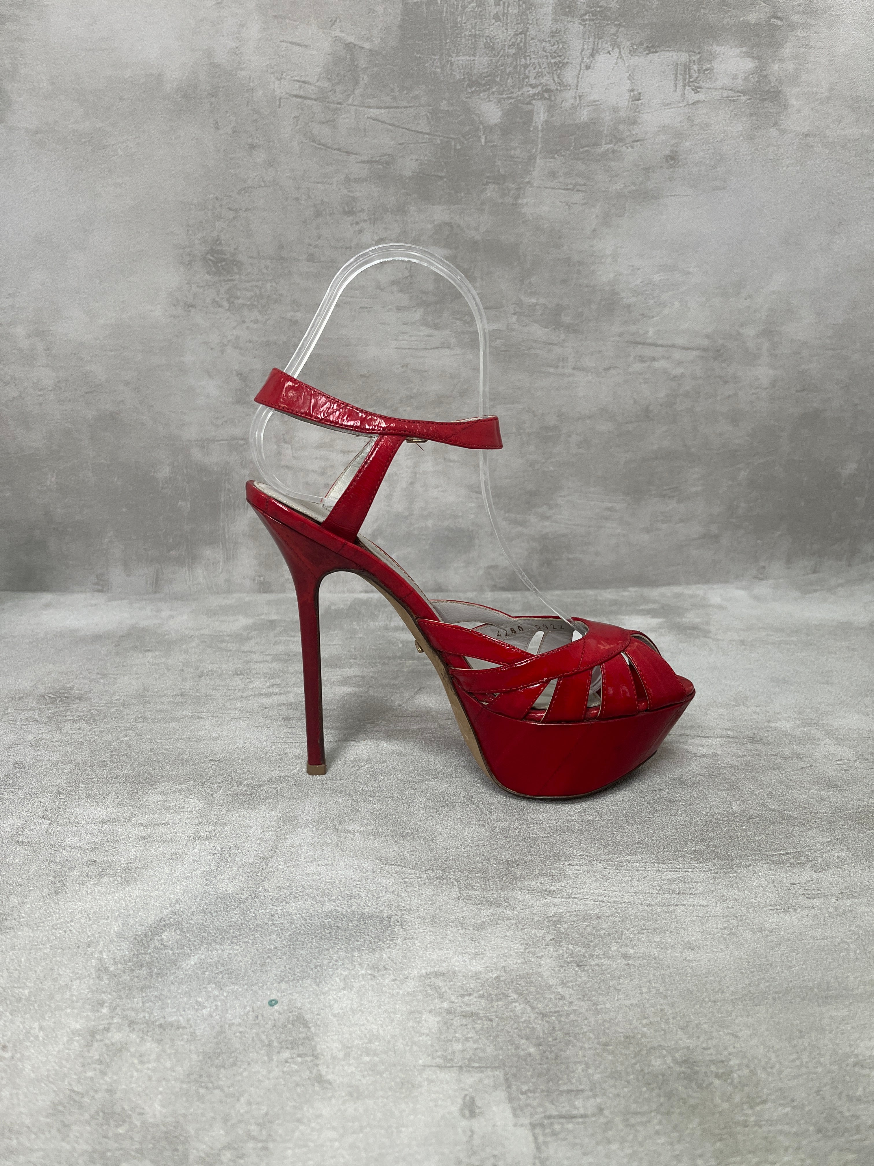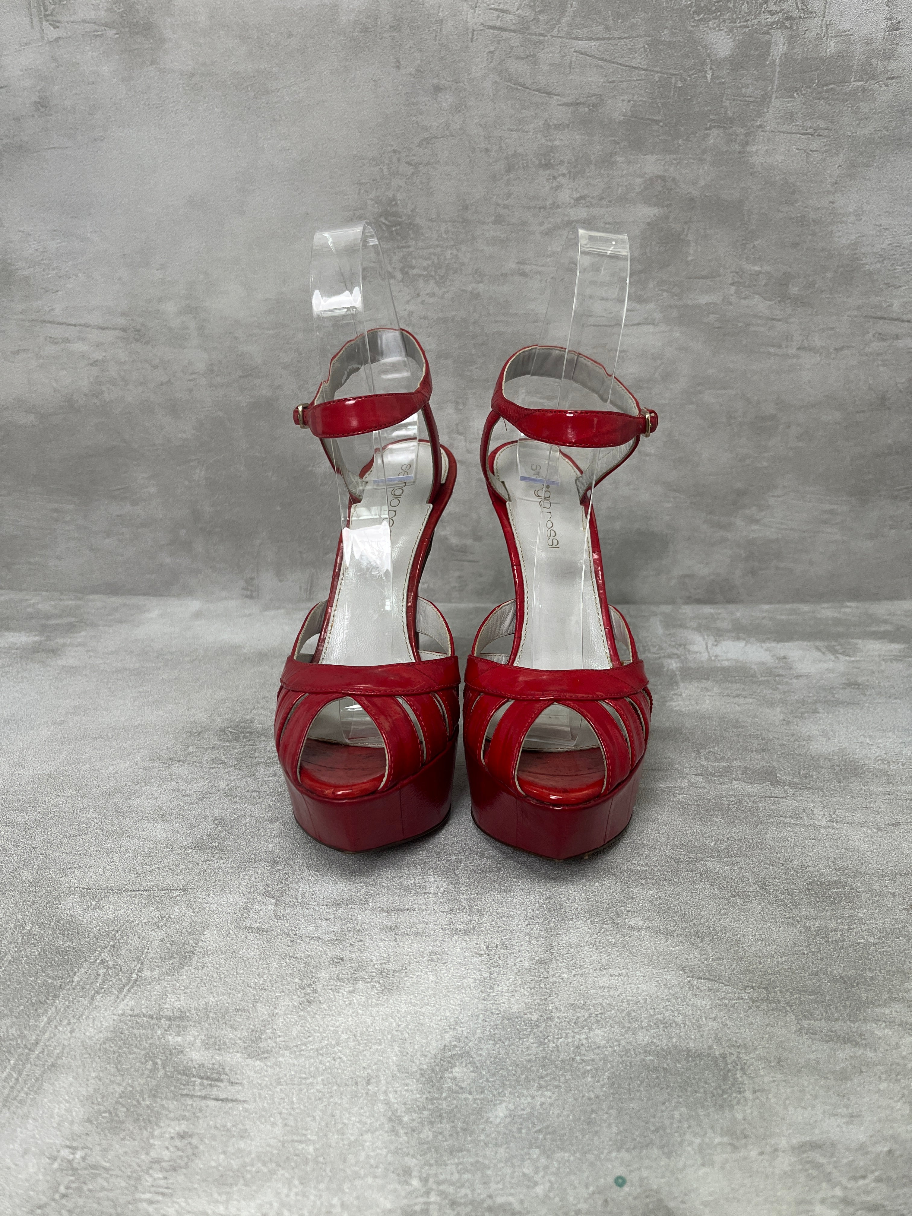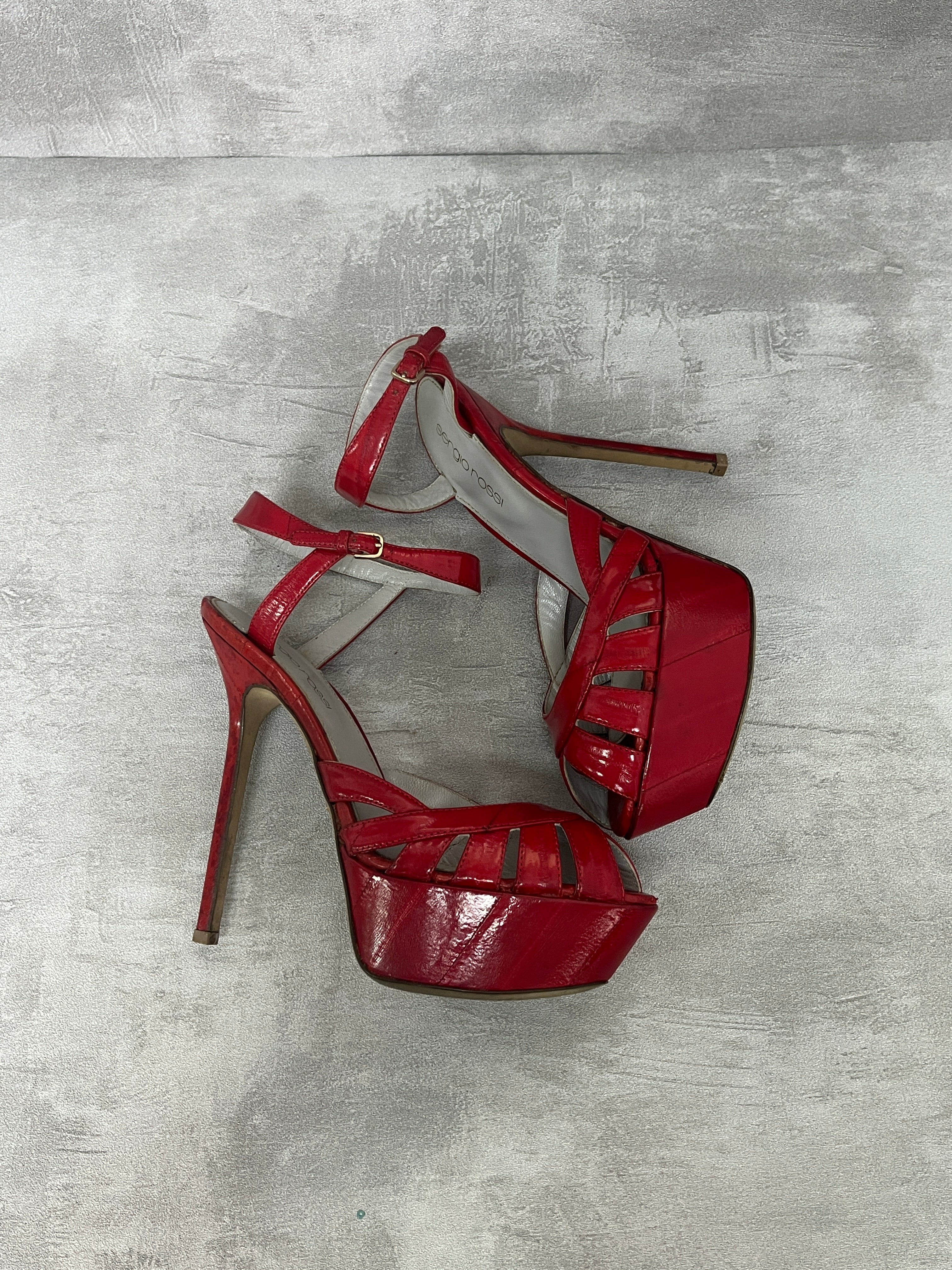 Sergio Rossi Wine Red Peep-Toes Platform Heels