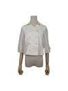 Beige Double Breasted Cropped Blazer With 3/4 Sleeves