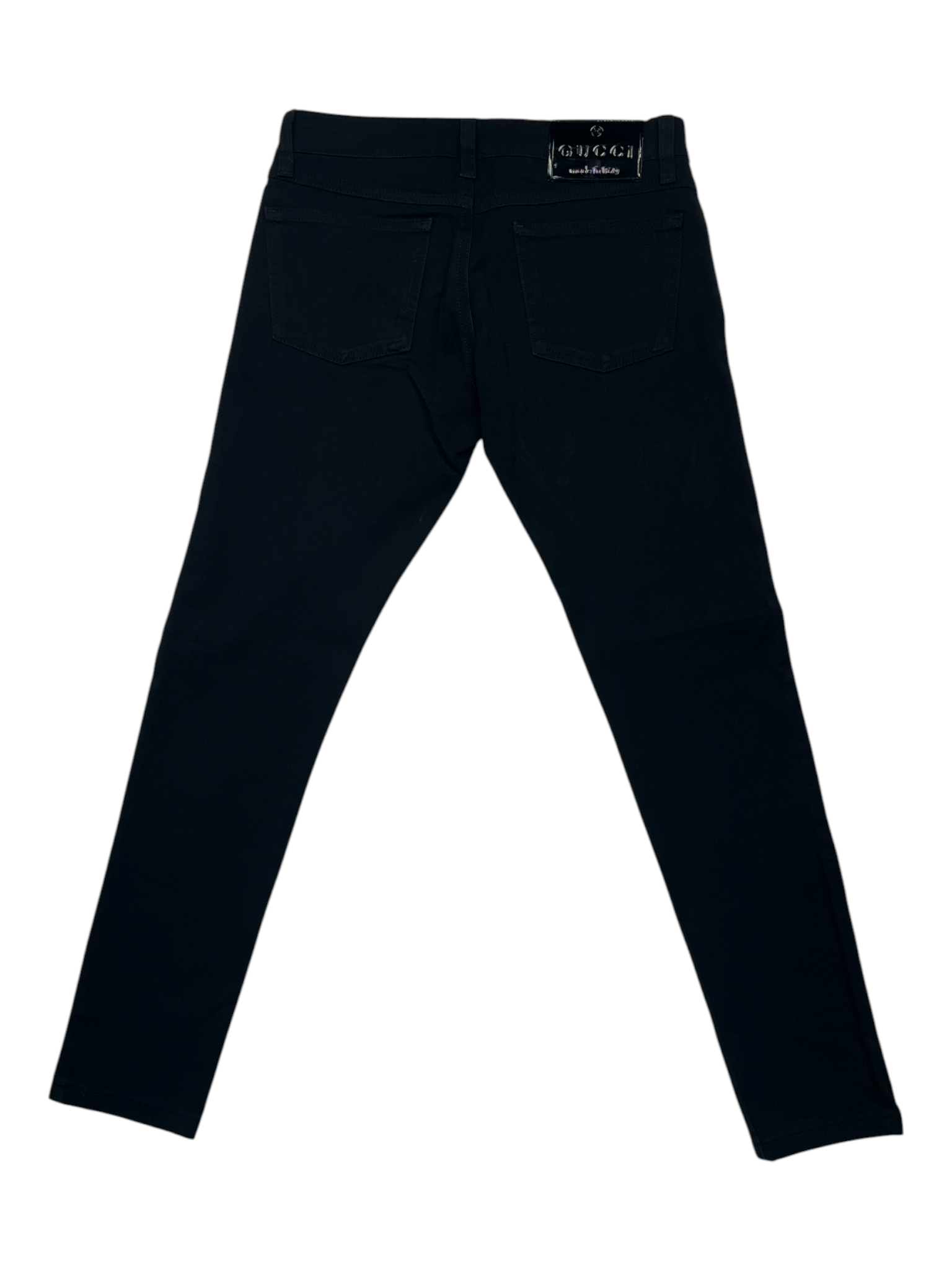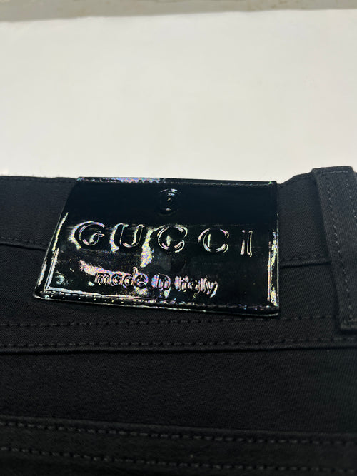 Gucci Black Cotton Slim Fit Pants With Glossy Brand Tab