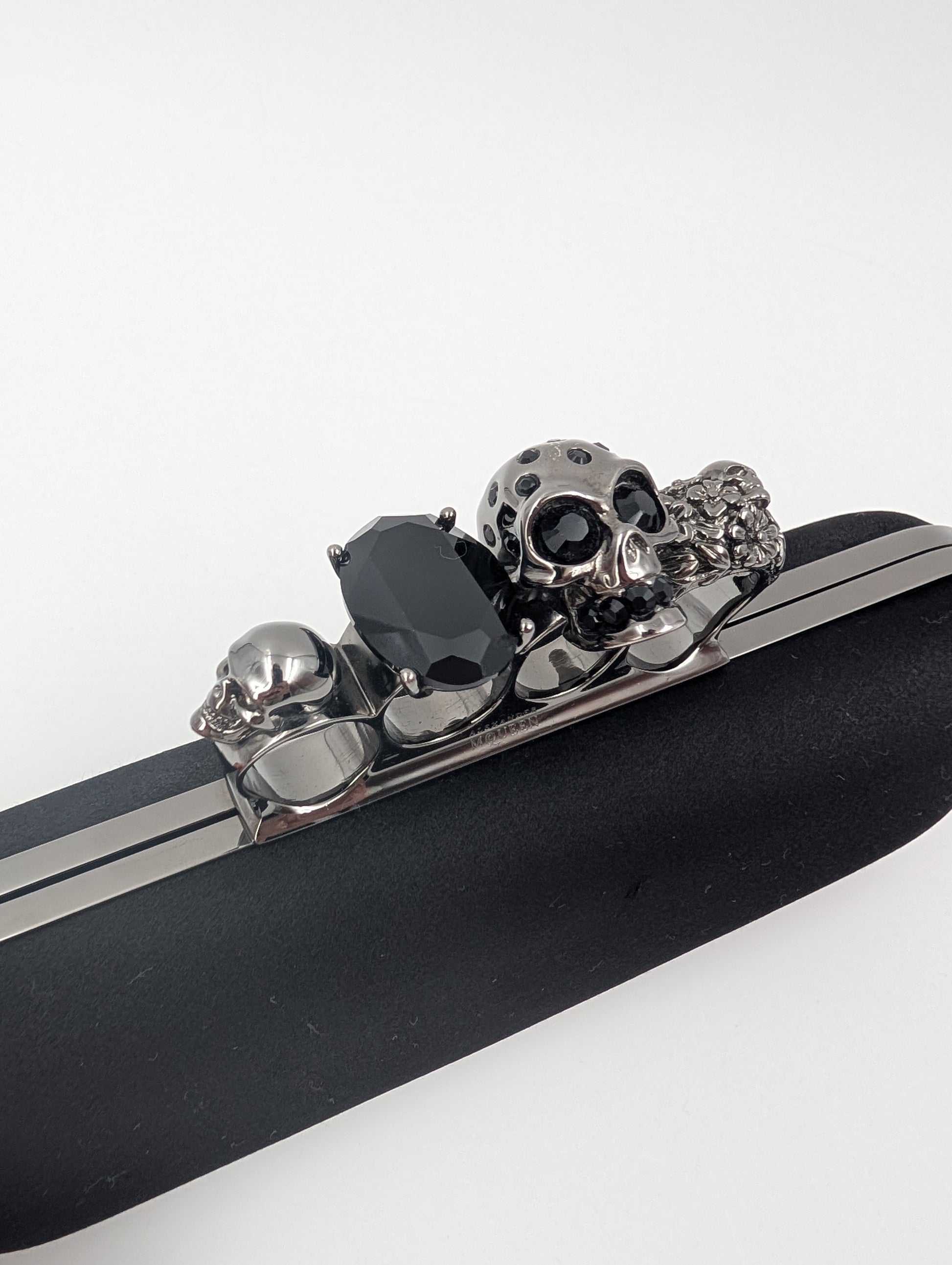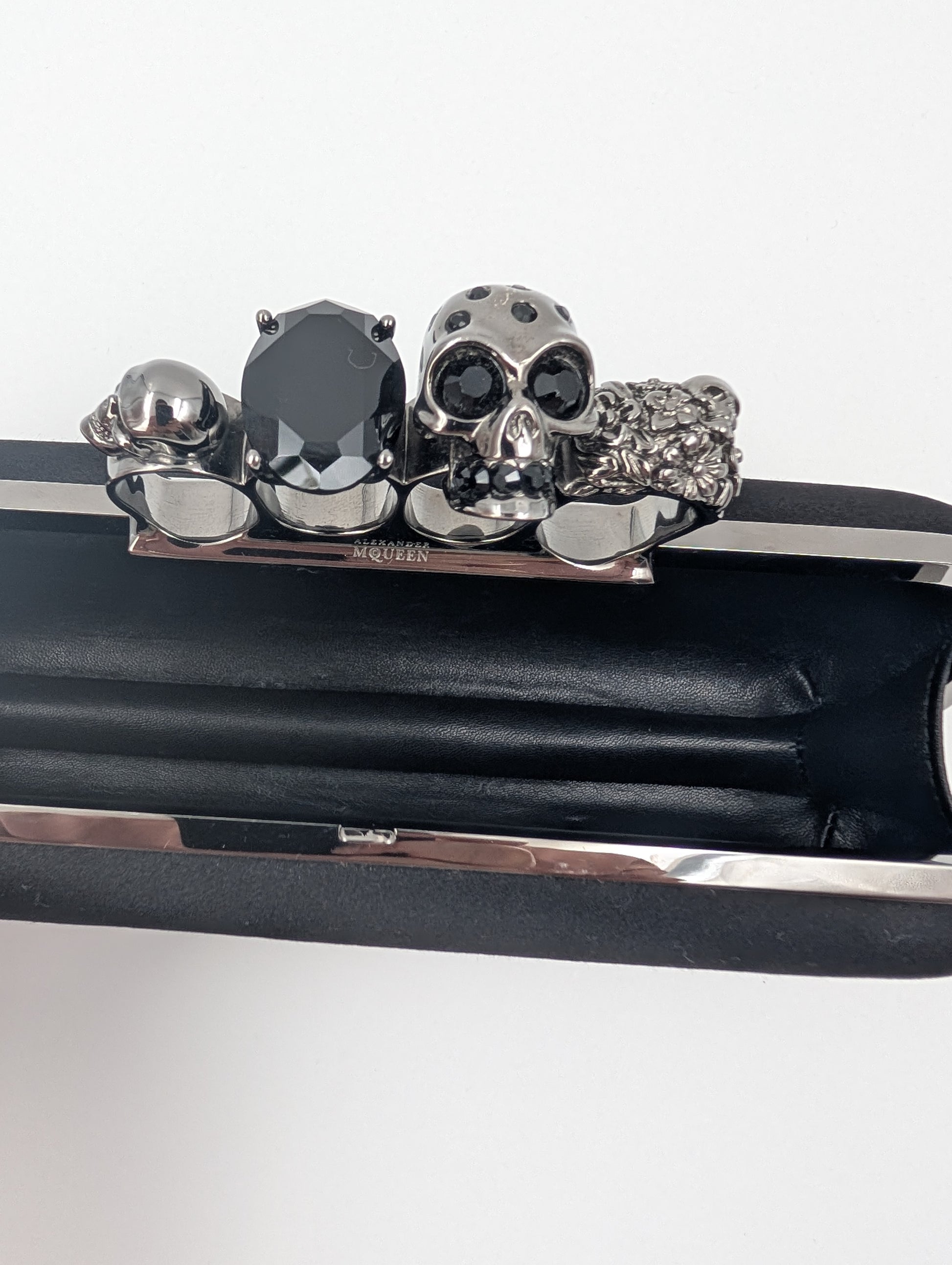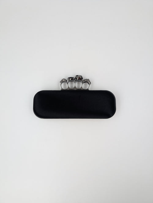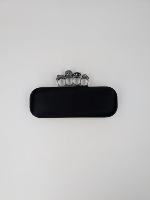 Alexander McQueen Black Skull Knuckle Silk Clutch