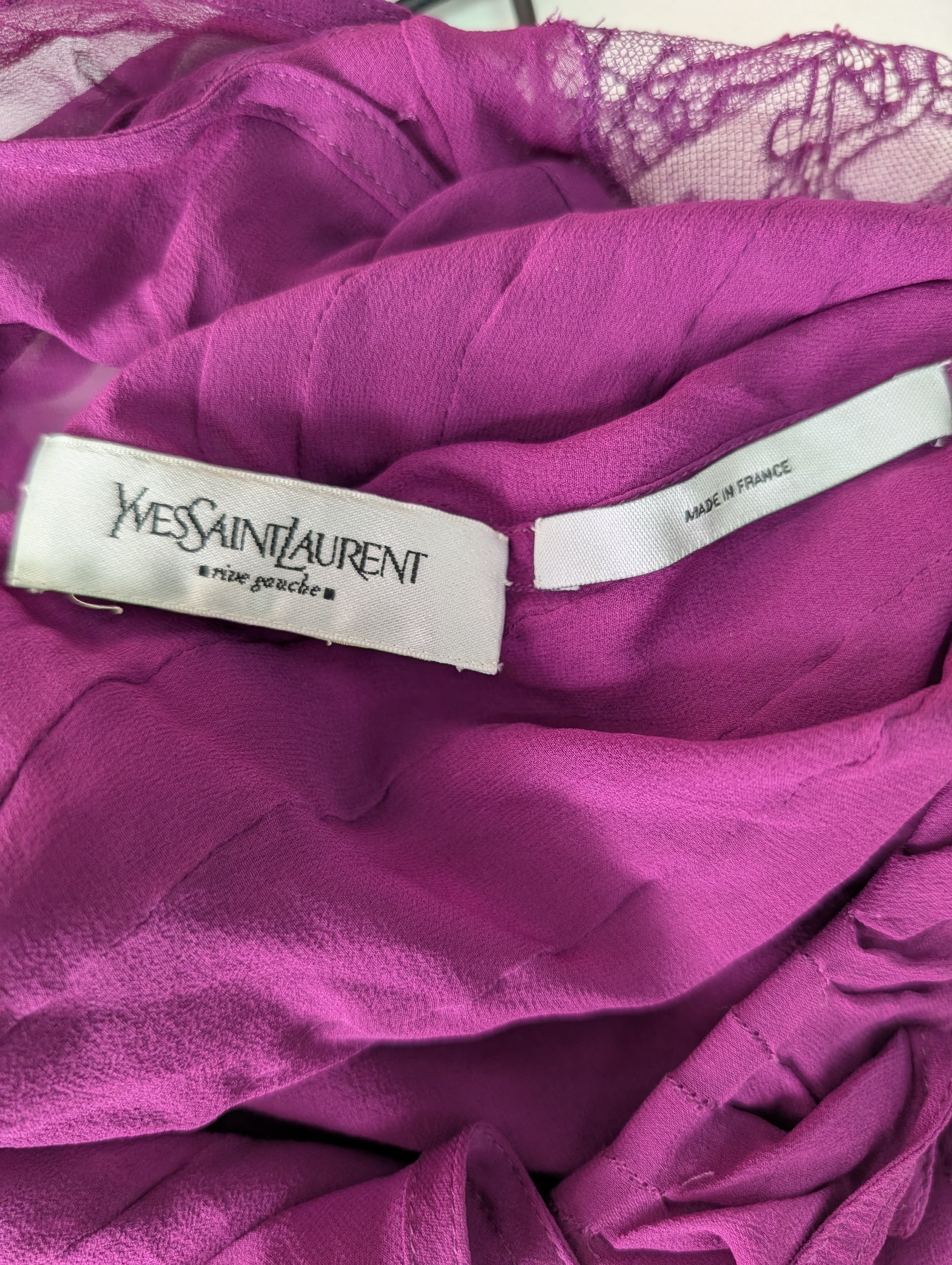 Yves Saint Laurent Mauve Scoop Neck Top With Ruffles And Lace Details