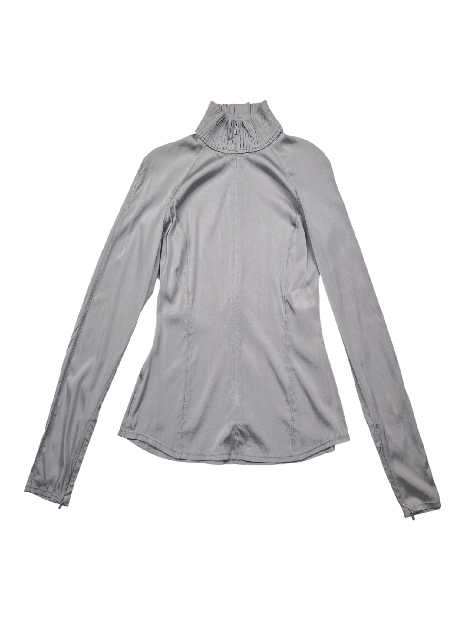 Silver Grey Long Sleeve With Ruffle Neck Top