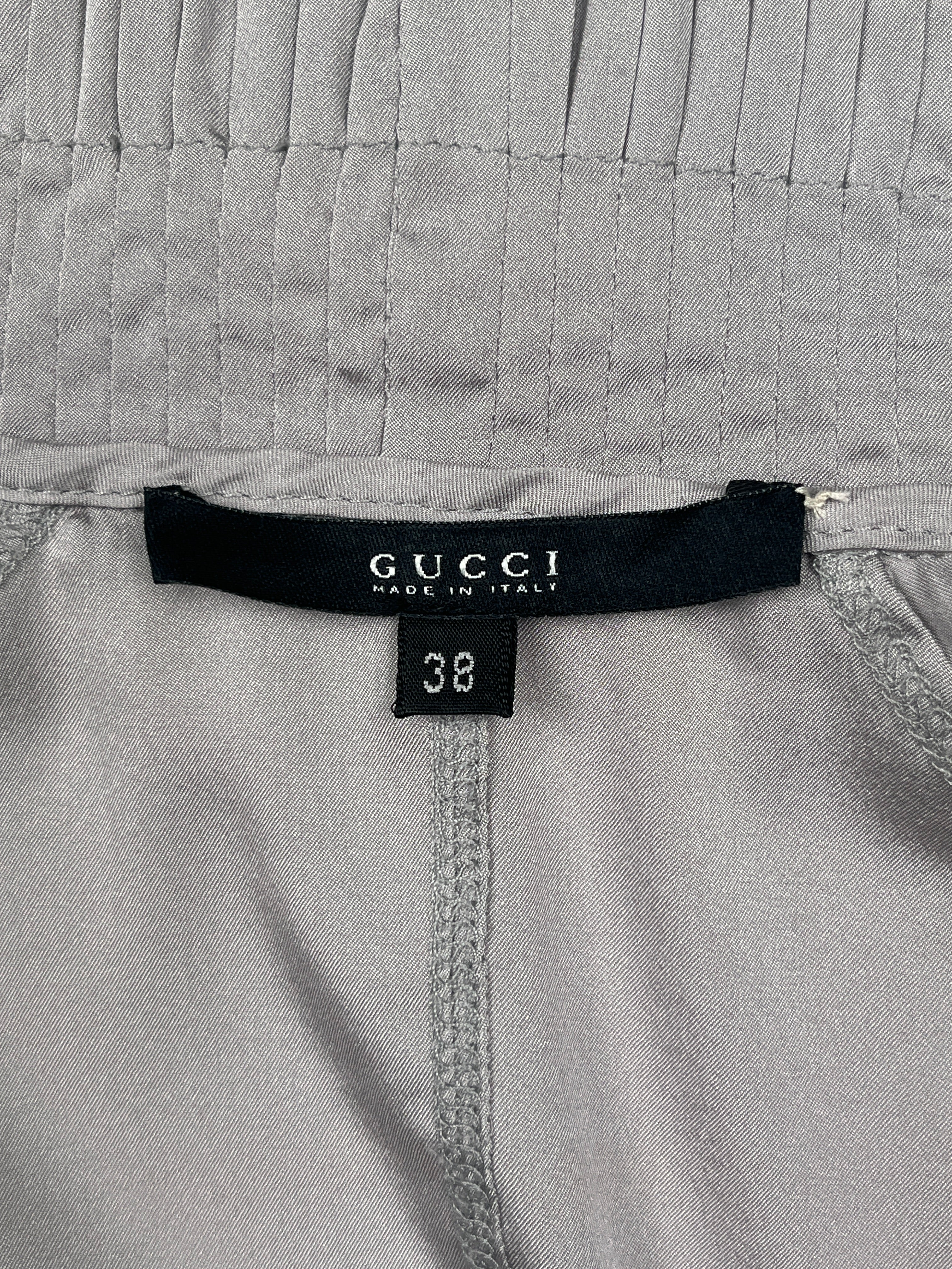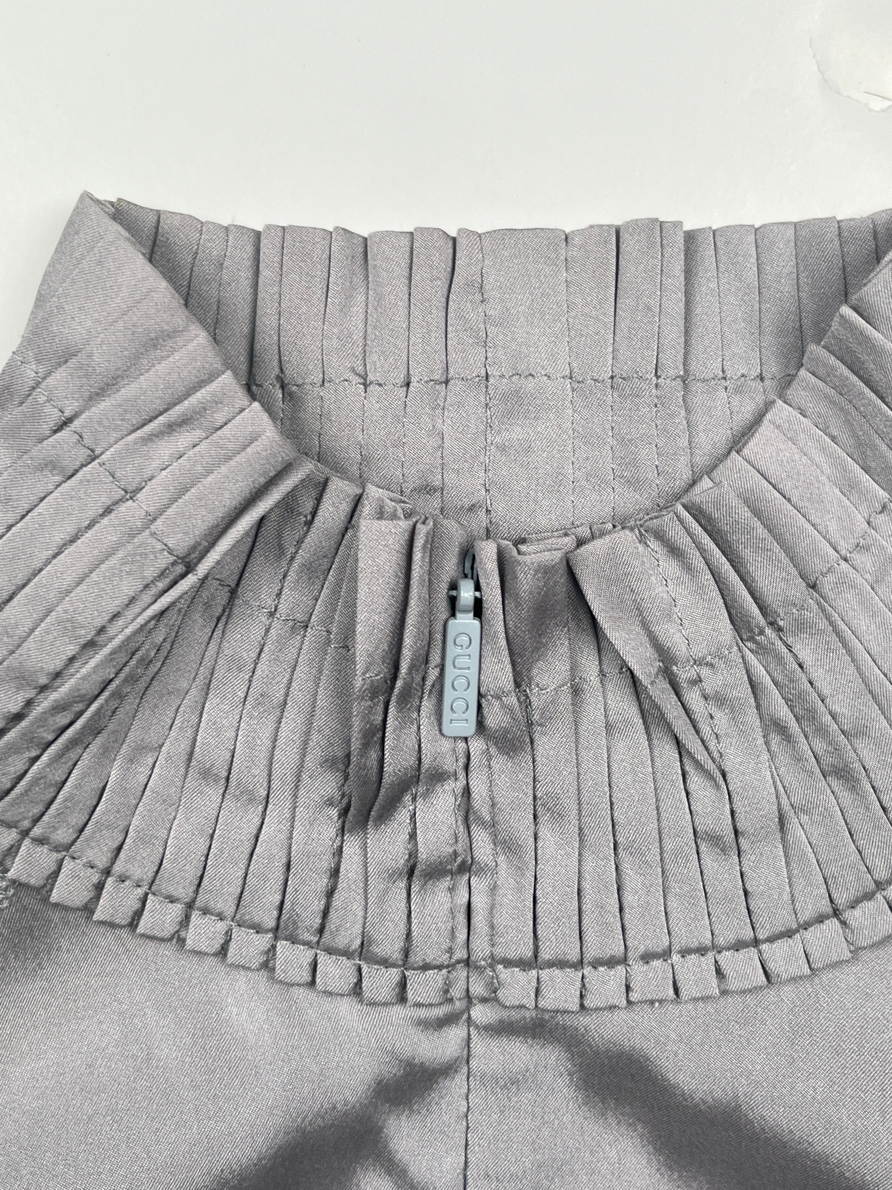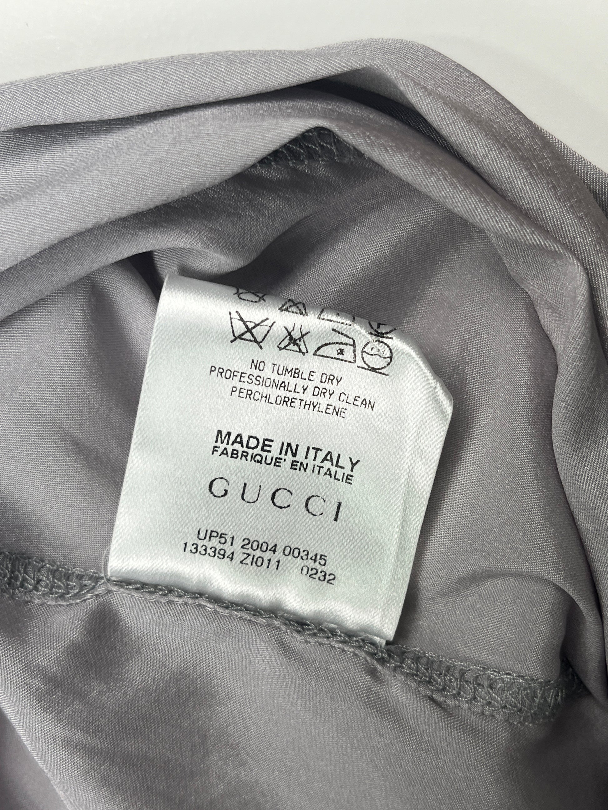 Gucci Silver Grey Long Sleeve With Ruffle Neck Top