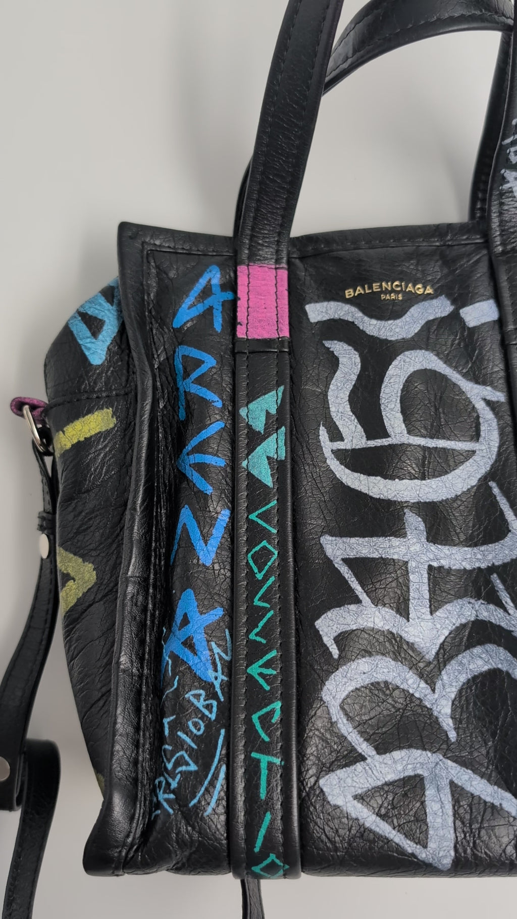 Balenciaga Black Graffiti Bazar XS Shopper Tote
