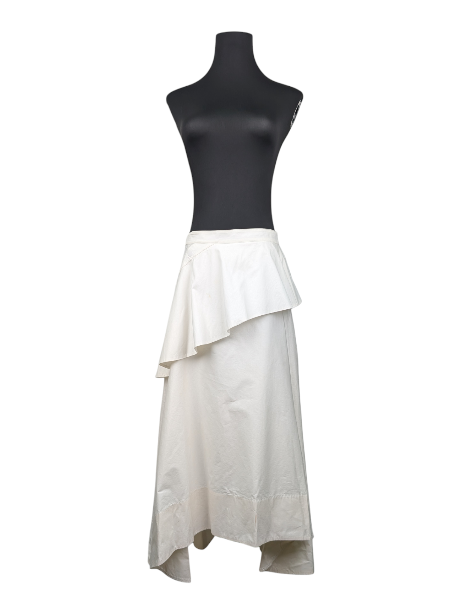 White Midi Skirt With Ruffles Wrap And Uneven End