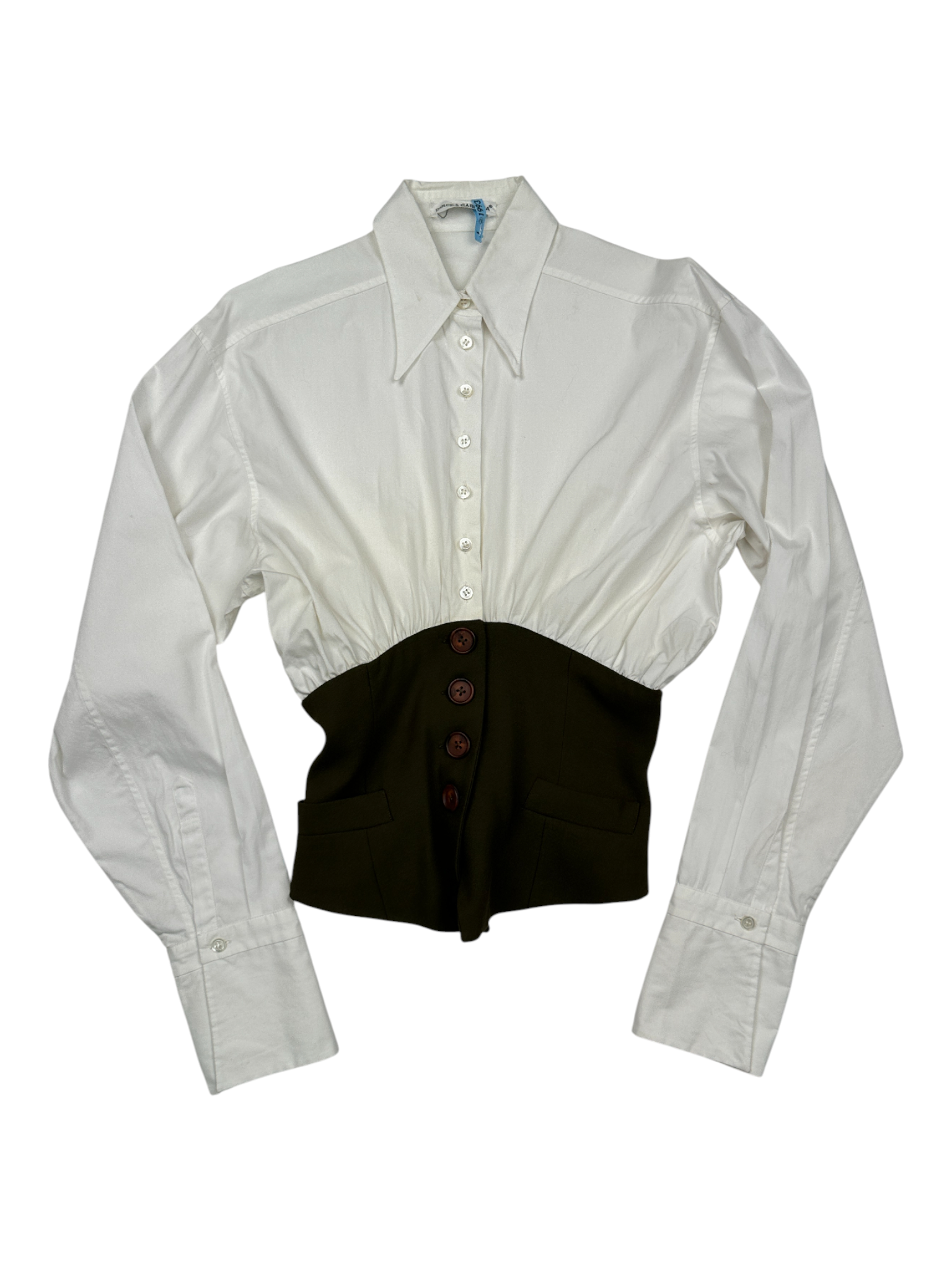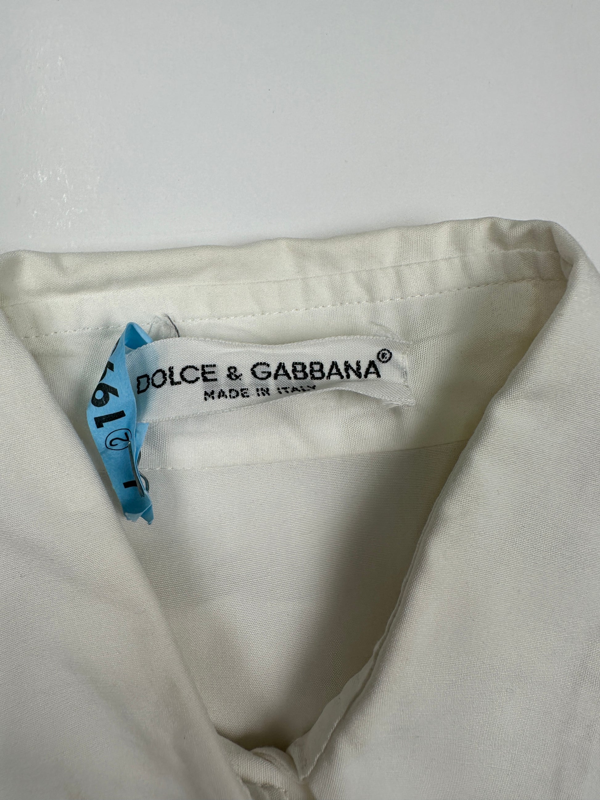 Dolce & Gabbana White Shirt With Olive Fitted Waist Vest